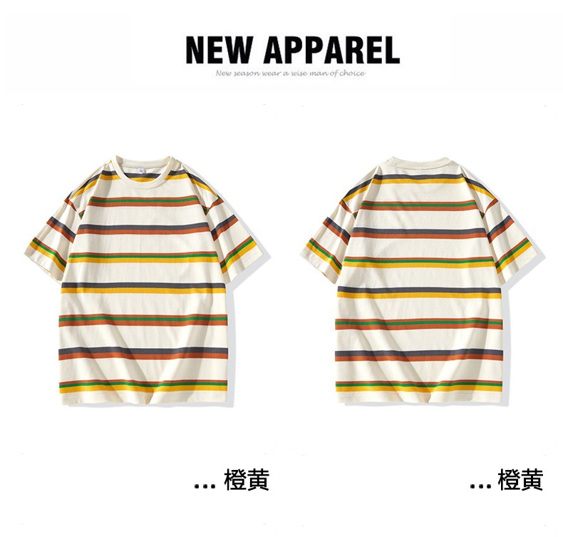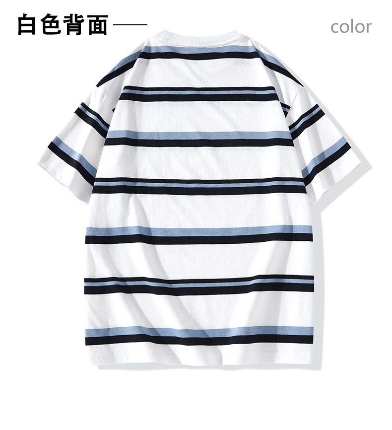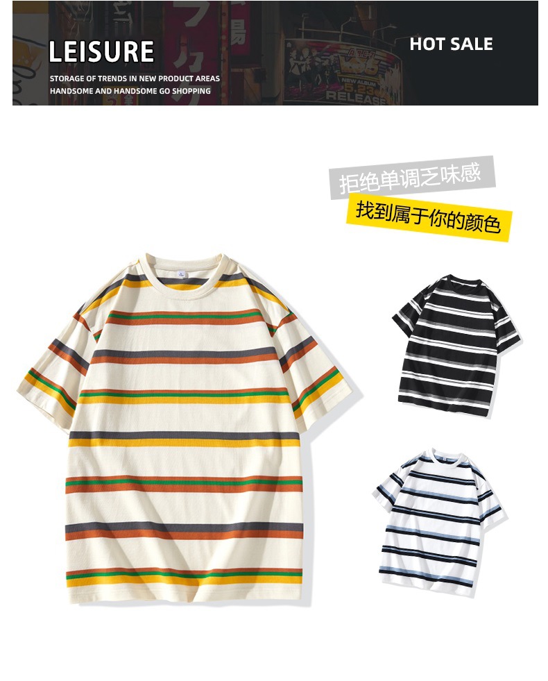 日系休闲条纹短袖t恤男夏季复古宽松帅气潮流bf百搭圆领半袖体恤
