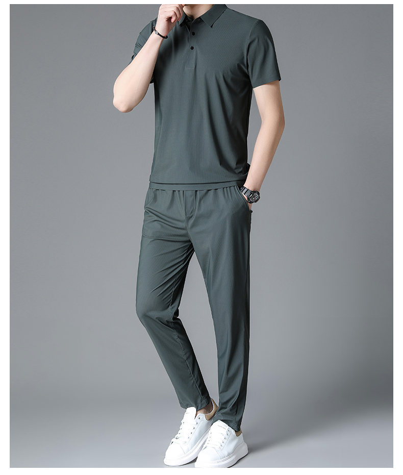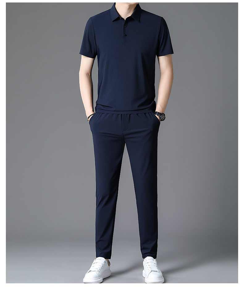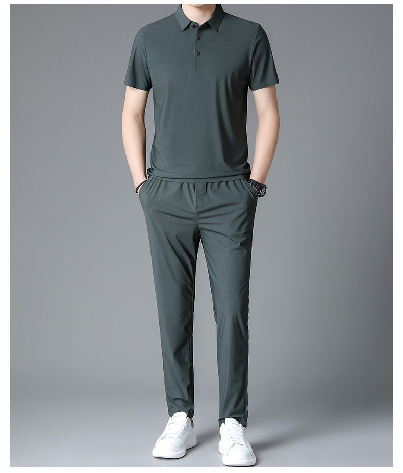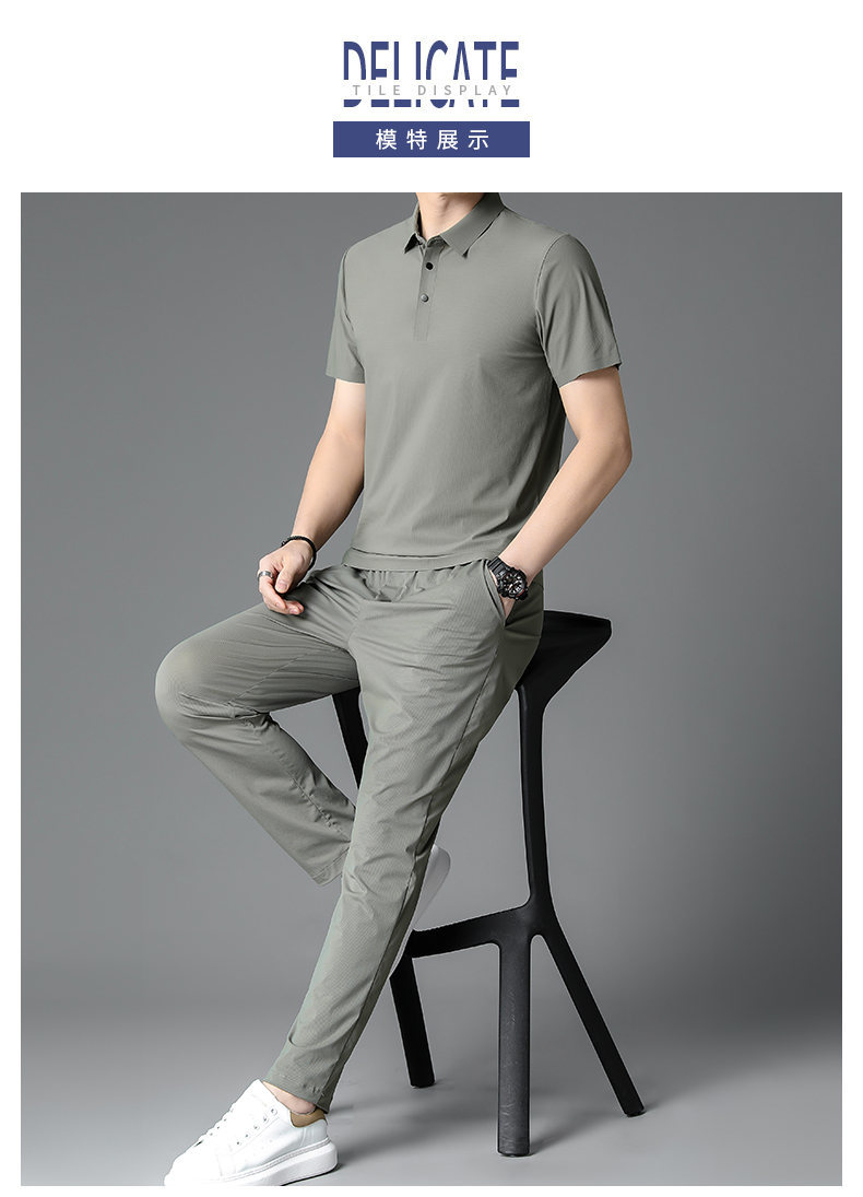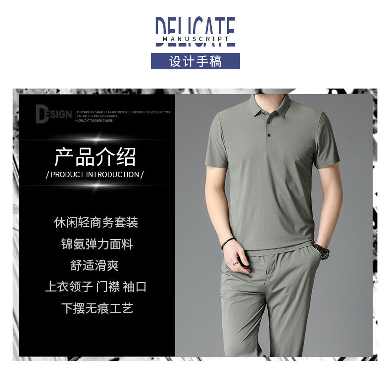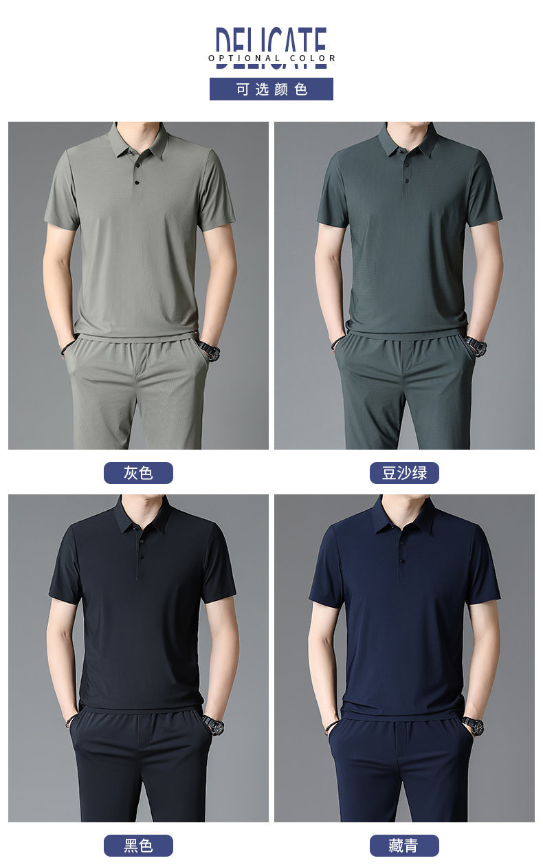 2024新款冰丝T恤休闲运动套装男夏季宽松透气中年爸爸男士两件套