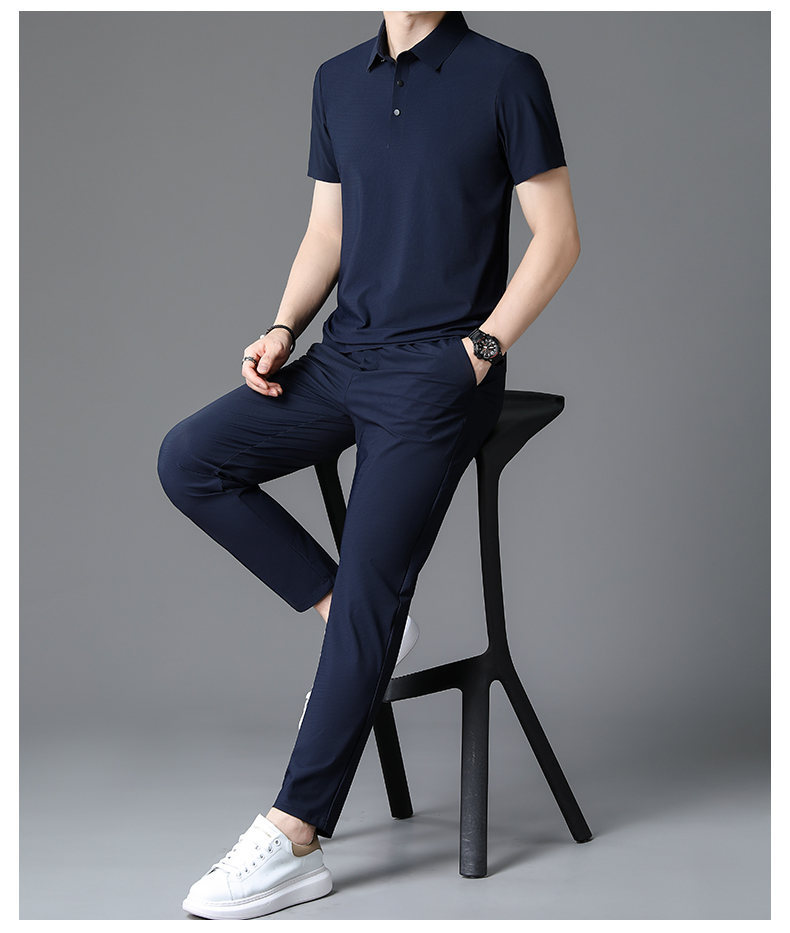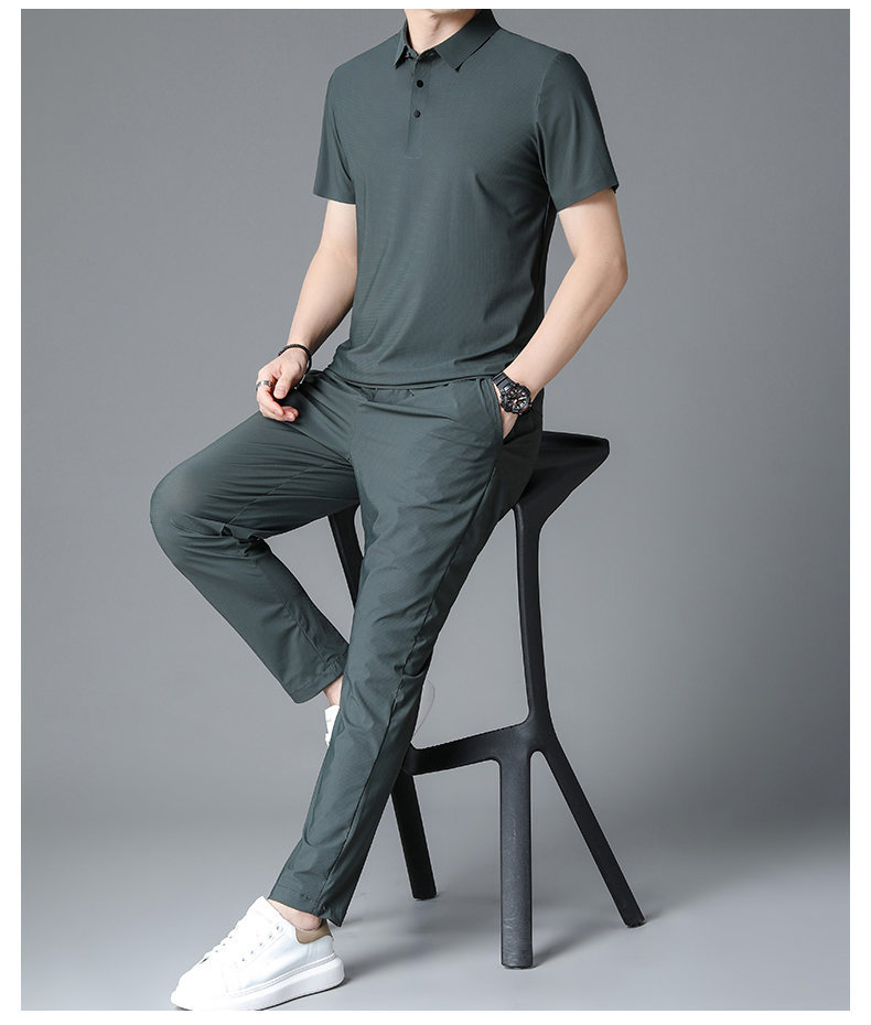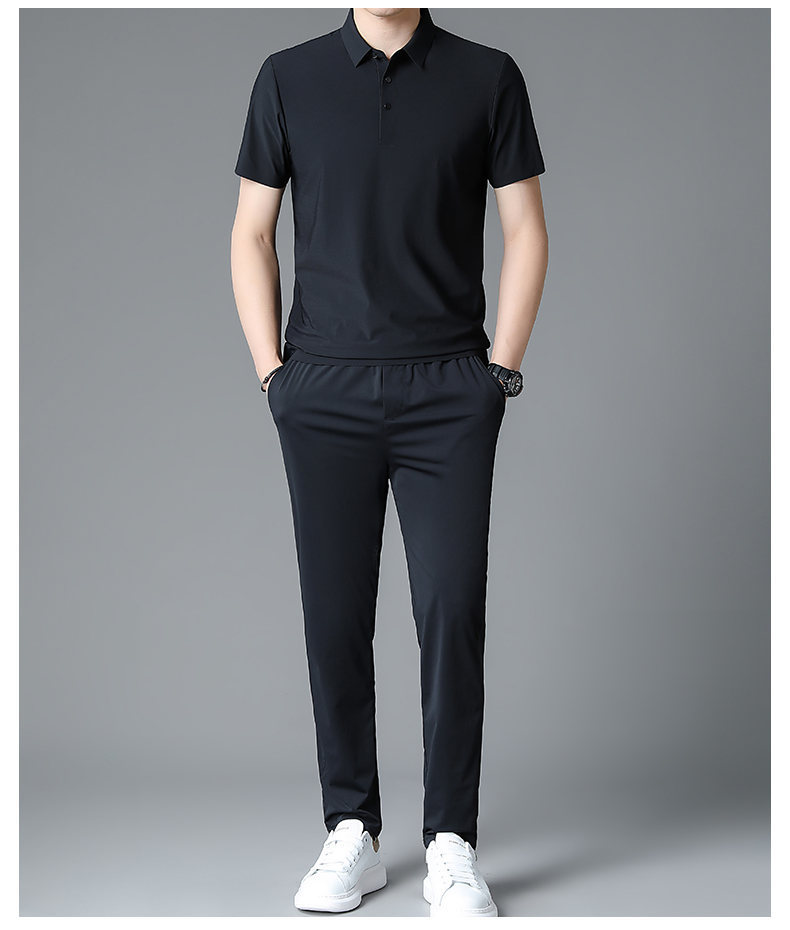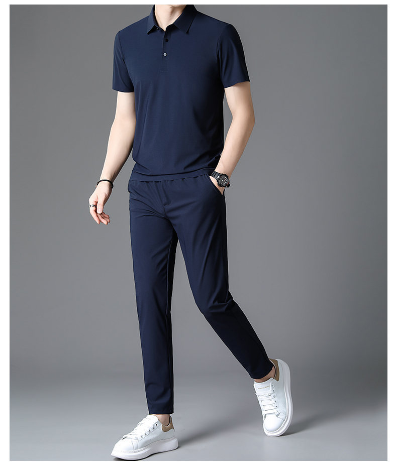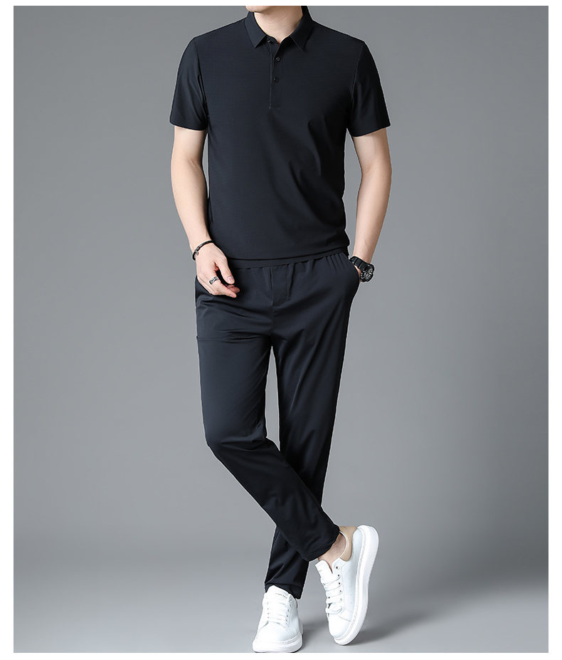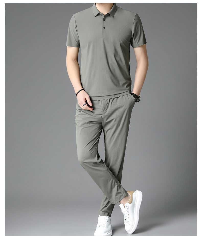 2024新款冰丝T恤休闲运动套装男夏季宽松透气中年爸爸男士两件套