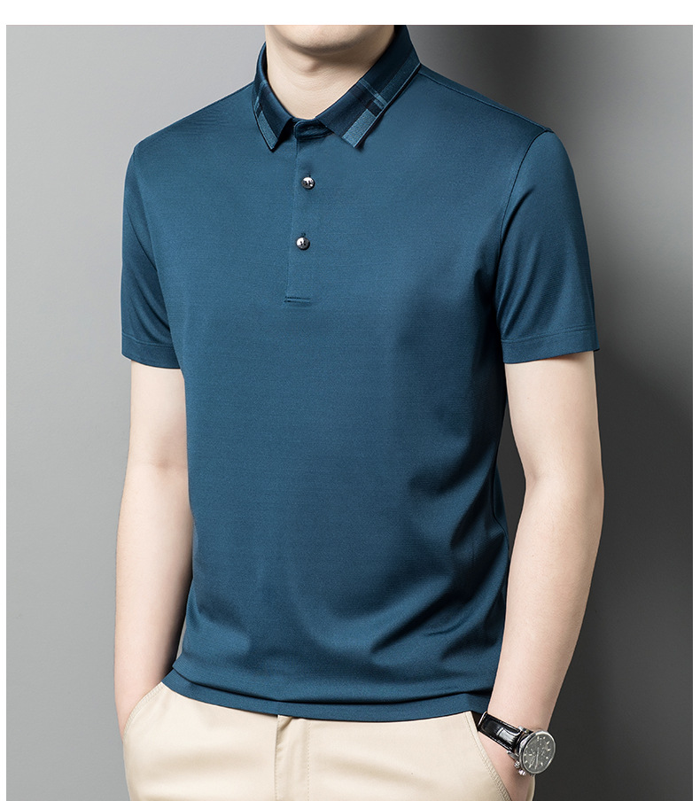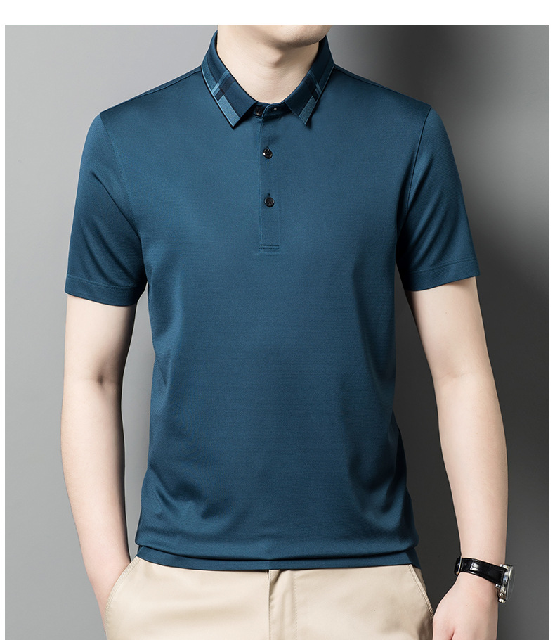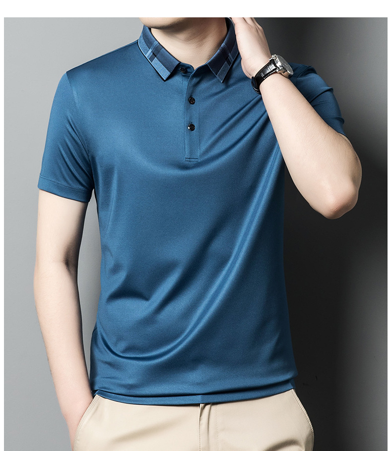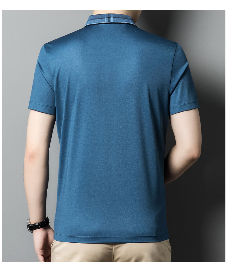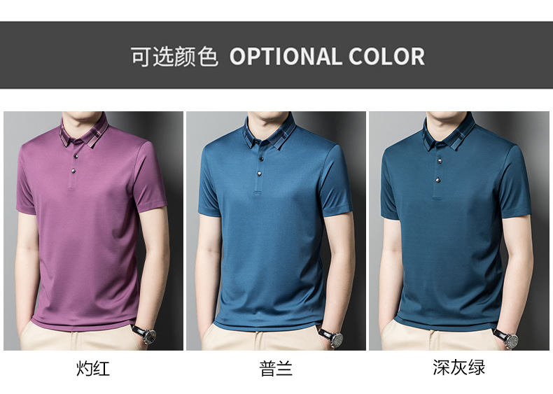 恒源夏季新款短袖t恤纯色男士宽松桑蚕丝翻领休闲冰丝商务中年装