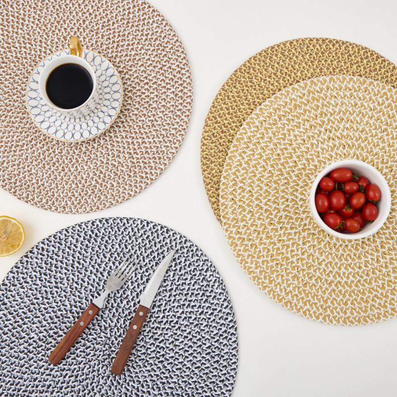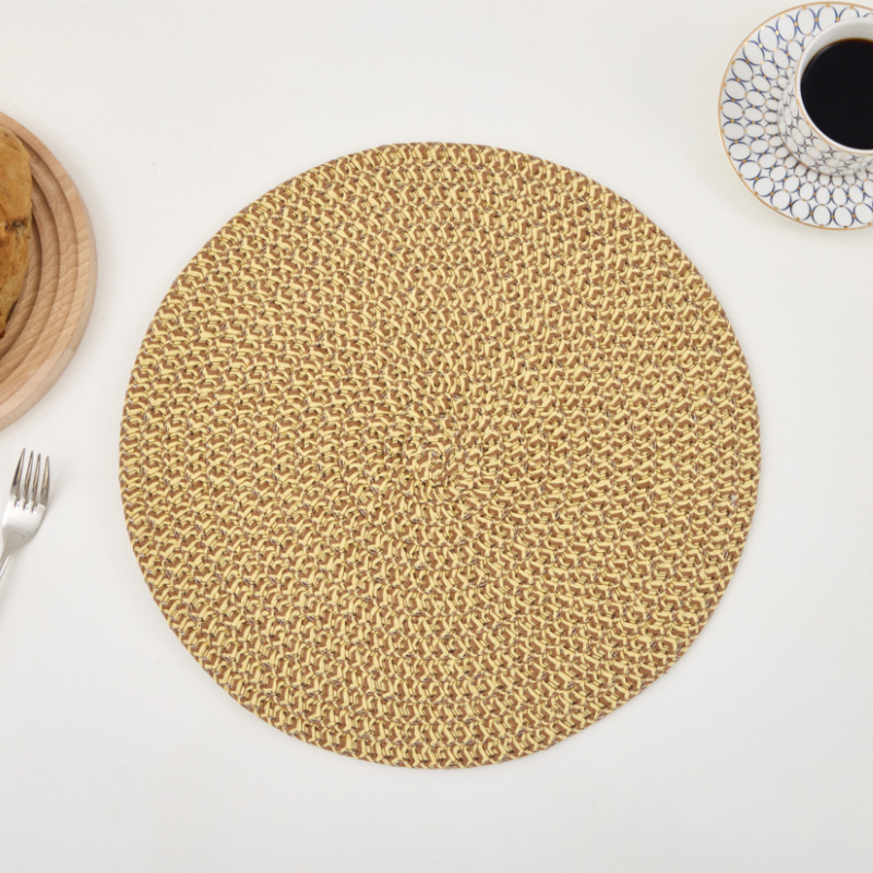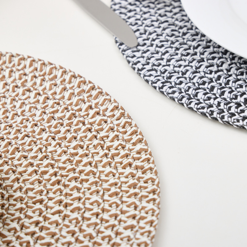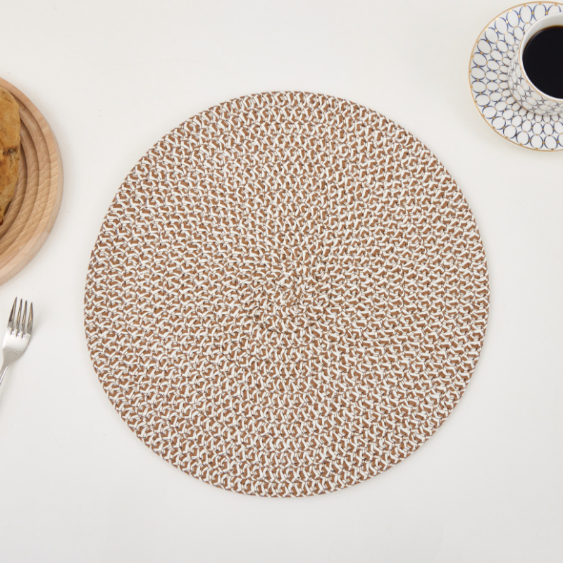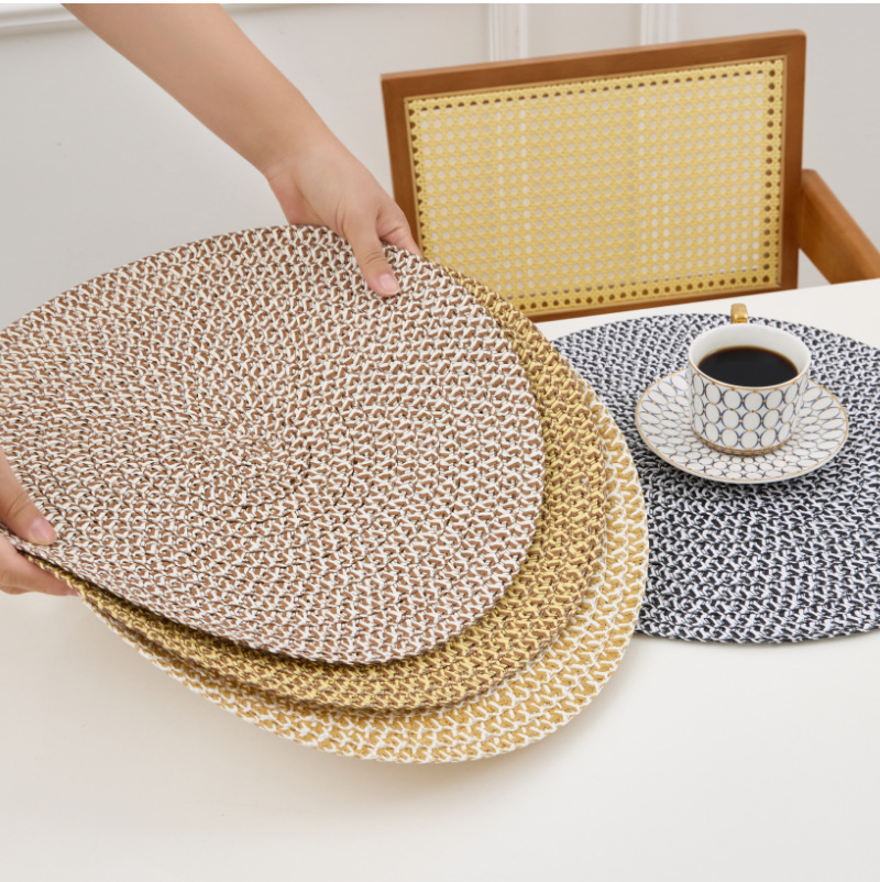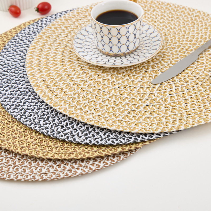 纸质双色拼色餐垫隔热垫装饰编织盘垫客厅圆形圆形布置桌垫西餐垫