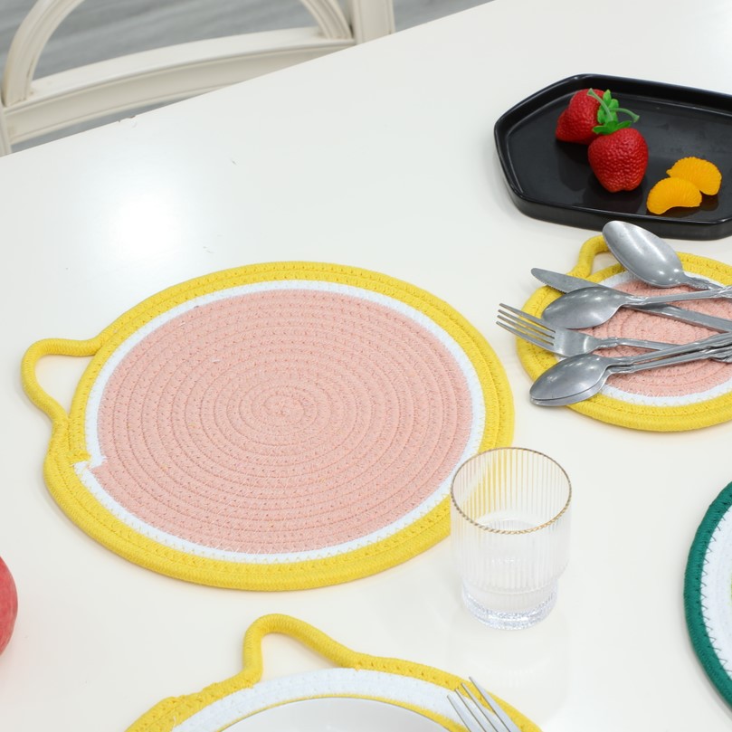 厂家直销棉绳餐垫水果设计加厚防滑防烫隔热棉线餐垫盘垫杯垫桌垫