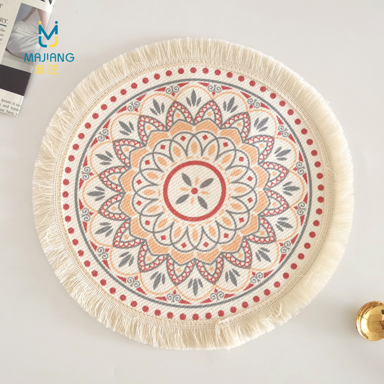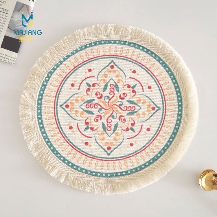 民族风圆形餐垫波西米亚装饰餐垫餐桌隔热垫棉线杯垫布艺编织餐垫