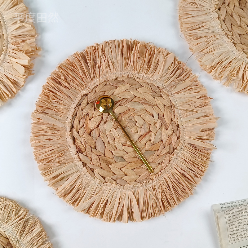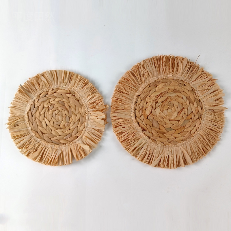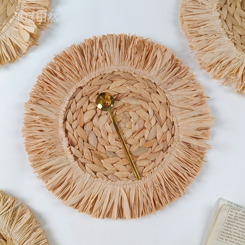 新款流苏边水葫芦草餐垫草编编织加厚餐桌隔热垫创意家居餐具杯垫
