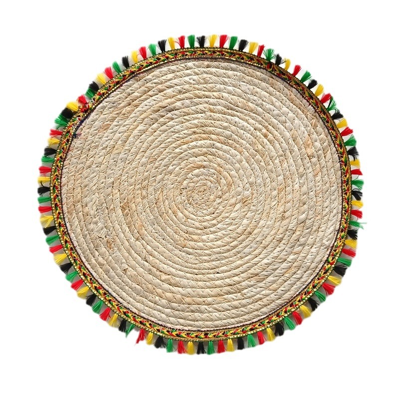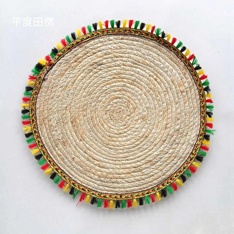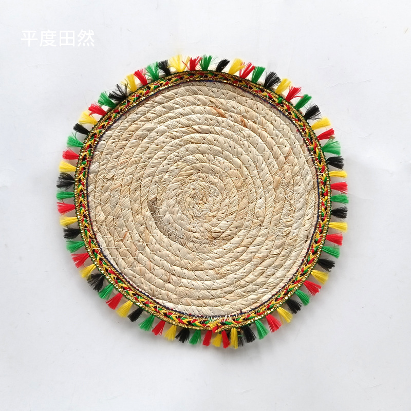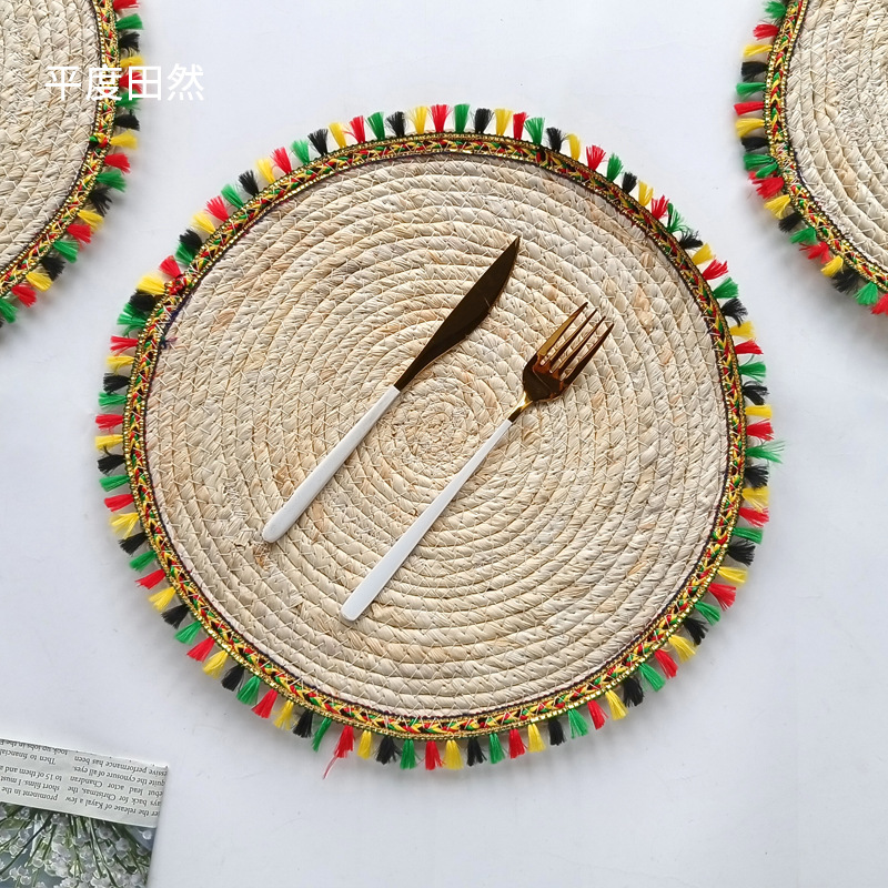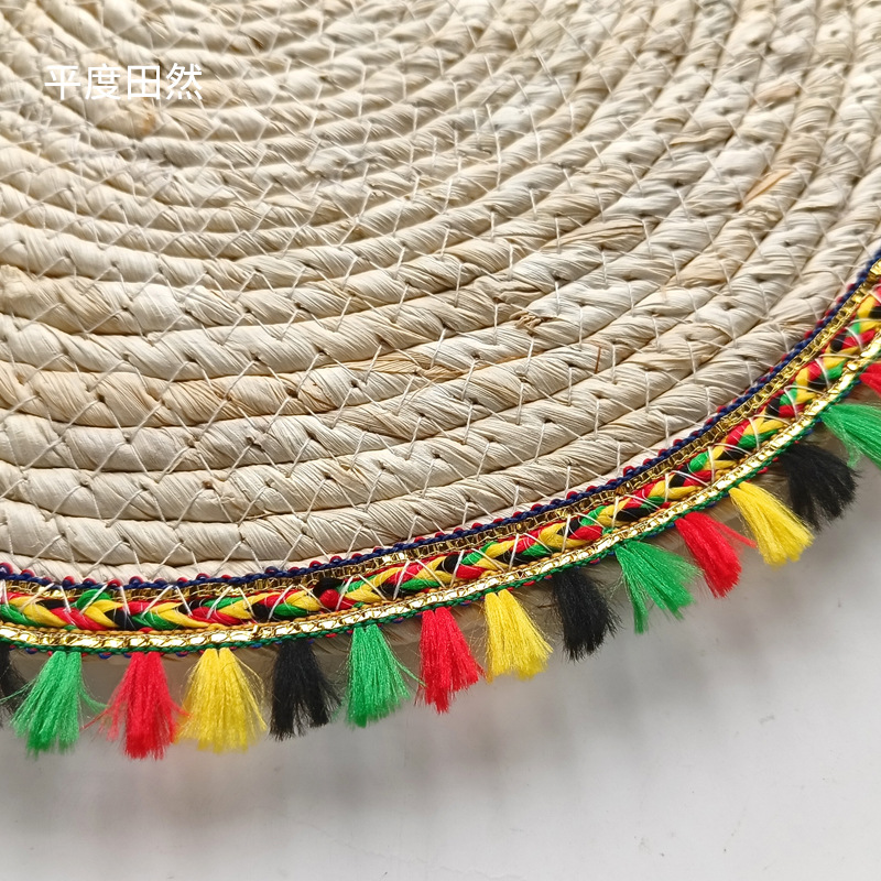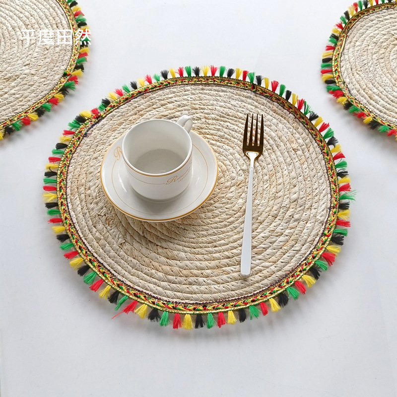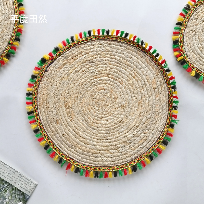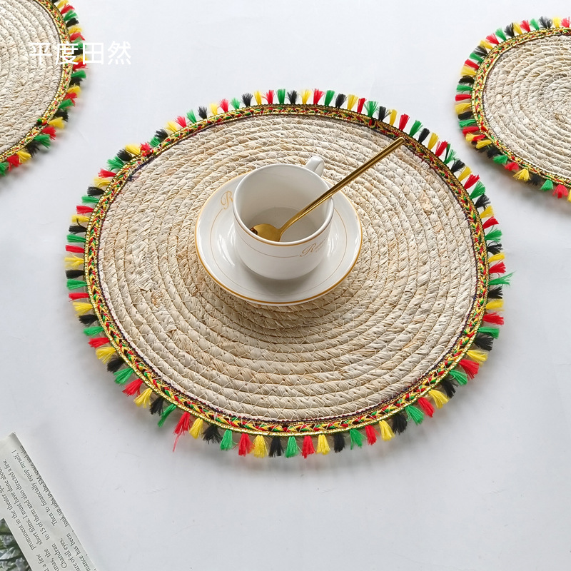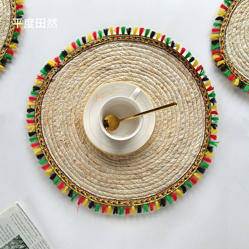 波西米亚风草编餐垫彩色流苏玉米皮编织桌垫加厚隔热砂锅垫盘子垫