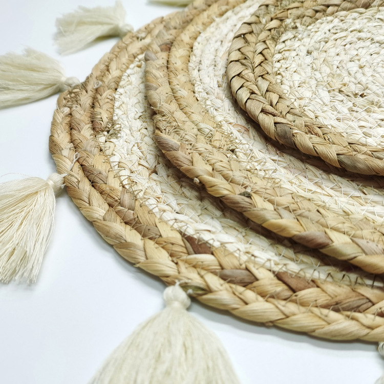 现货草编餐垫创意家居编织餐垫水葫芦草隔热垫玉米皮咖啡垫流苏垫