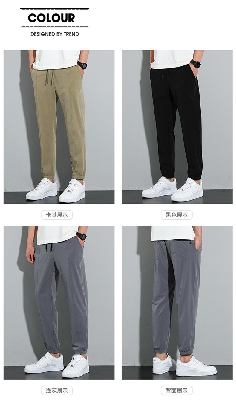 冰丝裤男士2024夏季薄款宽松透气速干运动裤休闲冰感束脚弹力裤子