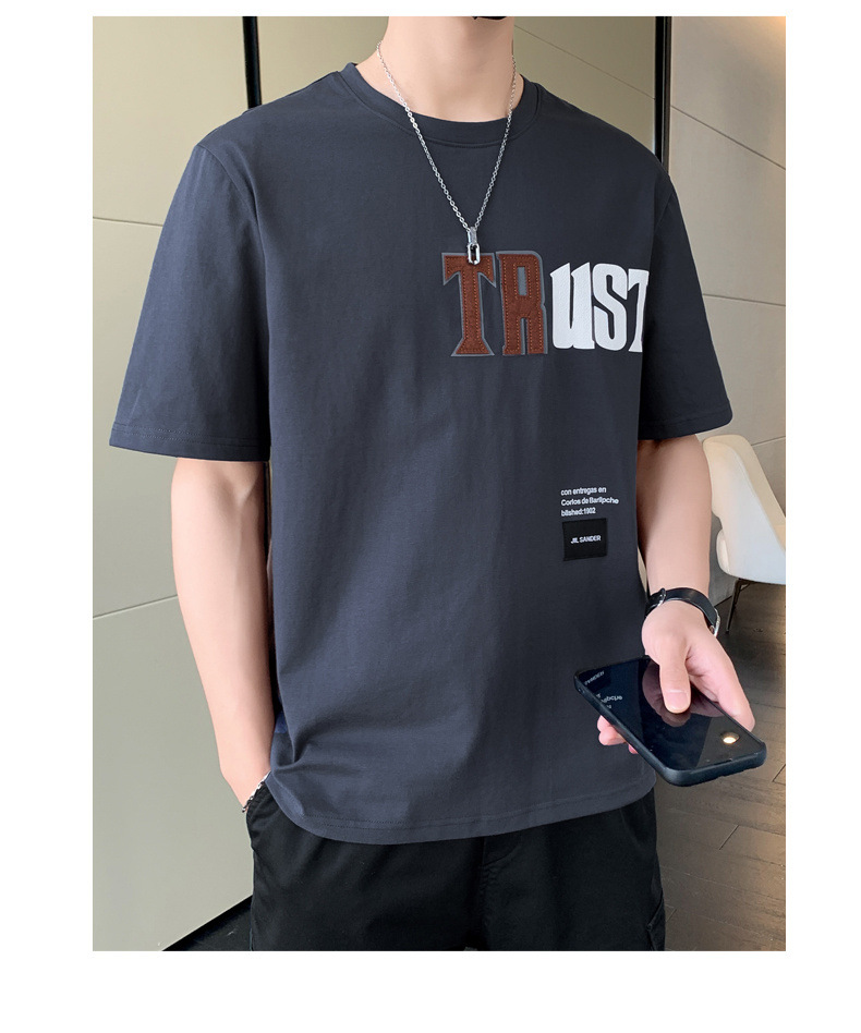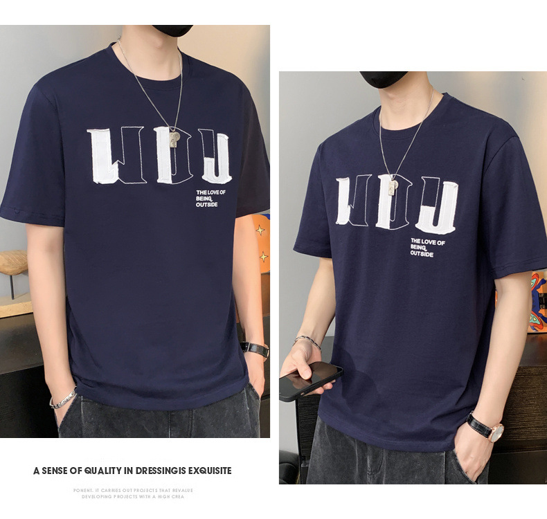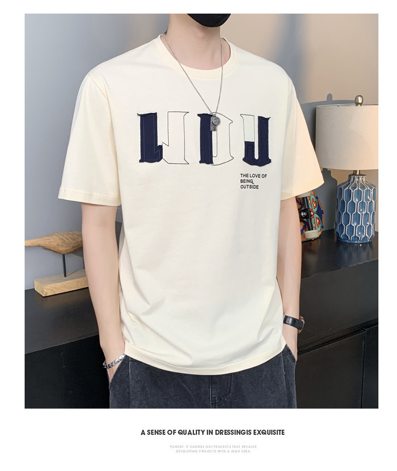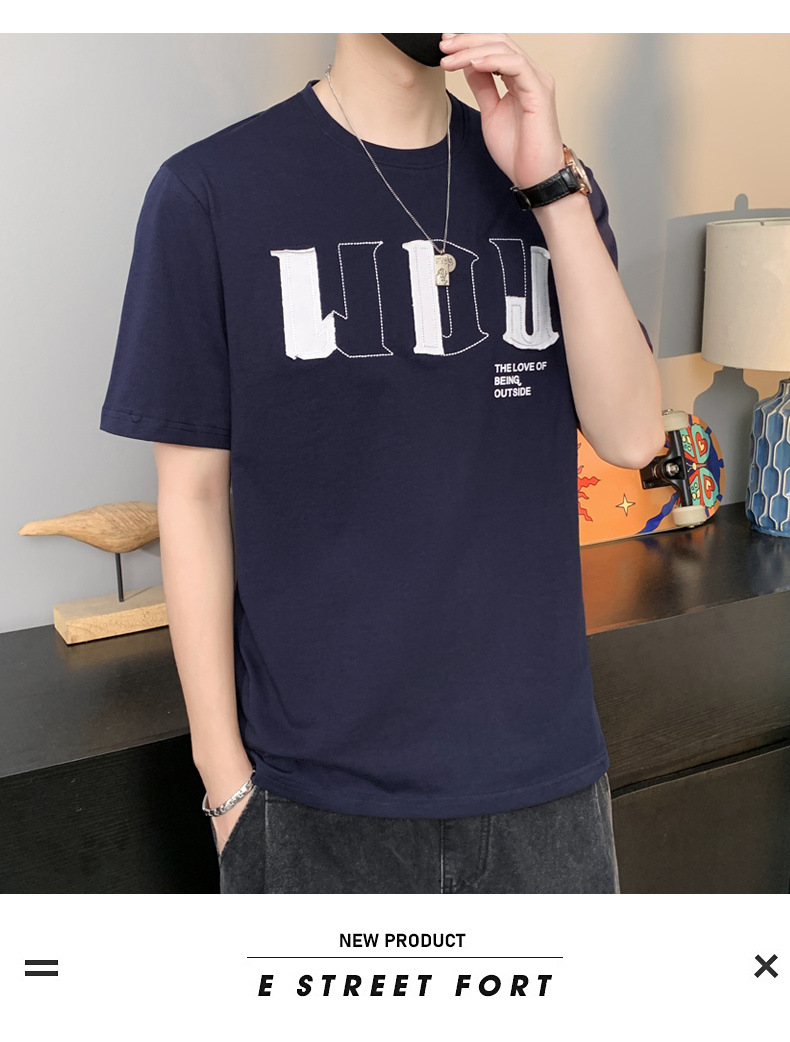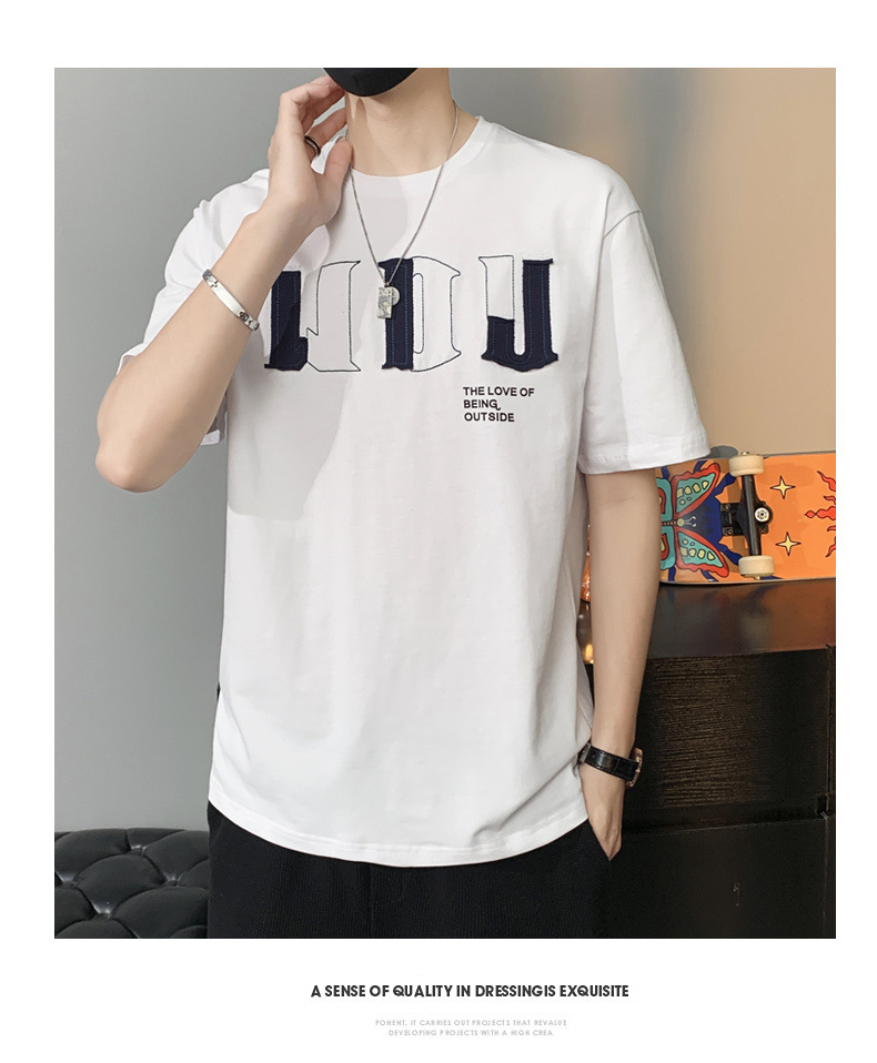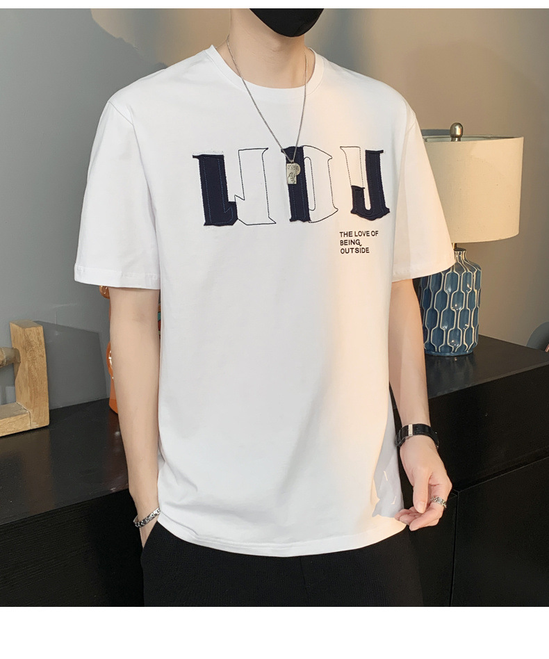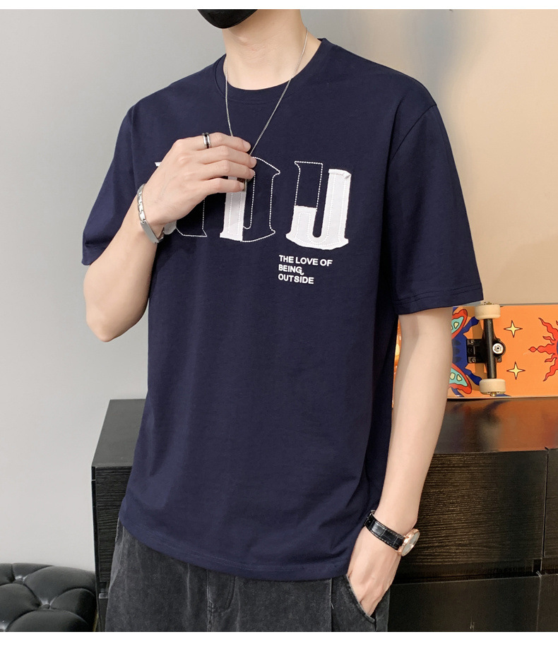 纯棉短袖t恤男士潮流韩版新款夏季刺绣字母半袖学生宽松圆领体恤