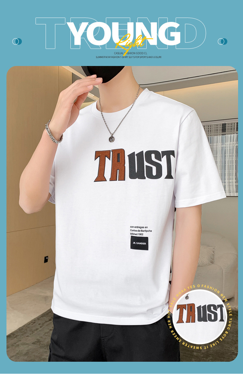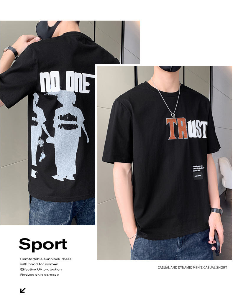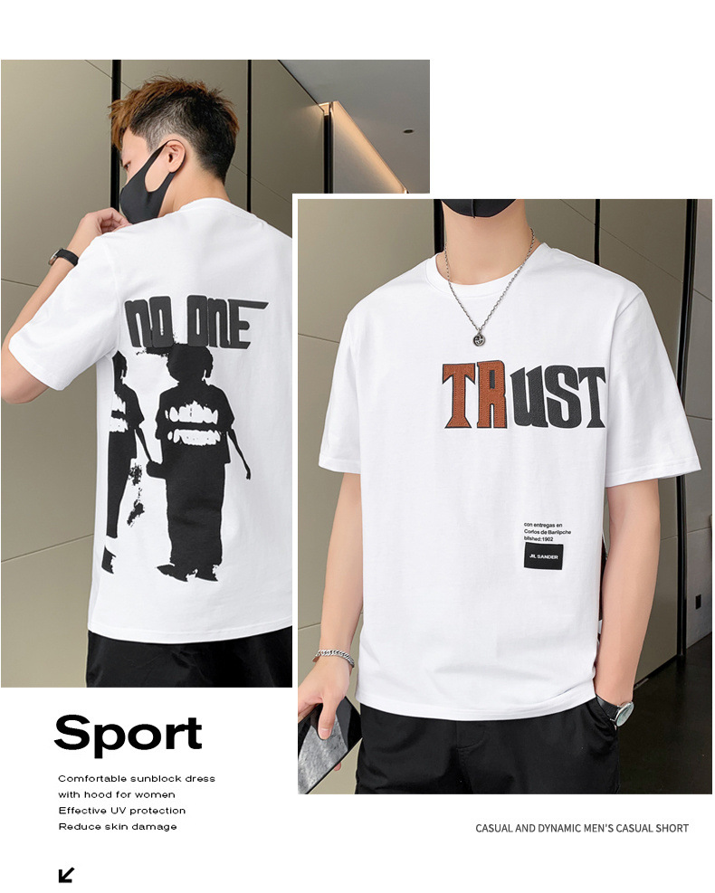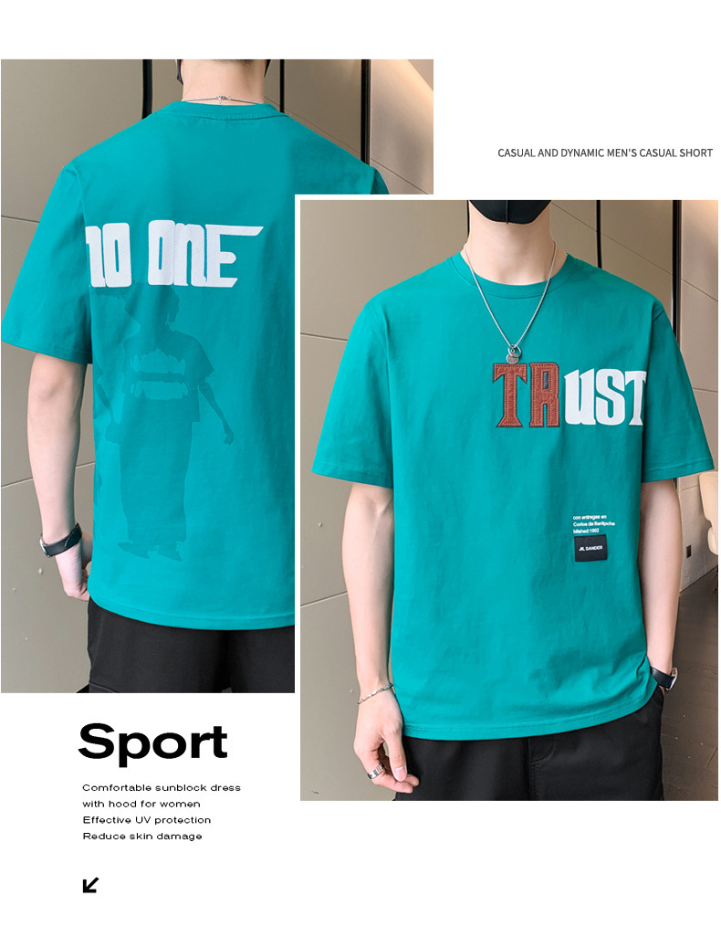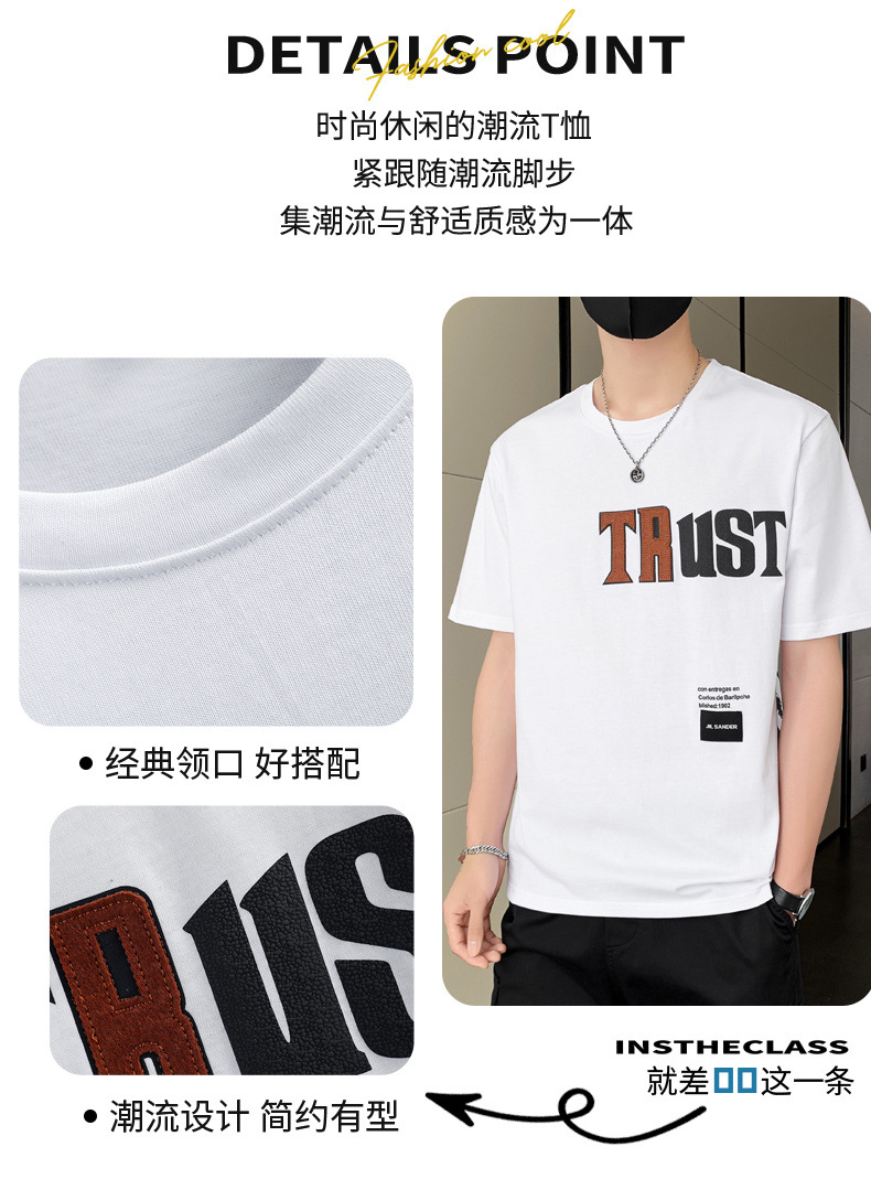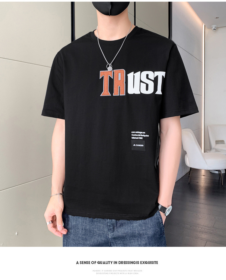 纯棉短袖t恤男士潮流韩版新款夏季刺绣字母半袖学生宽松圆领体恤