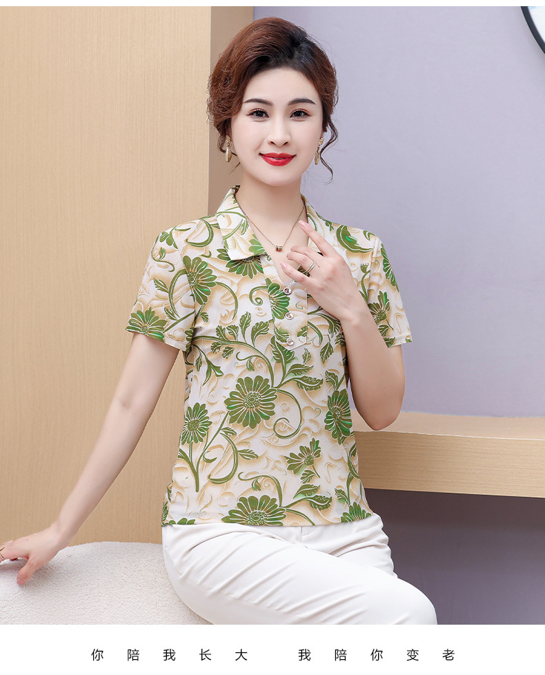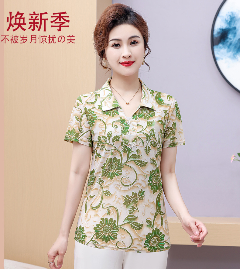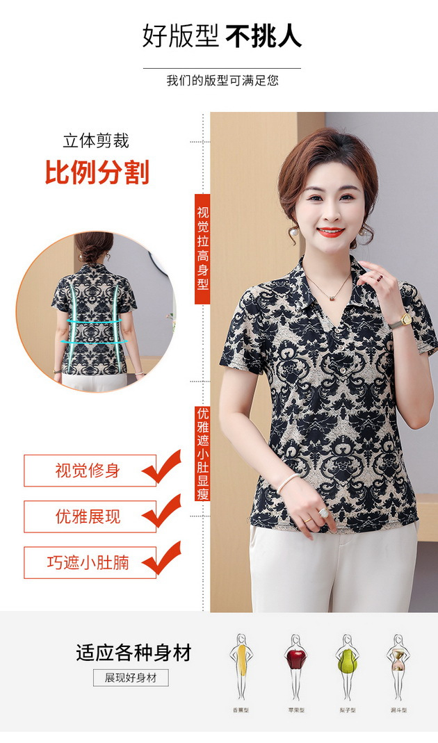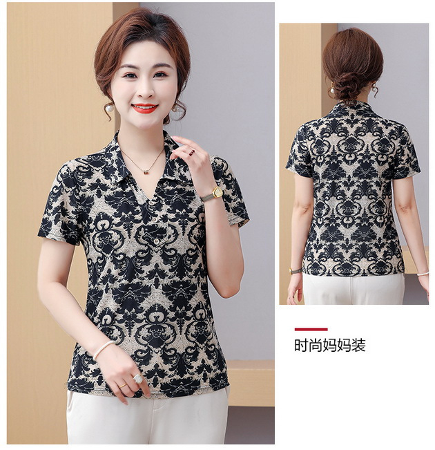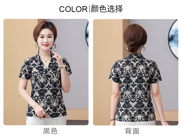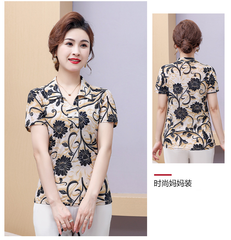 气质短袖夏季新款时尚上衣洋气百搭妈妈休闲宽松显瘦薄款套头衬衫