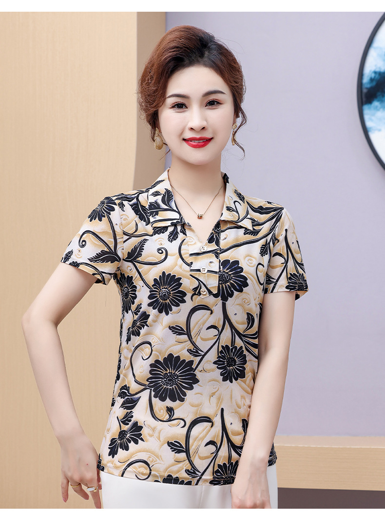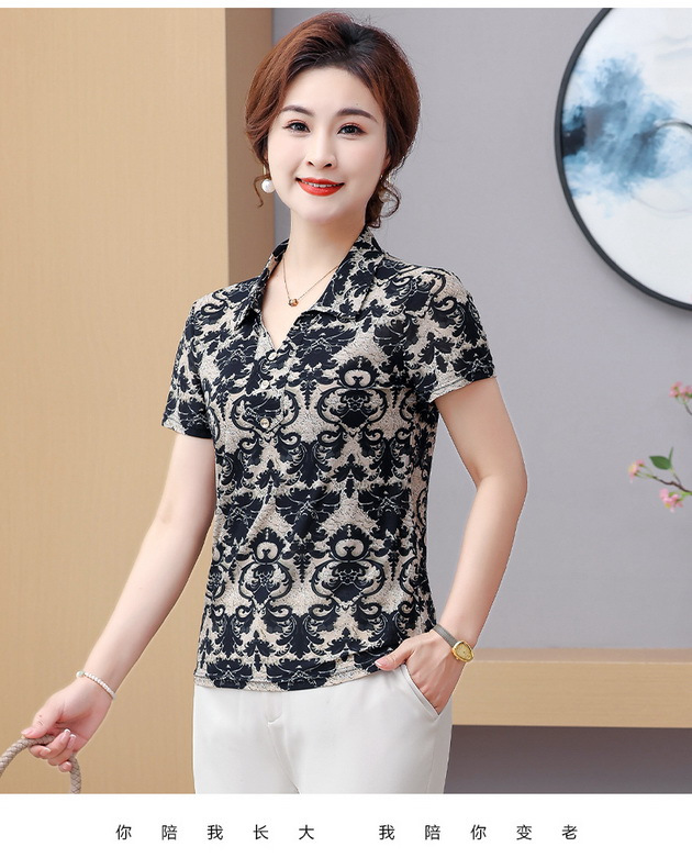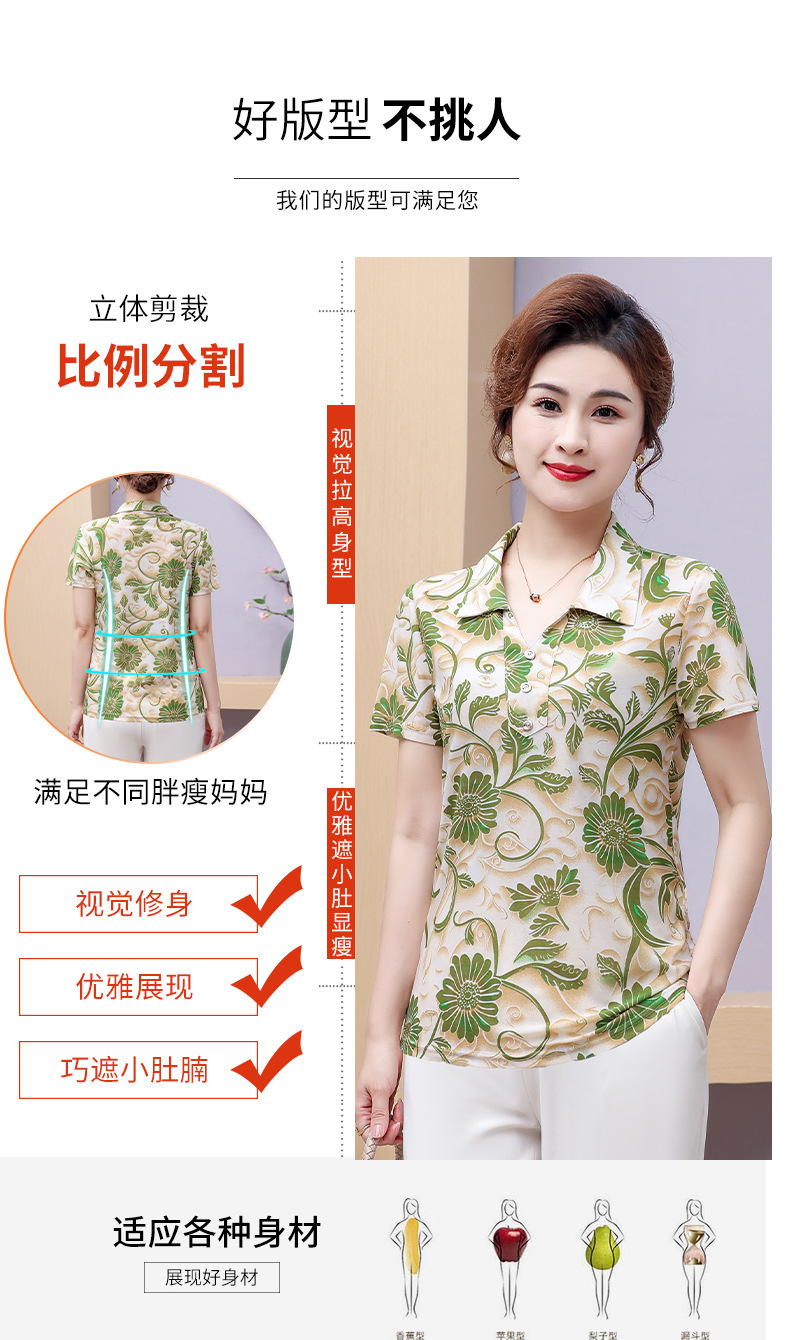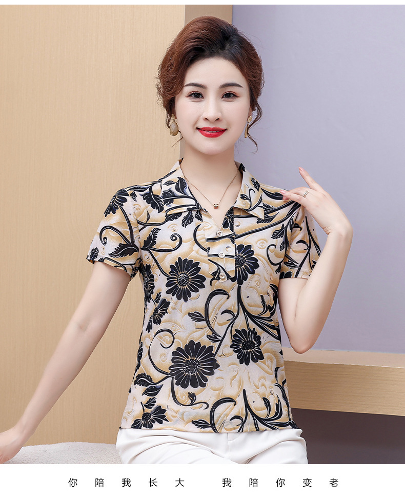 气质短袖夏季新款时尚上衣洋气百搭妈妈休闲宽松显瘦薄款套头衬衫