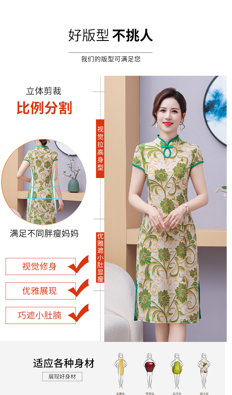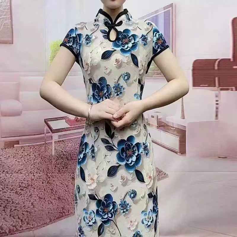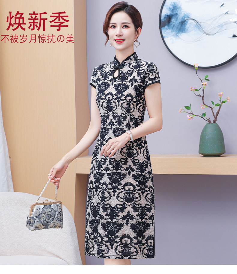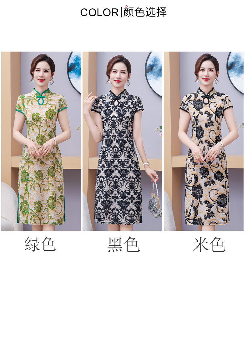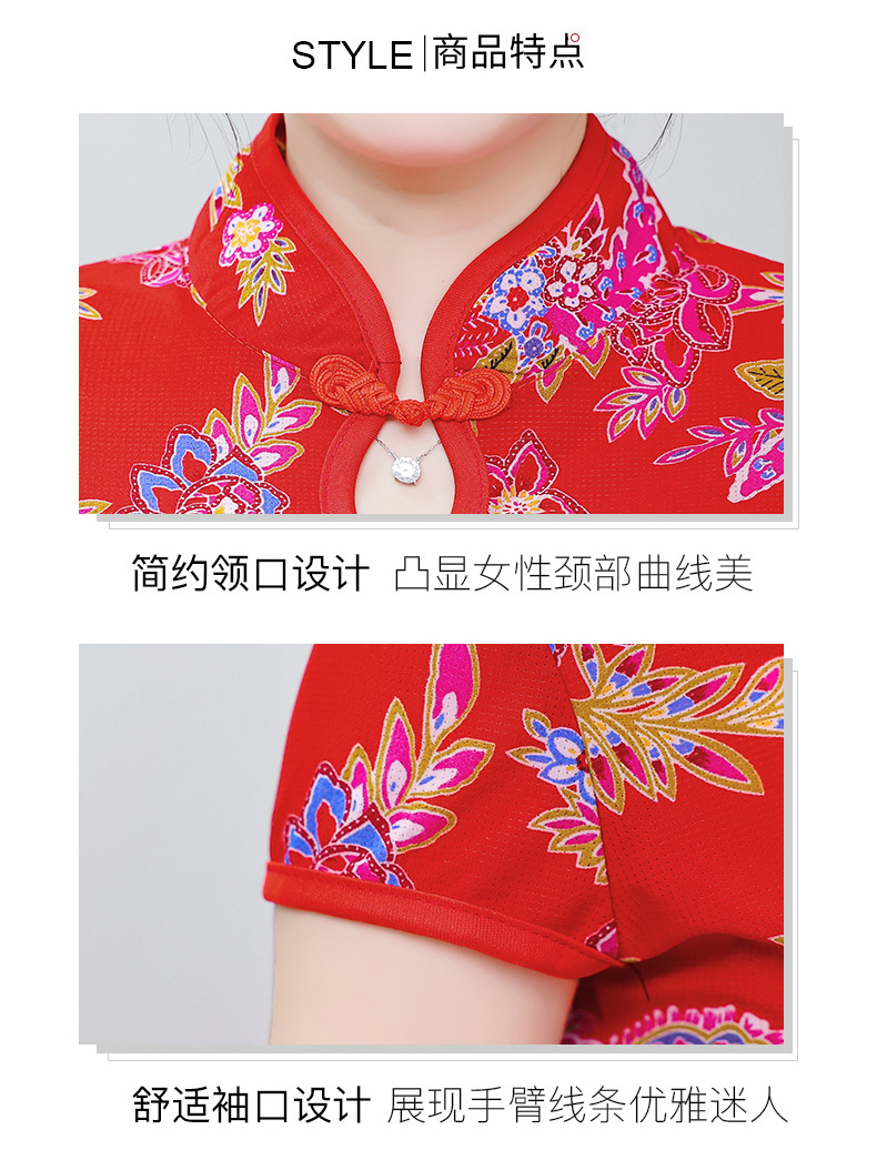 新款中年妈妈夏季中袖连衣裙40岁50岁改良旗袍过膝裙洋气显瘦裙子