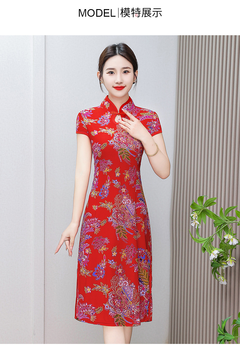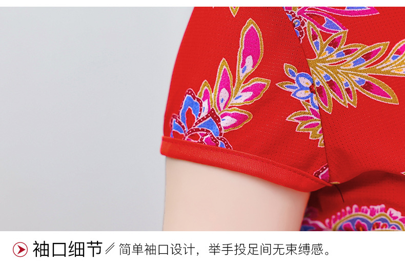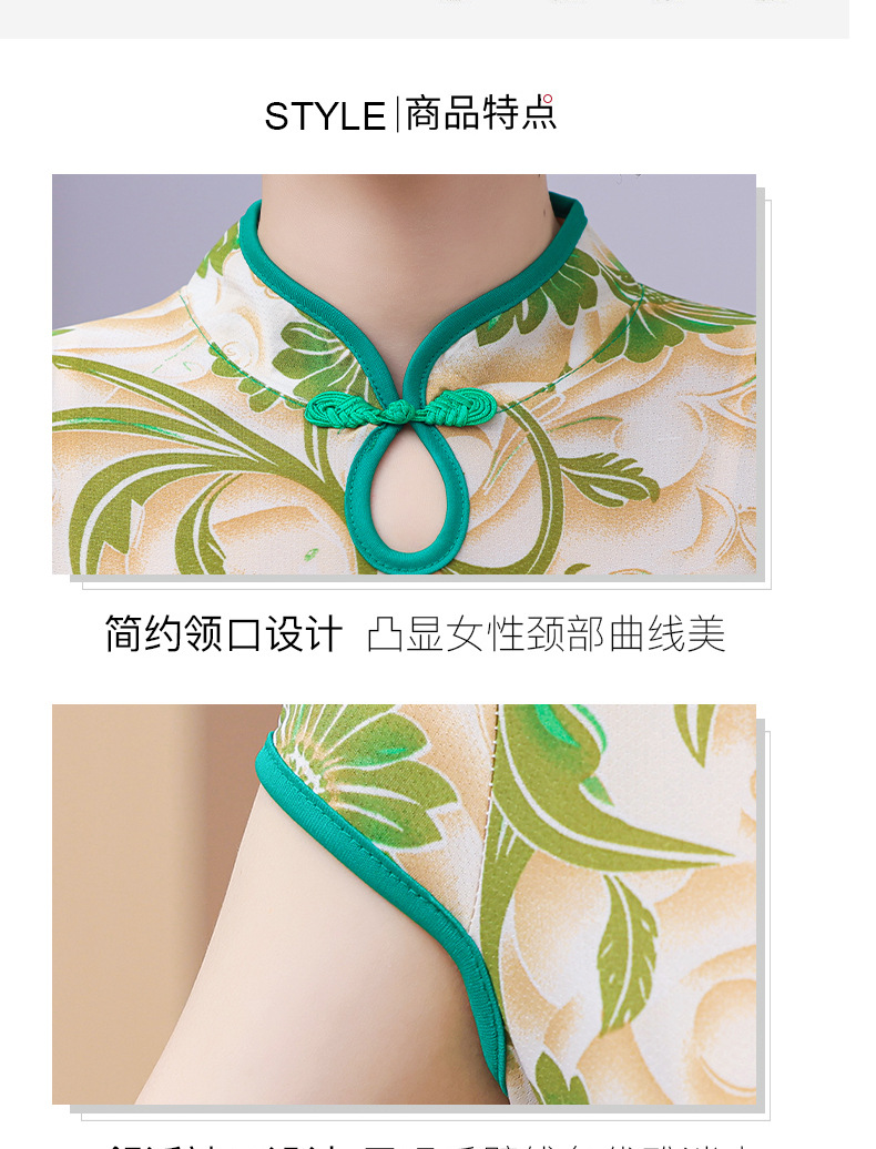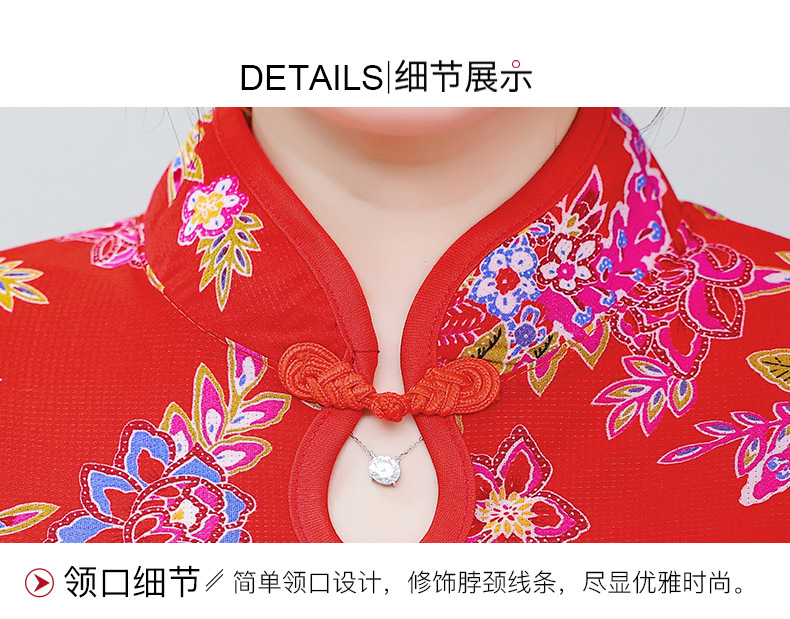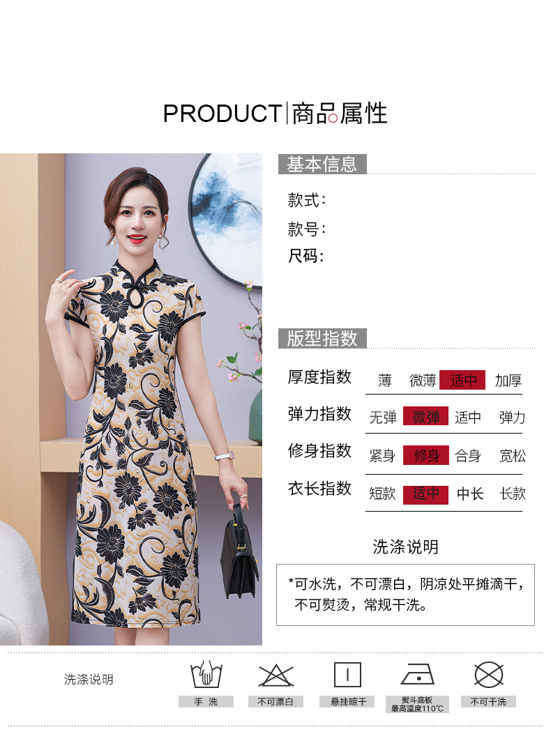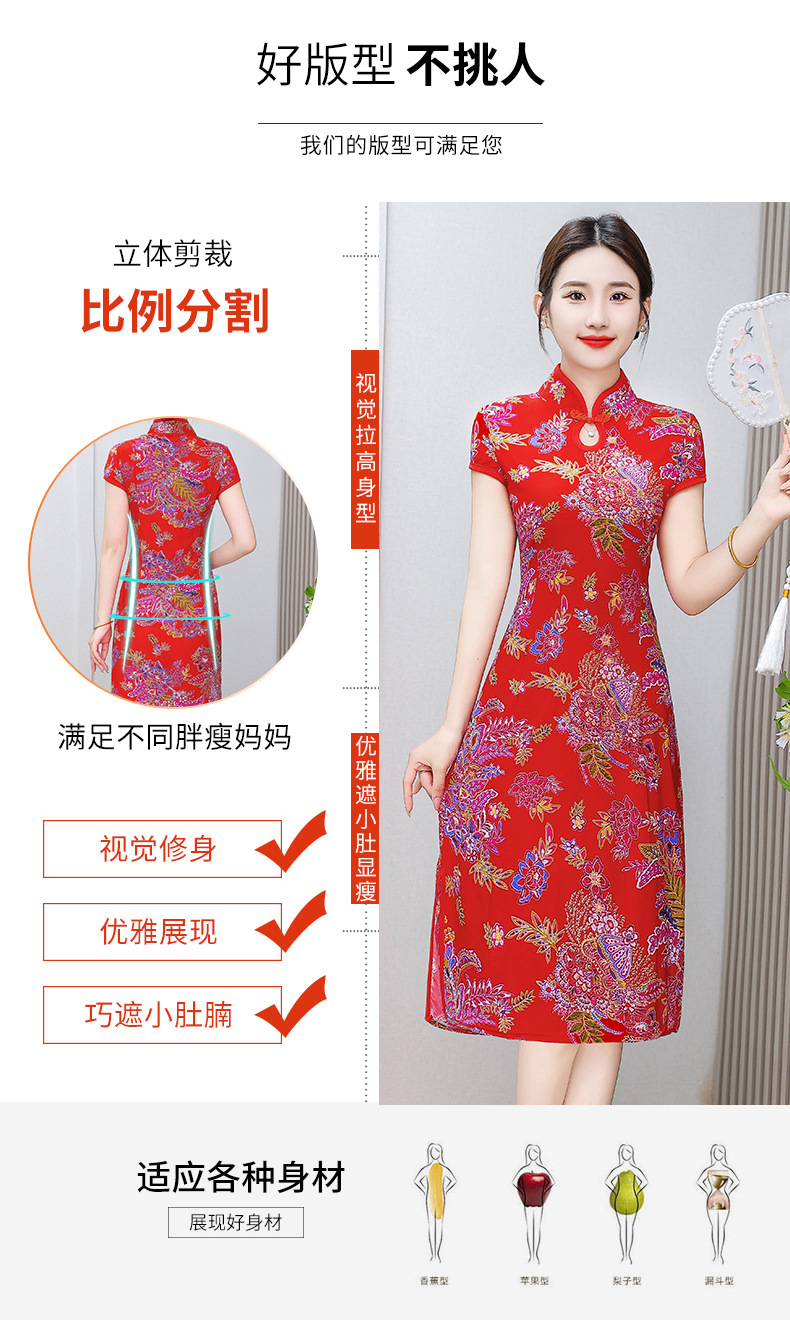 新款中年妈妈夏季中袖连衣裙40岁50岁改良旗袍过膝裙洋气显瘦裙子