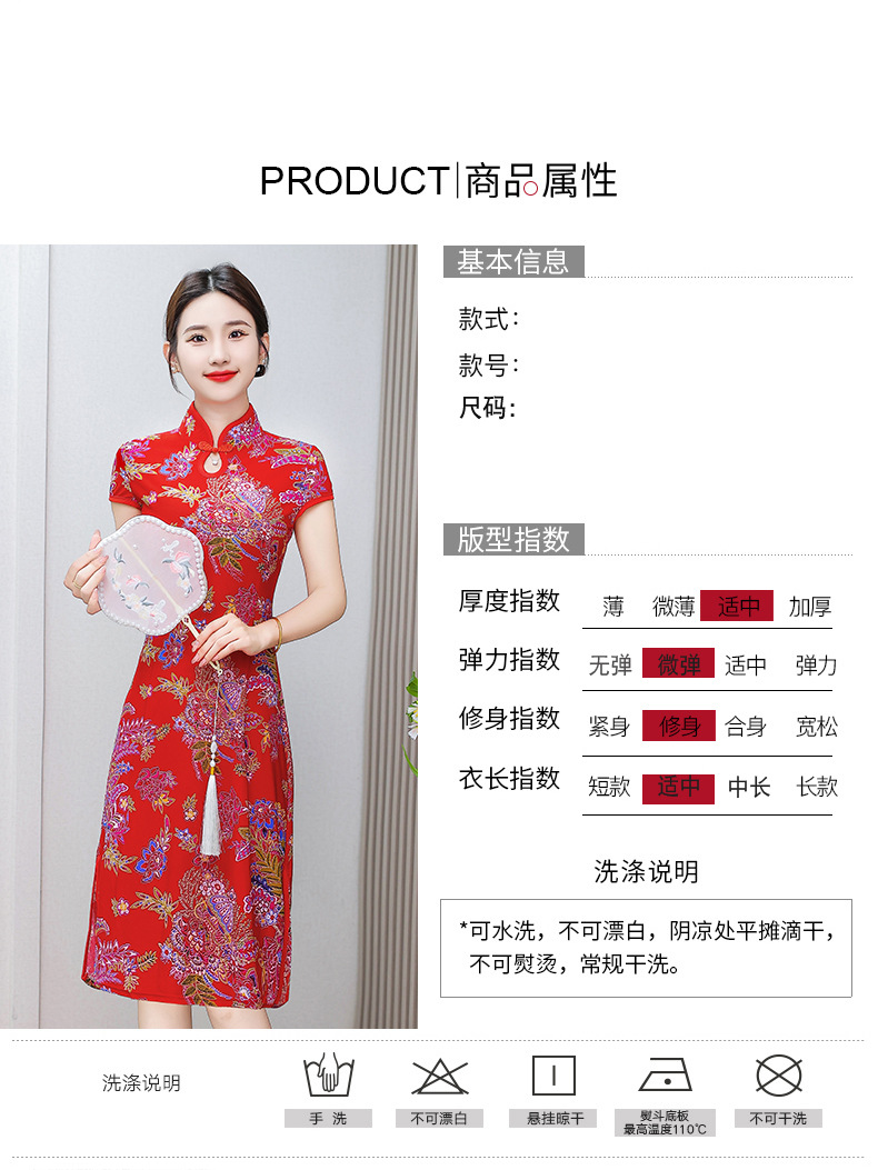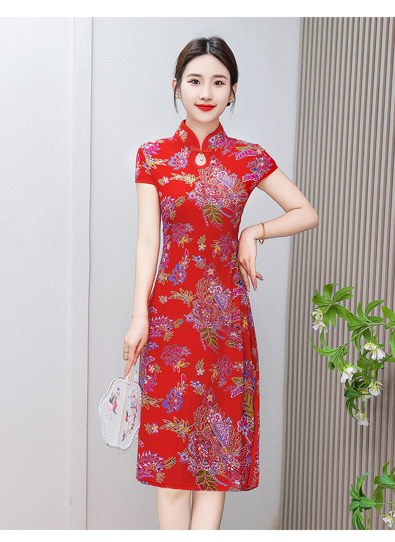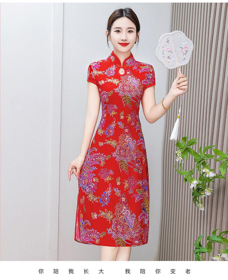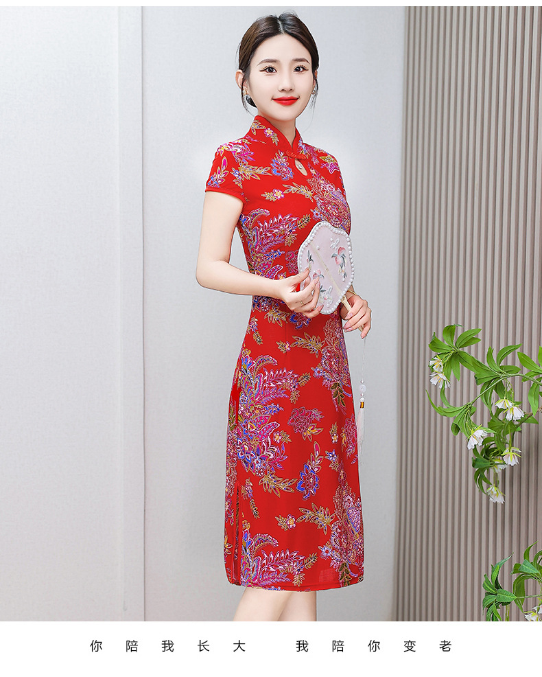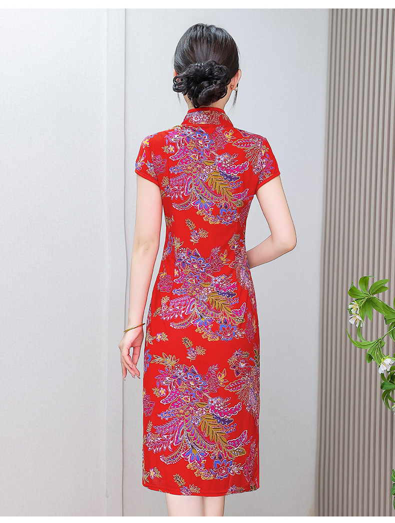 新款中年妈妈夏季中袖连衣裙40岁50岁改良旗袍过膝裙洋气显瘦裙子