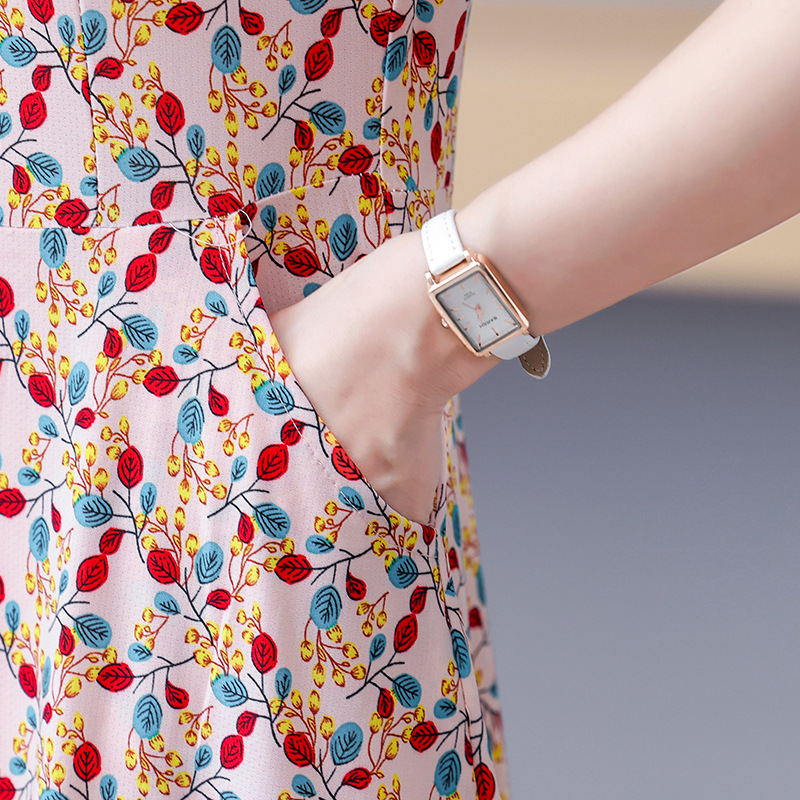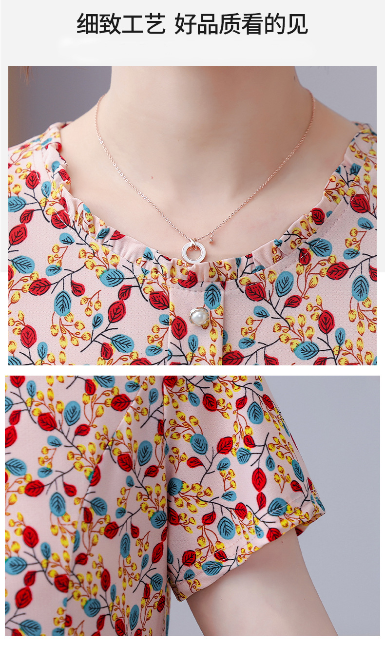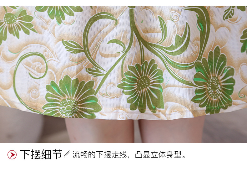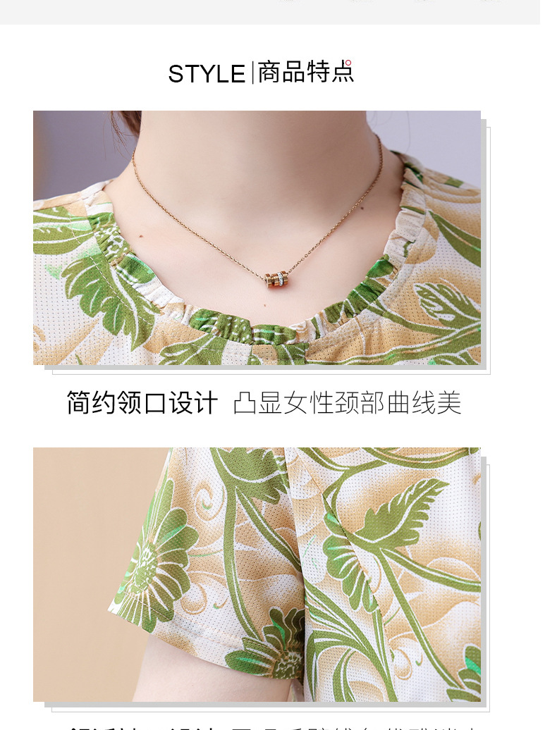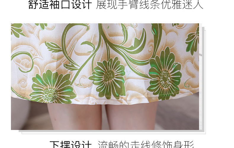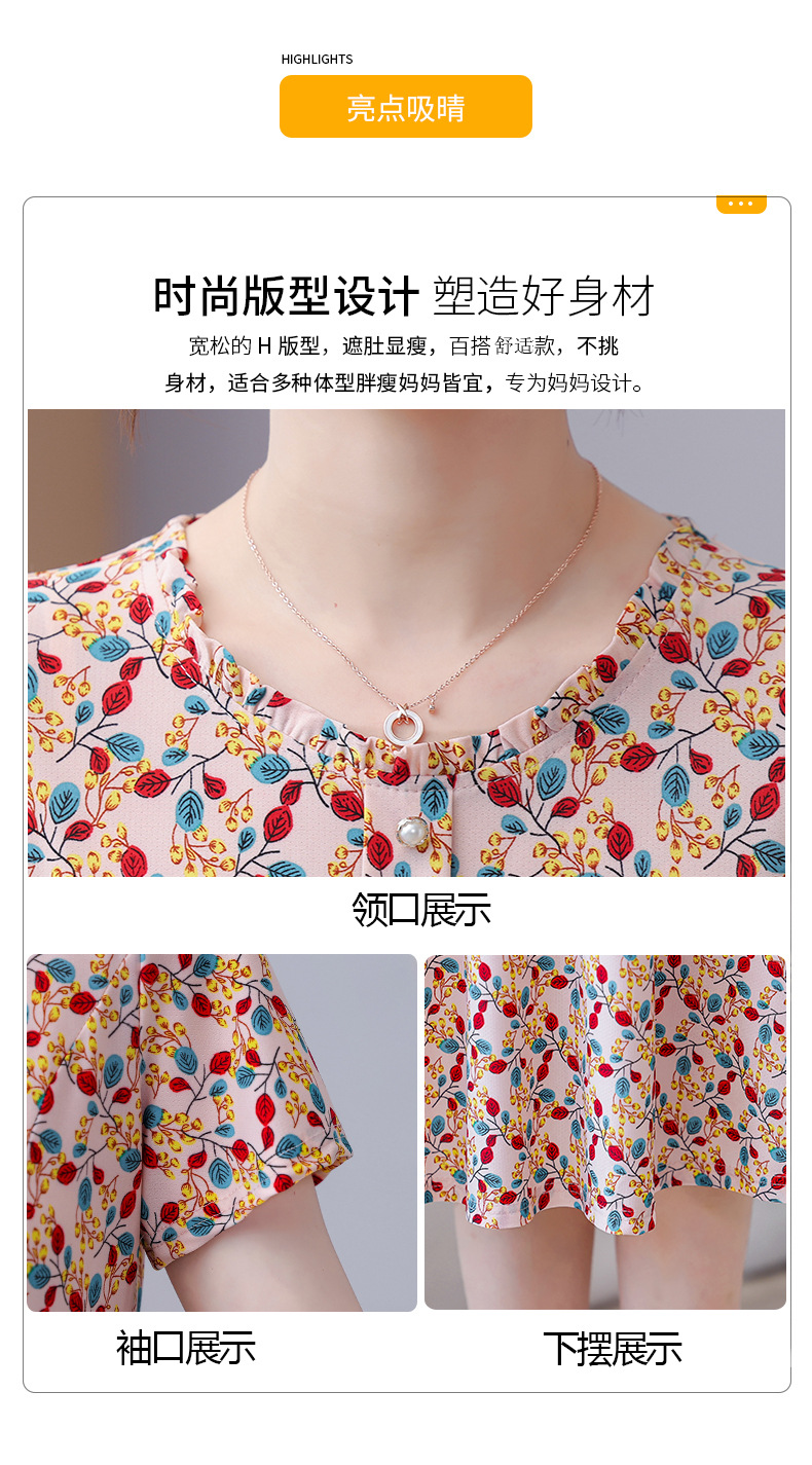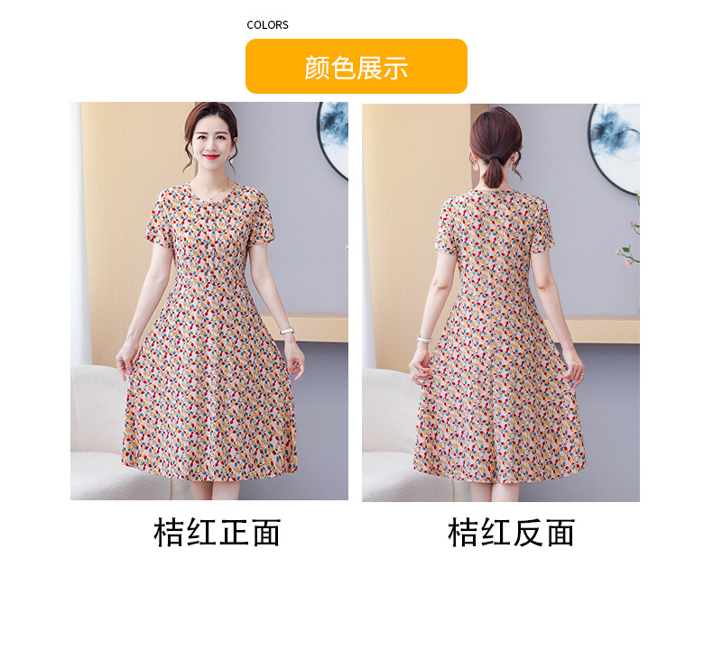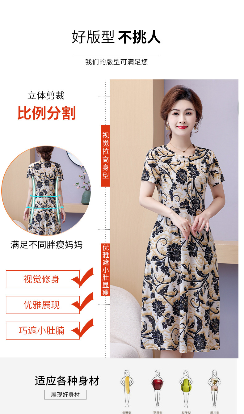 中年妈妈夏季碎花短袖圆领过膝连衣裙2024新款秋装收腰A字版裙子