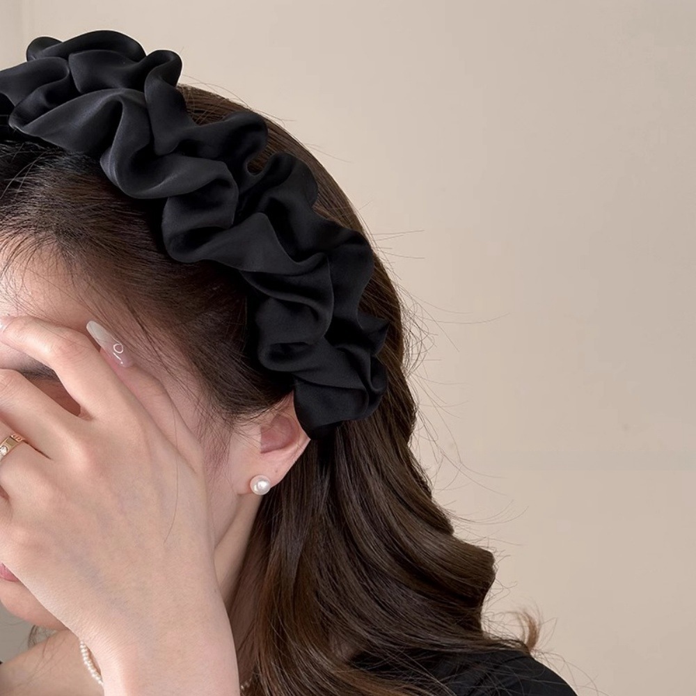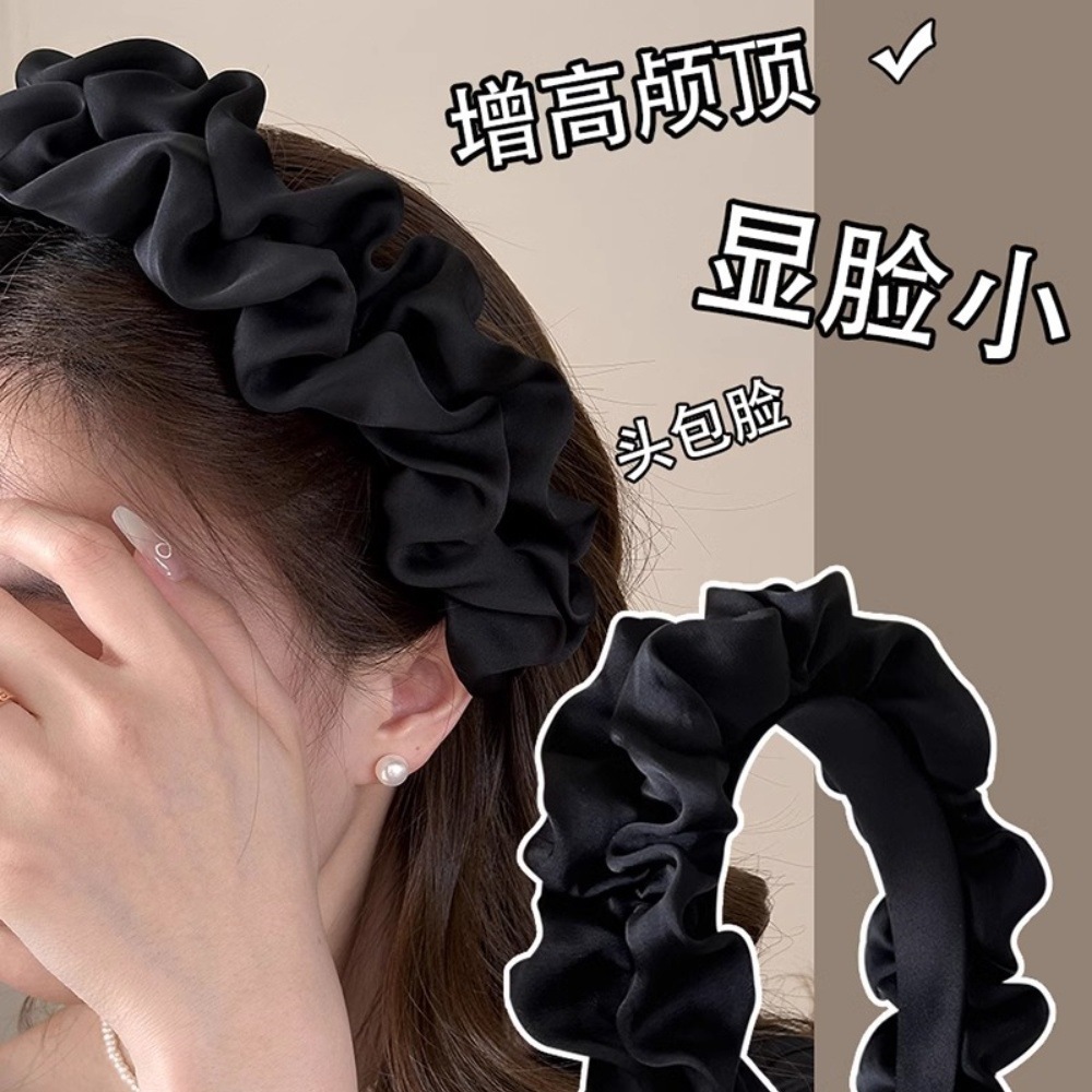 黑色宽边褶皱发箍女2024新款高颅顶洗脸头箍夏天外出百搭发卡头饰
