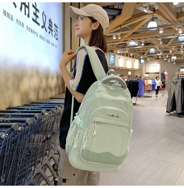 新款双肩包女中学生书包高颜值撞色休闲背包