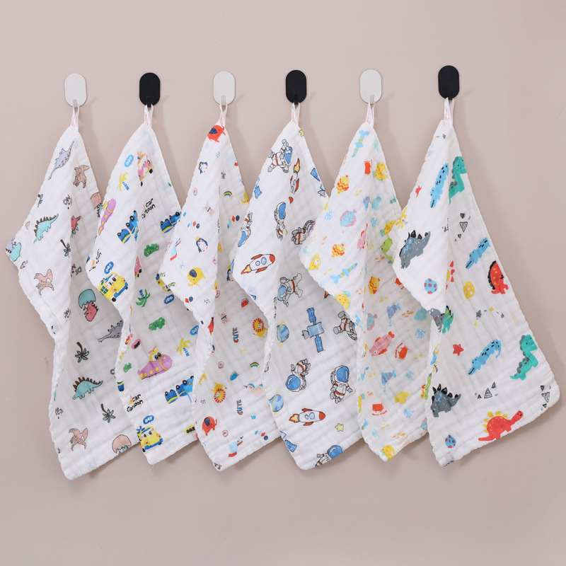 纯棉口水巾六层全棉毛巾印花洗脸巾高密婴儿童巾纱布方巾儿童毛巾