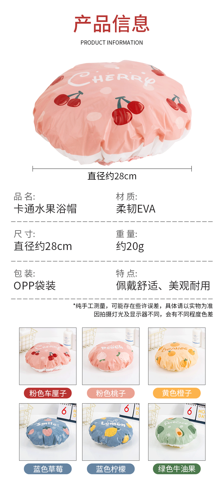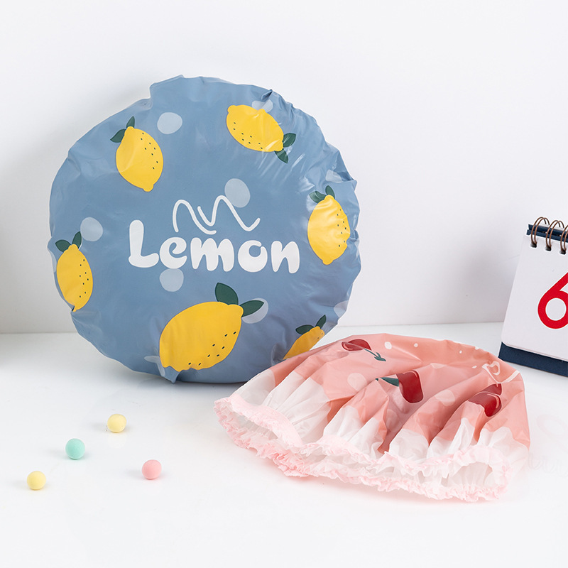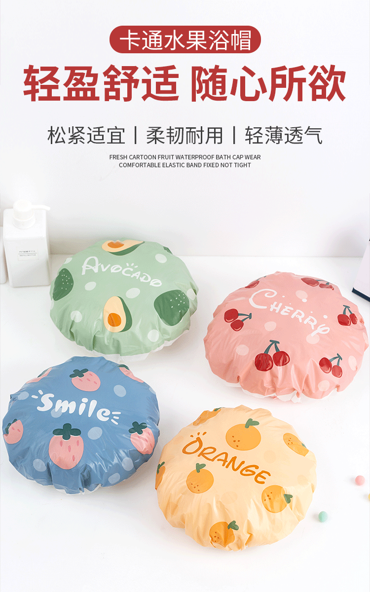 水果浴帽 防水浴帽成人女可爱水果防水洗澡淋浴头套厨房防油烟帽