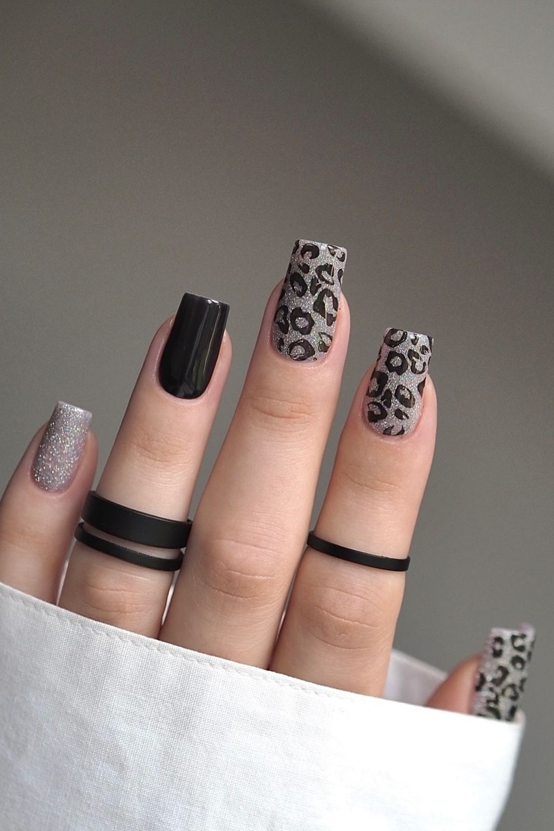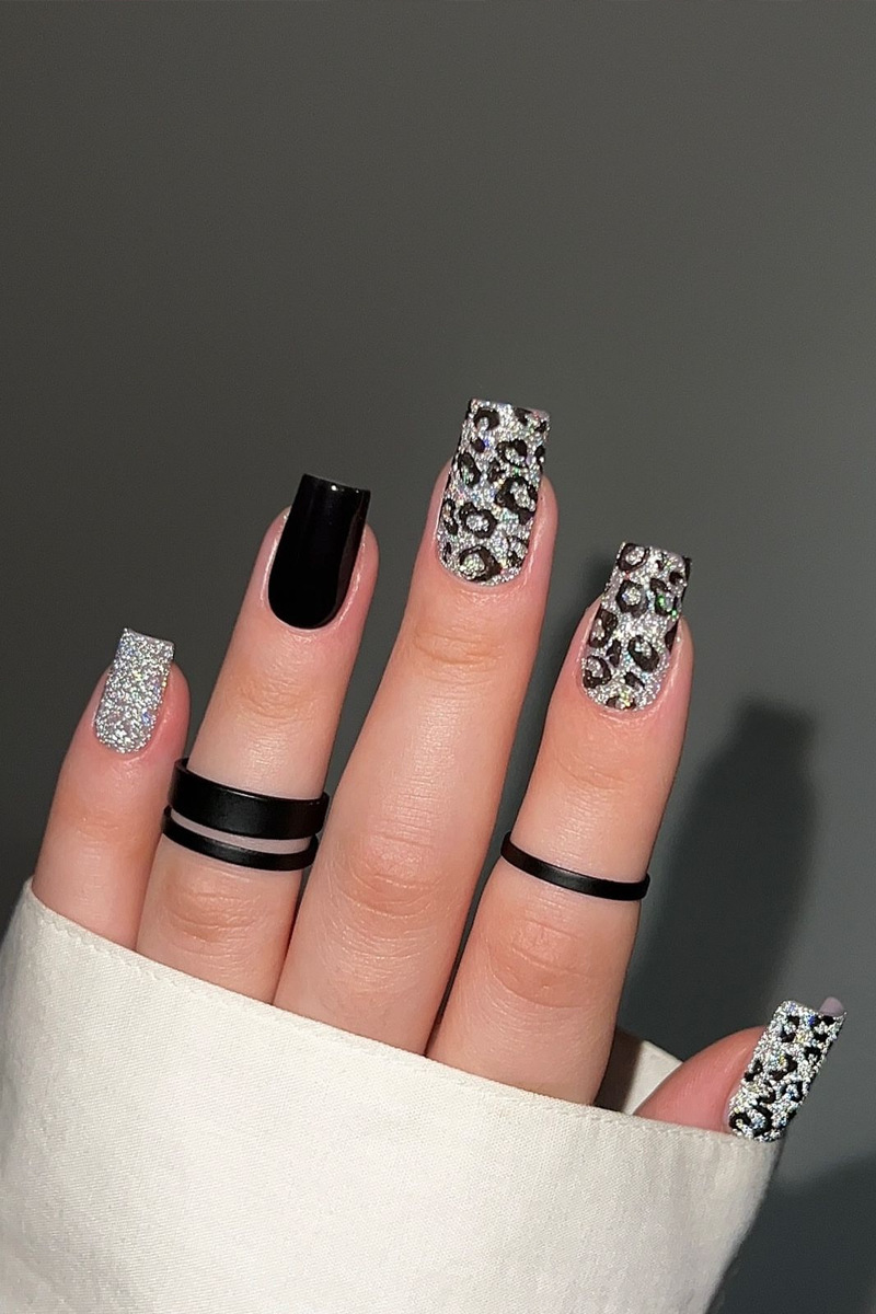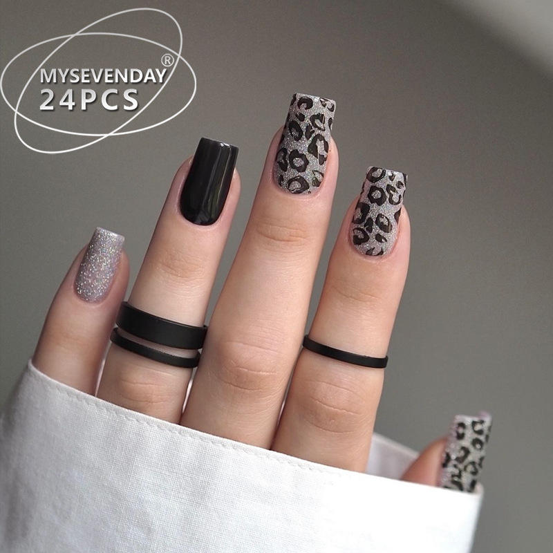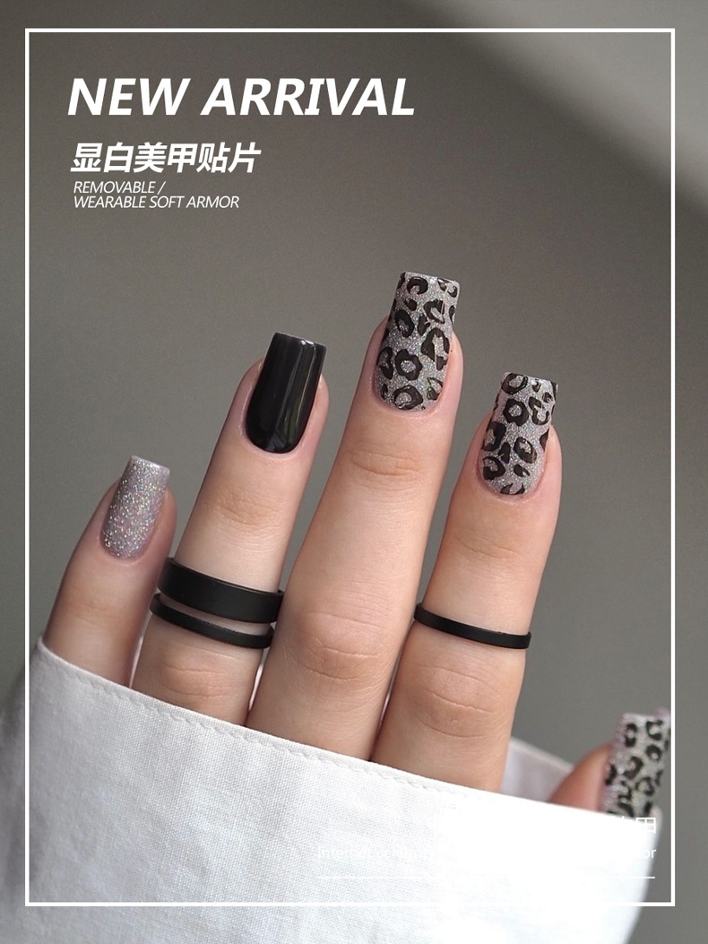 跨境爆款穿戴甲短款ins撞色美甲贴片24片可拆卸豹纹闪粉假指甲片