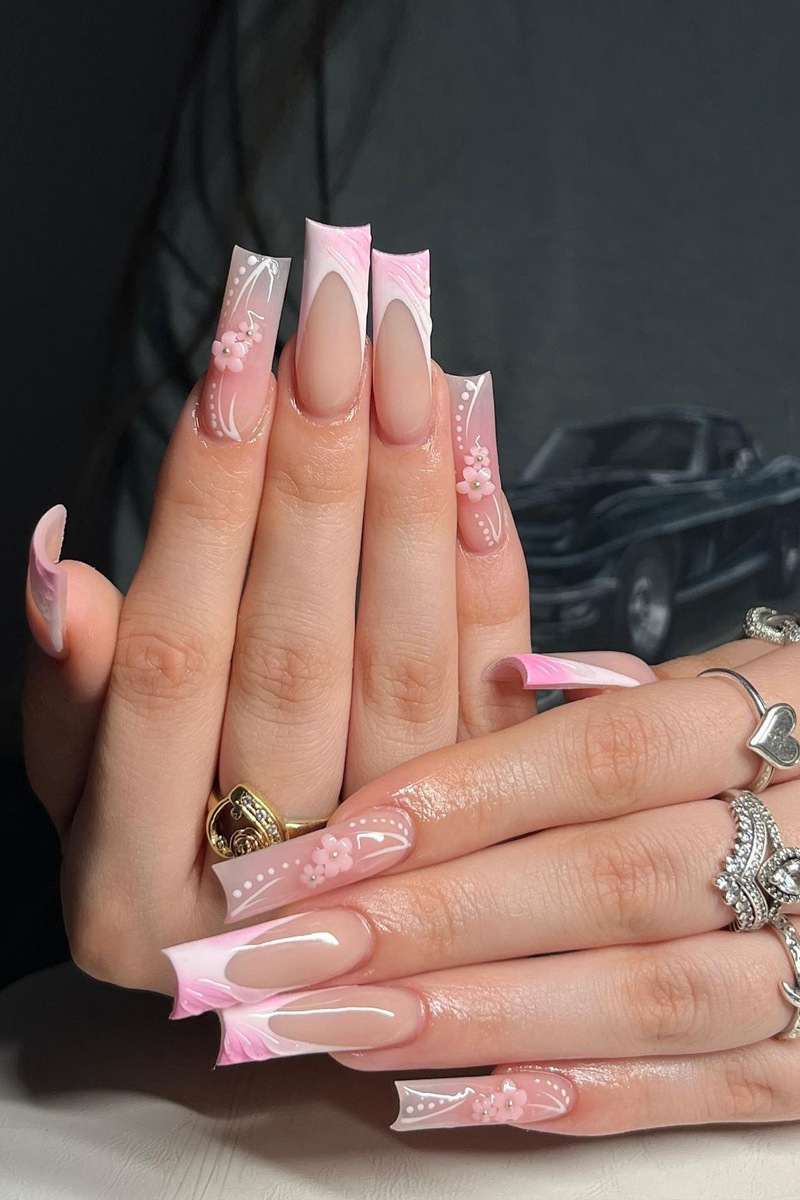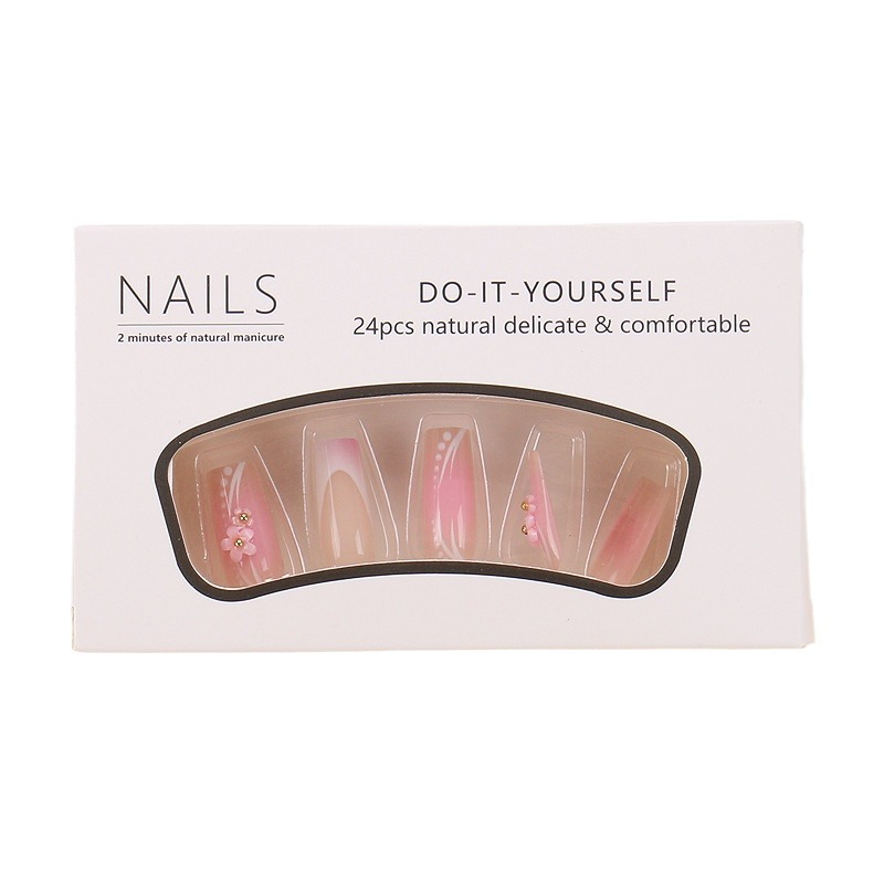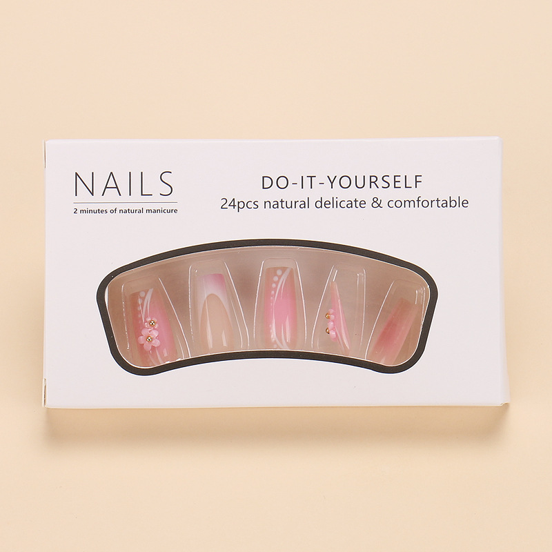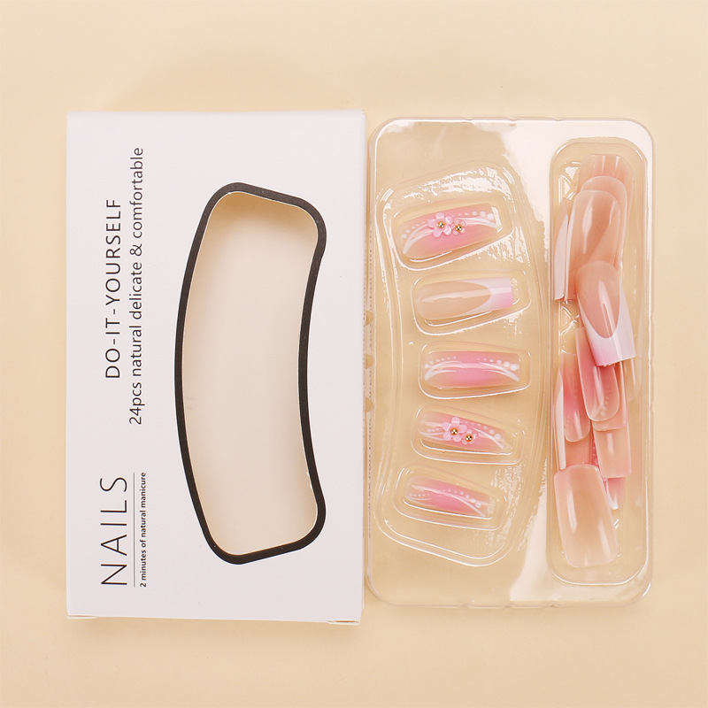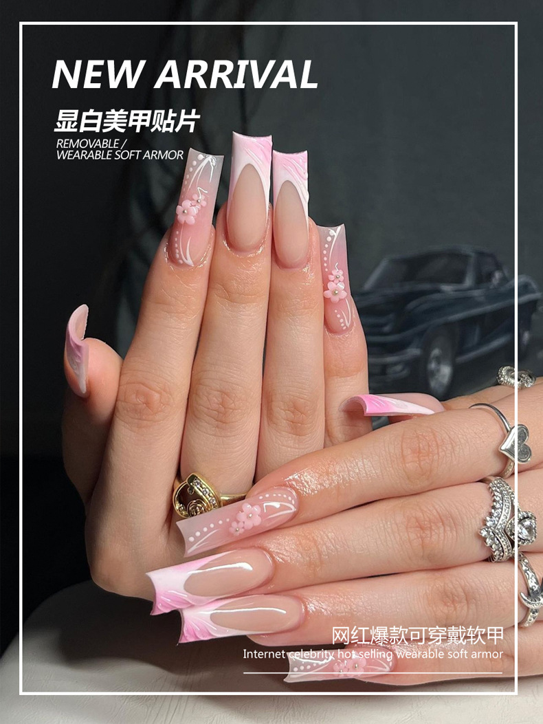 跨境爆款穿戴甲法式白边美甲贴片腮红甲立体花朵假指甲片可拆卸
