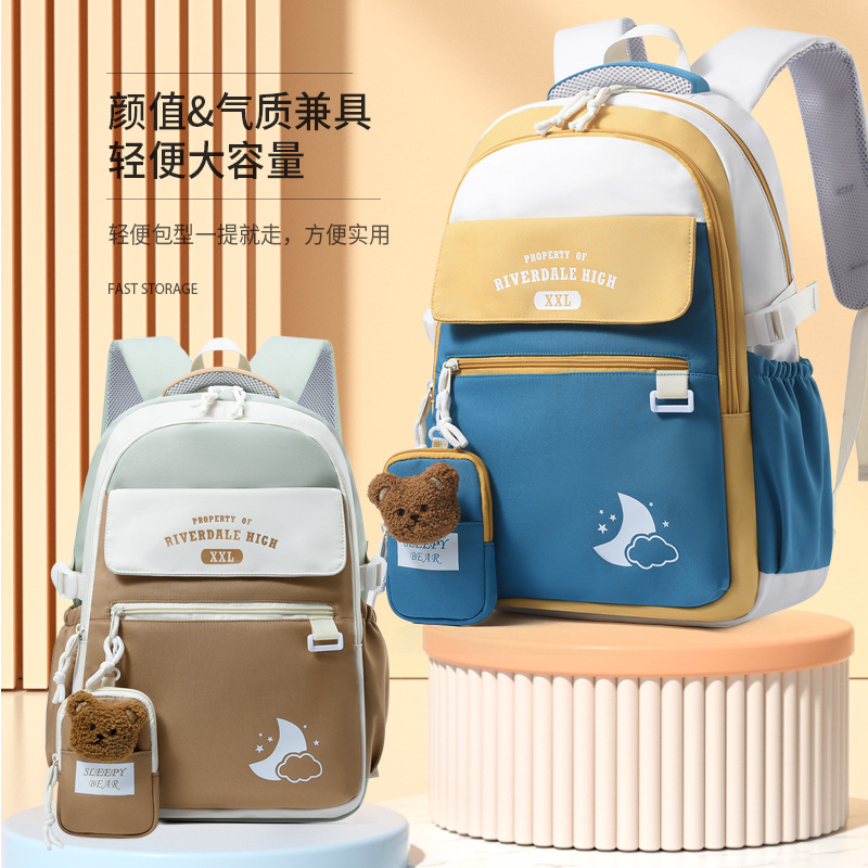 2024新款初高中大学生校园背包双肩包休闲拼色书包