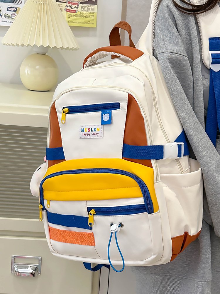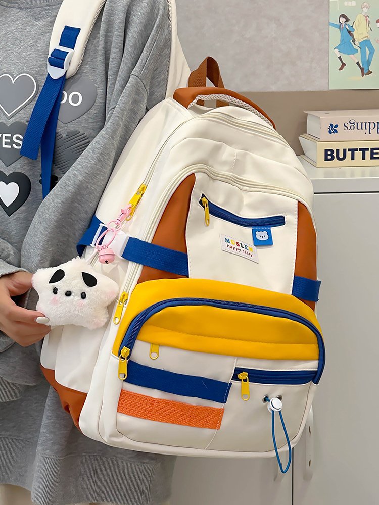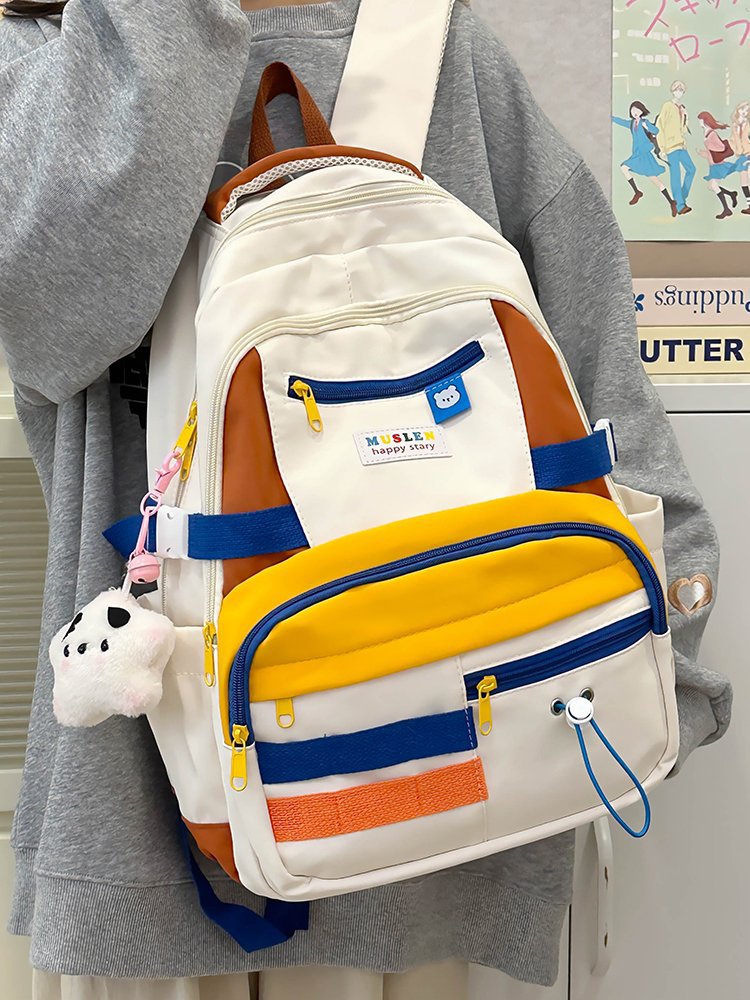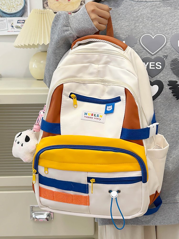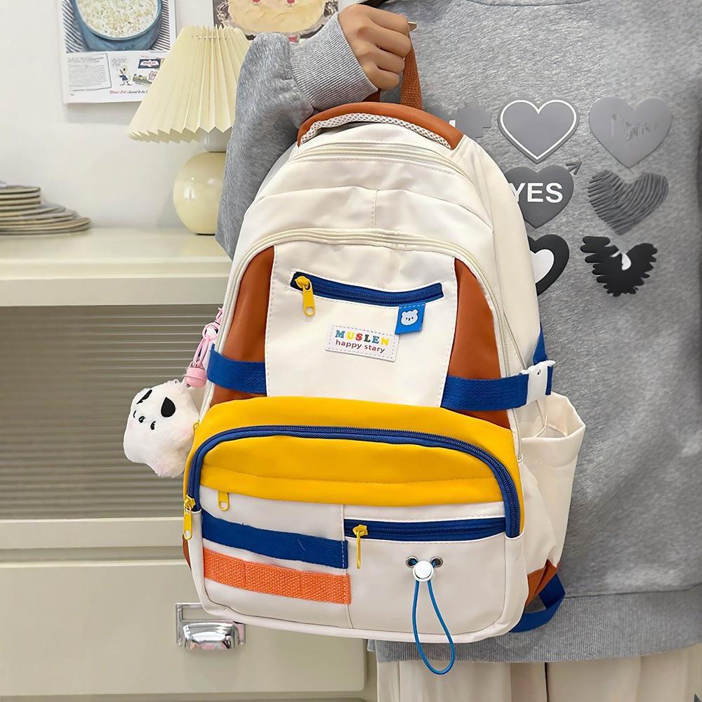 时尚拼接撞色原宿风背包2024新款ins 潮流双肩包