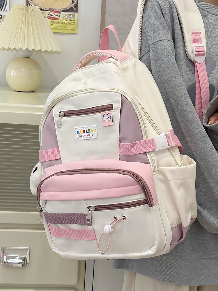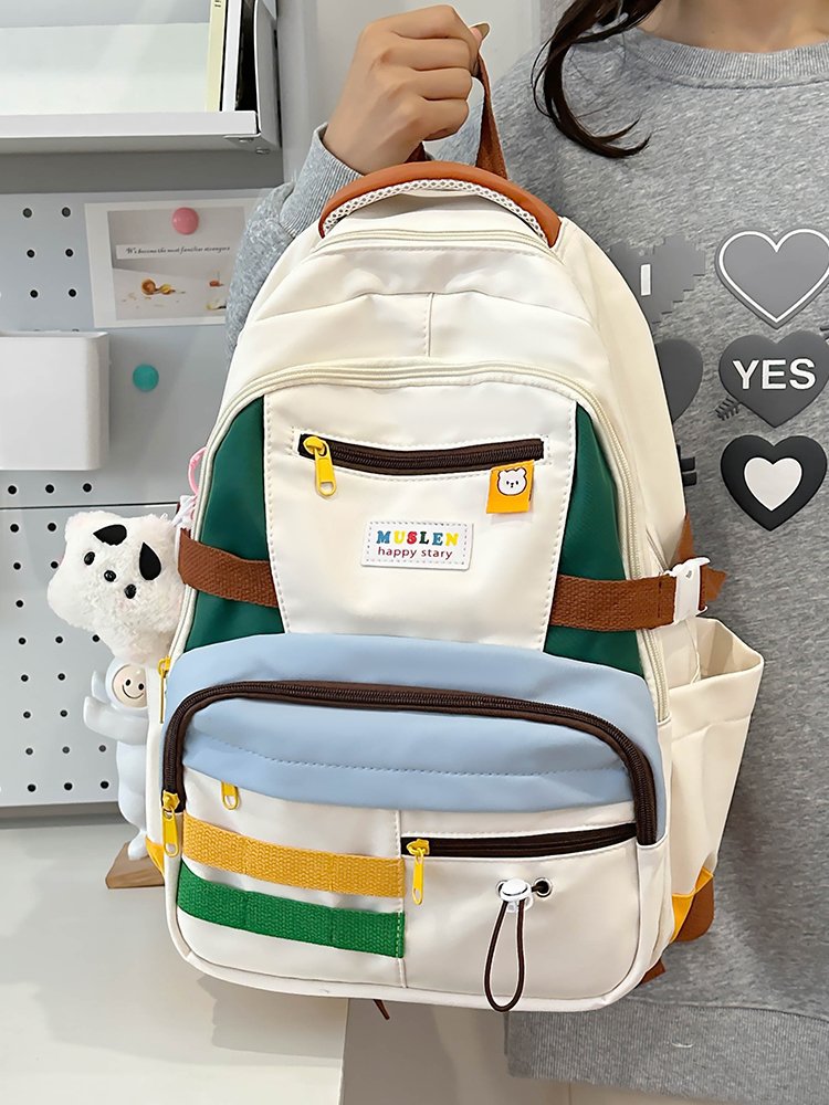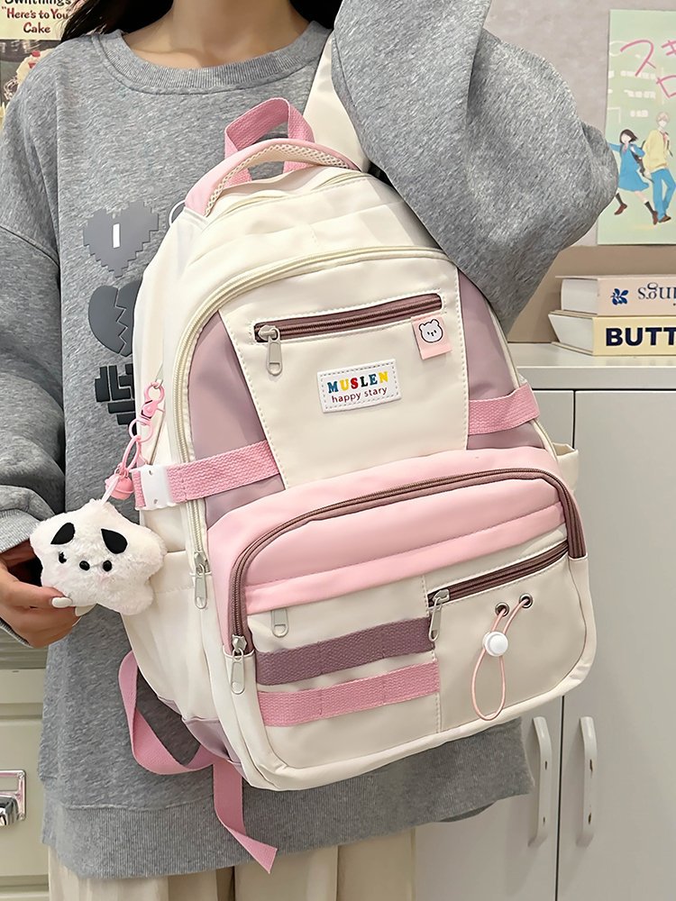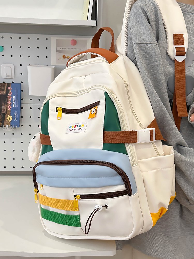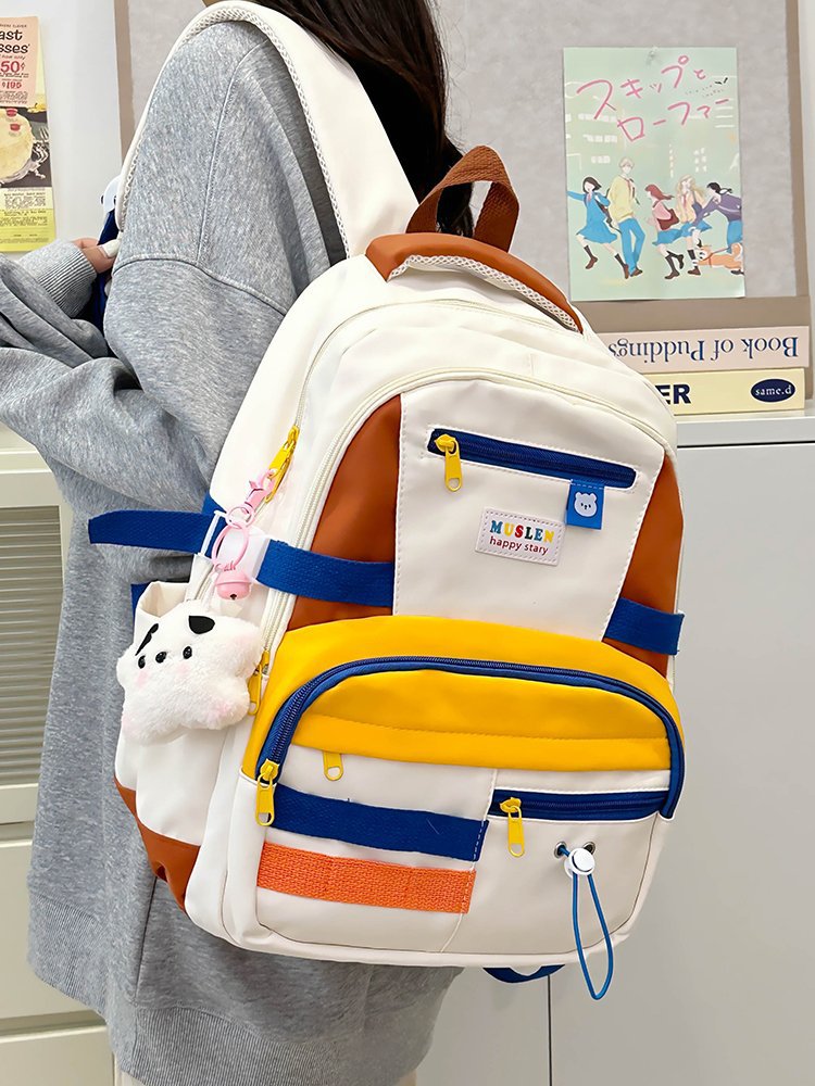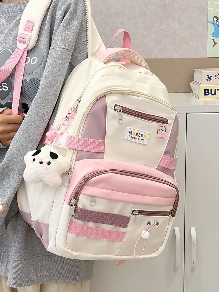 时尚拼接撞色原宿风背包2024新款ins 潮流双肩包