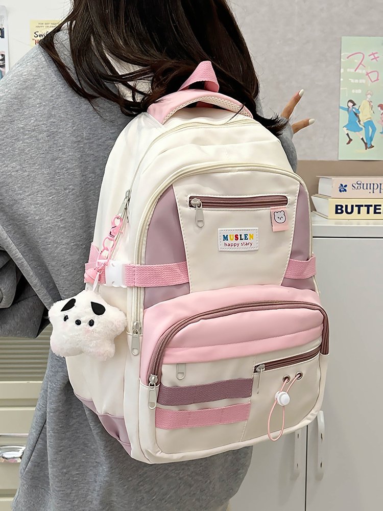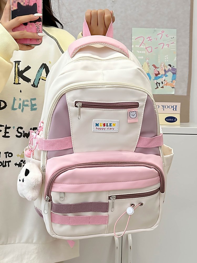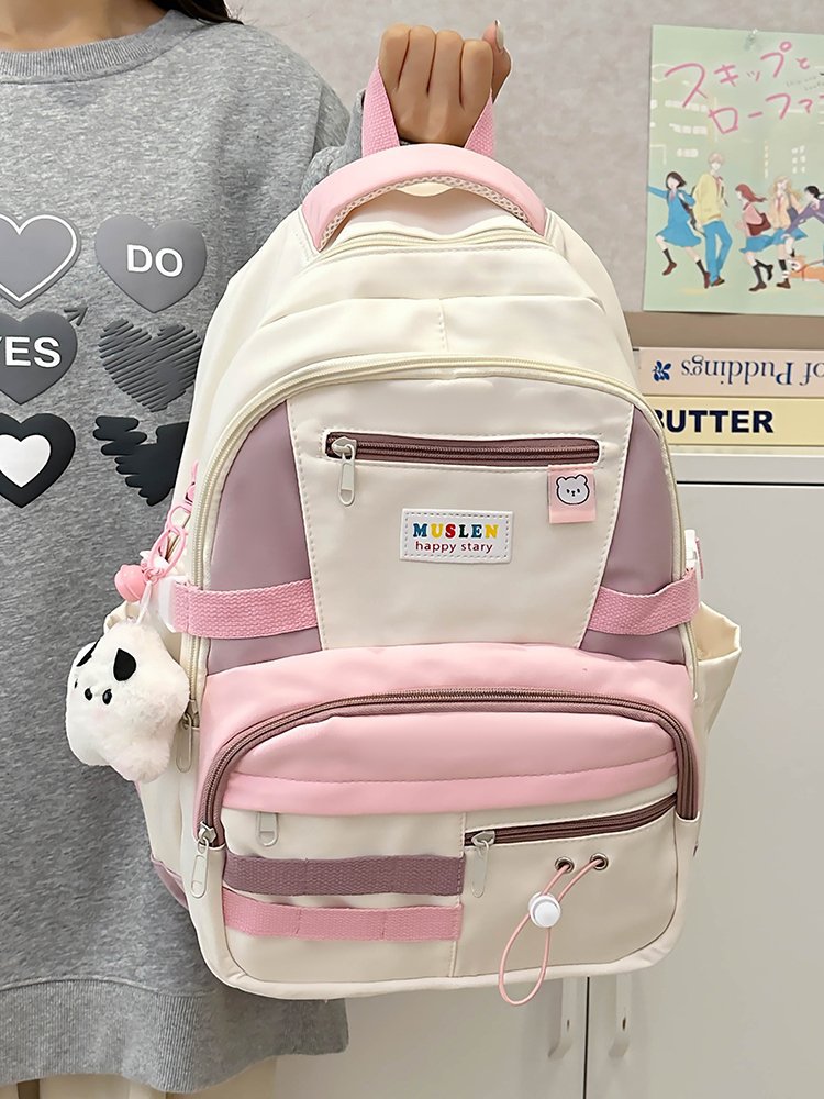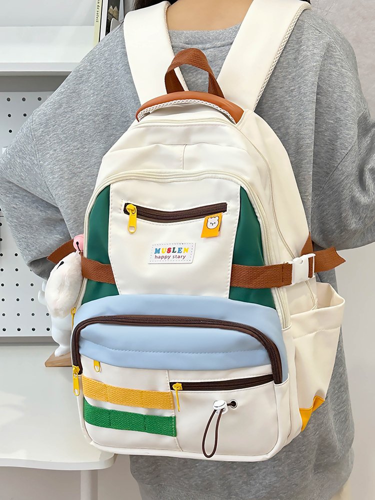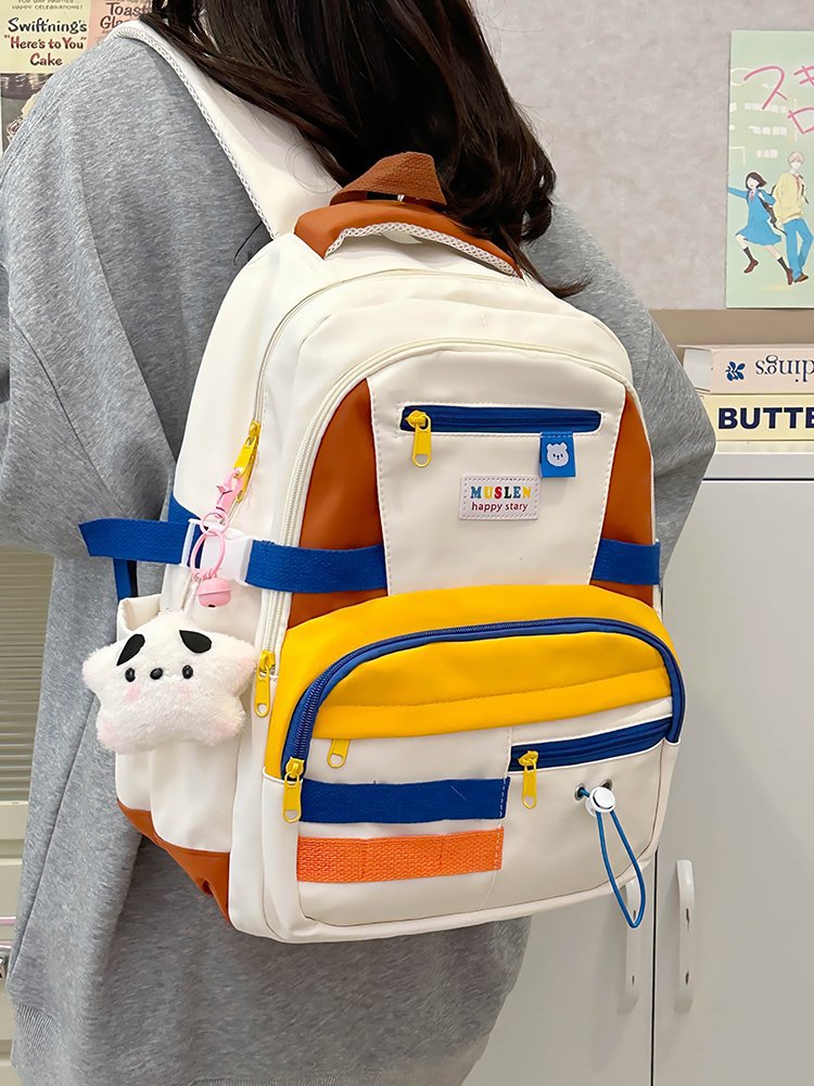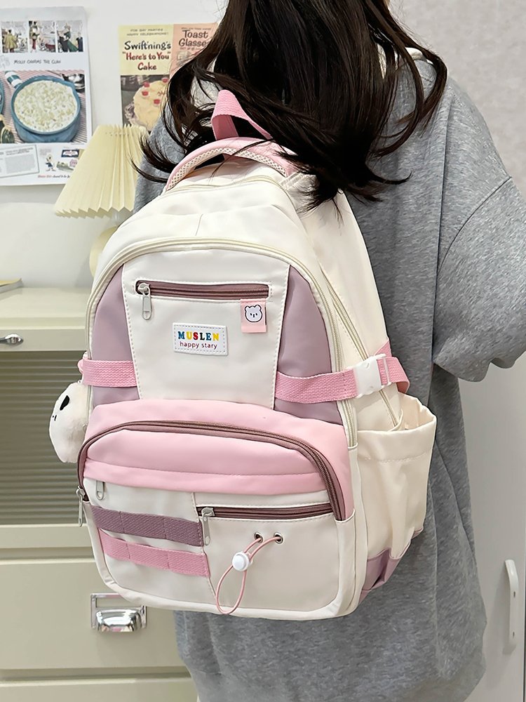 时尚拼接撞色原宿风背包2024新款ins 潮流双肩包