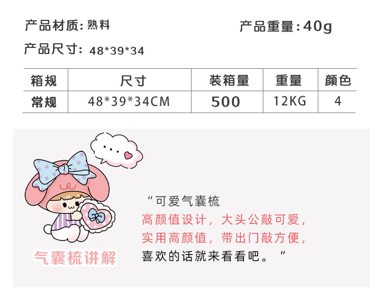 小红书可爱造型气垫梳子按摩顺发梳学生便携化妆镜梳子家用气囊梳