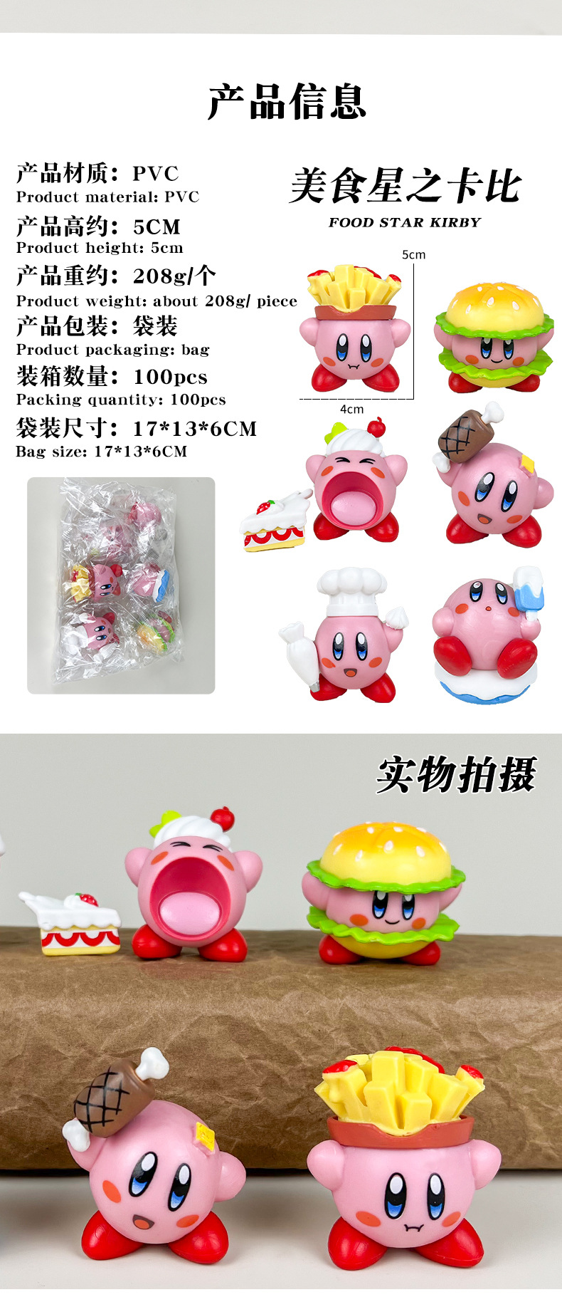美食星之卡比动漫手办公仔可爱卡通盲盒蛋糕装饰模型摆件跨境外贸