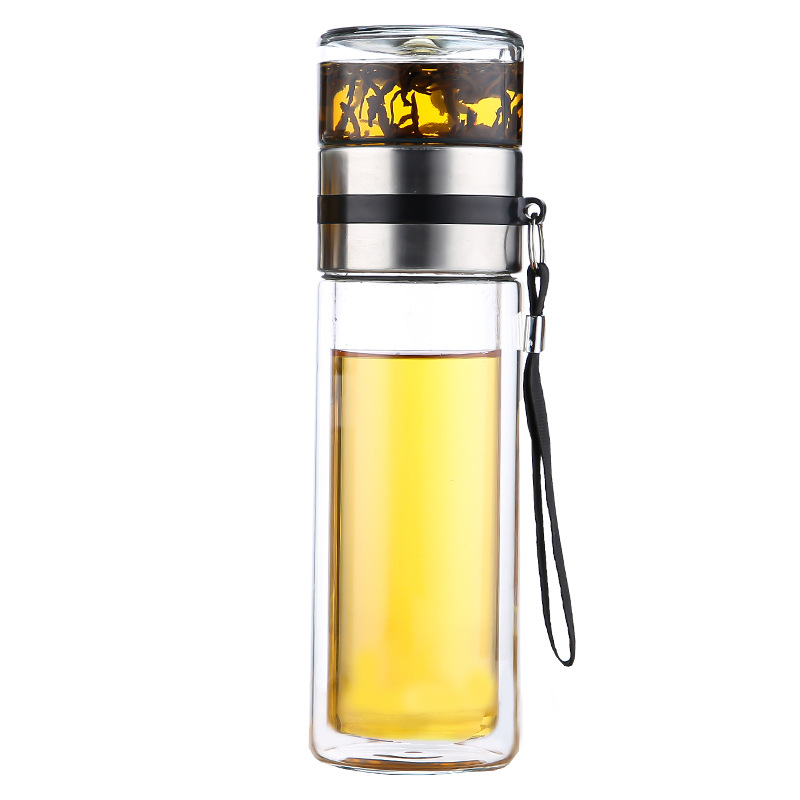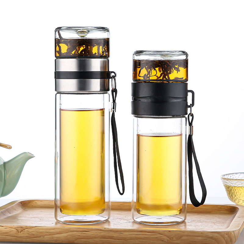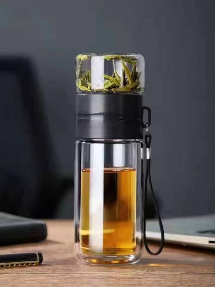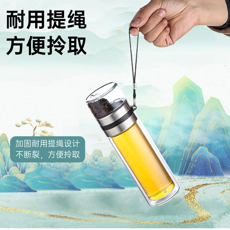 批发茶水分离杯 双层高硼硅玻璃水杯 泡茶杯玻璃杯日用百货礼品杯