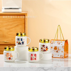 创意陶瓷杯盖卡通日用马克杯珠宝店宣传节庆广告logo礼品家用水杯