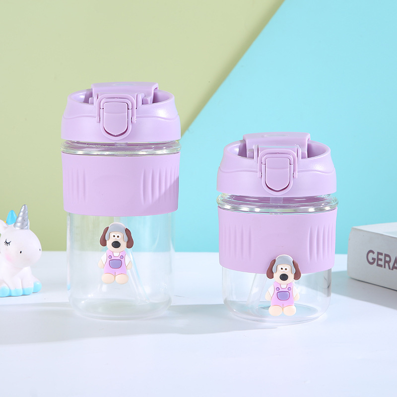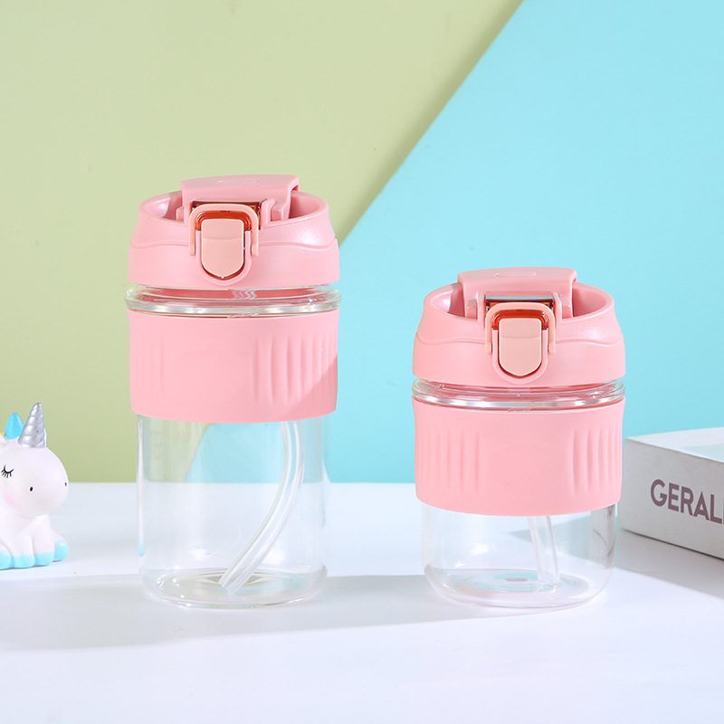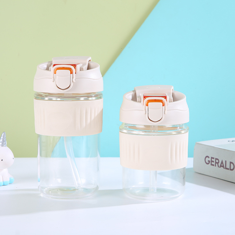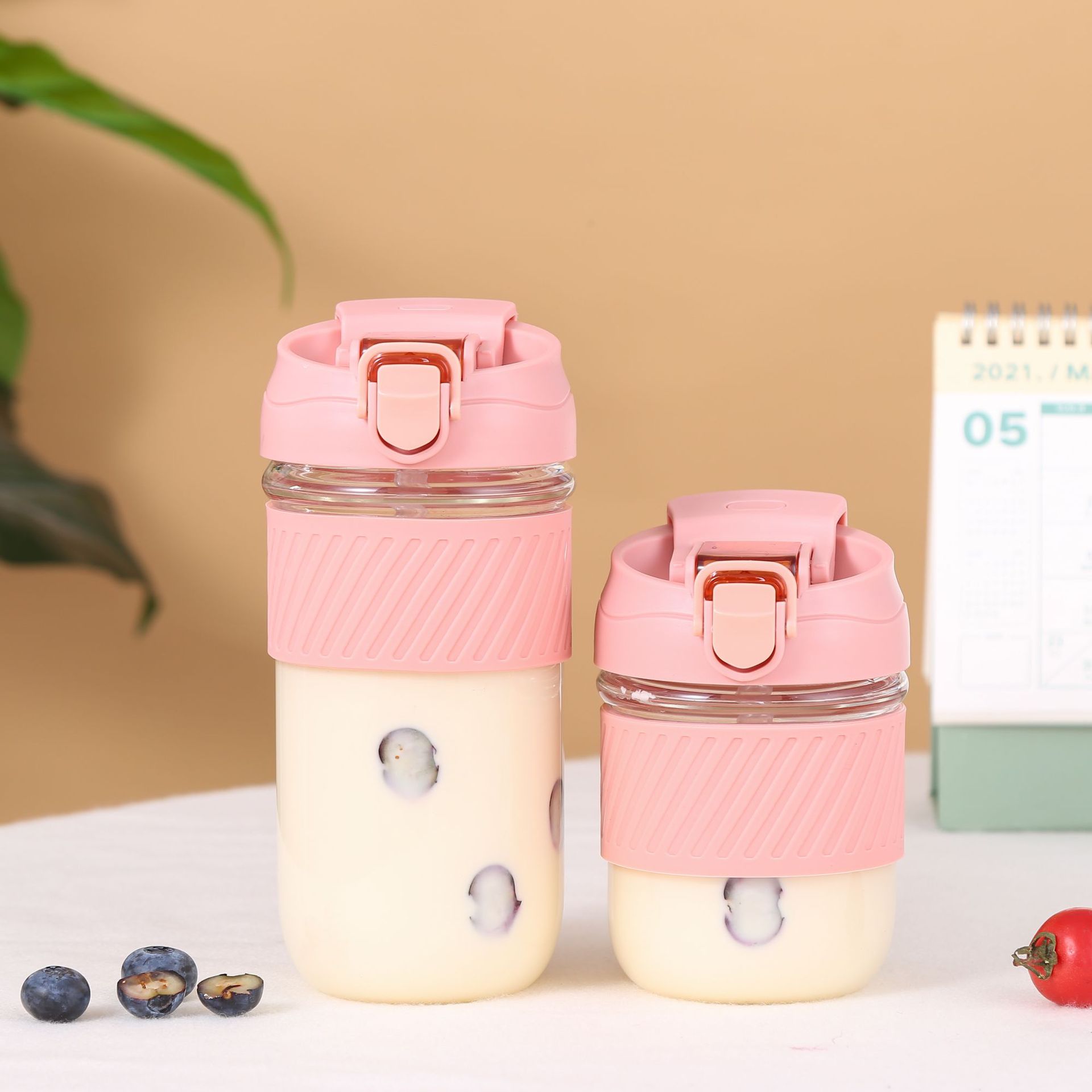 夏季ins风 可爱带吸管双饮玻璃杯 便携咖啡杯网红早餐杯子定制