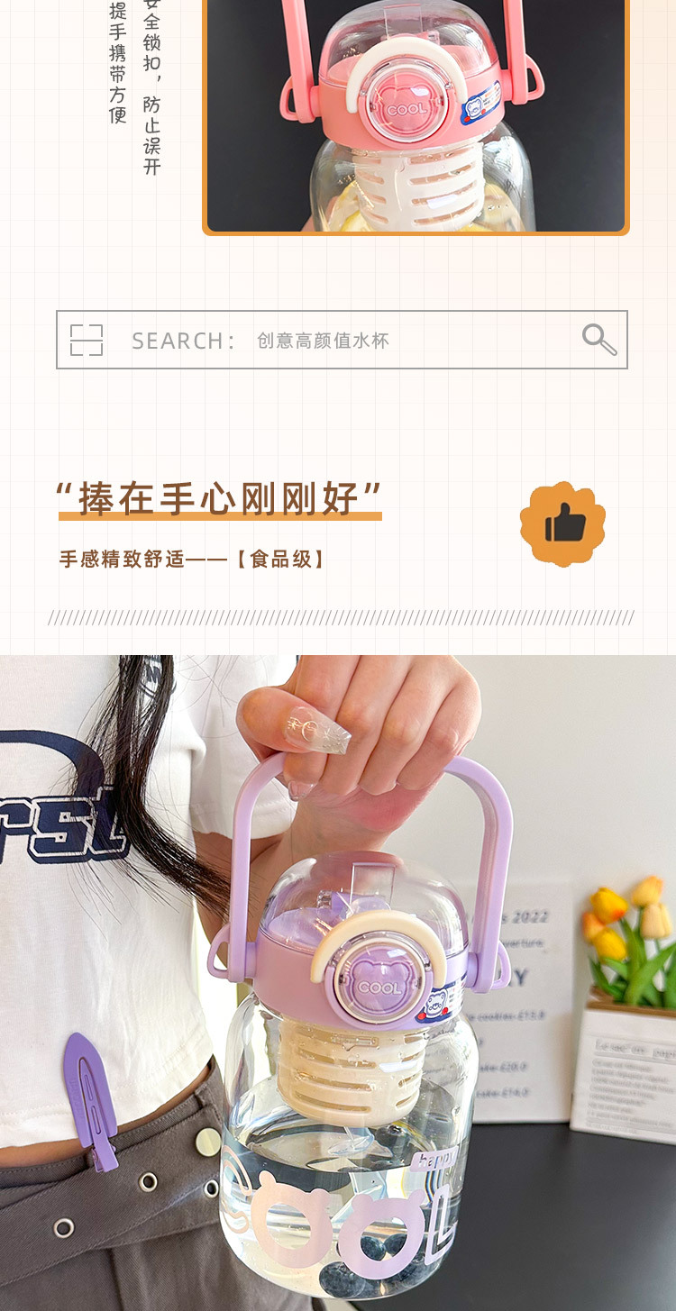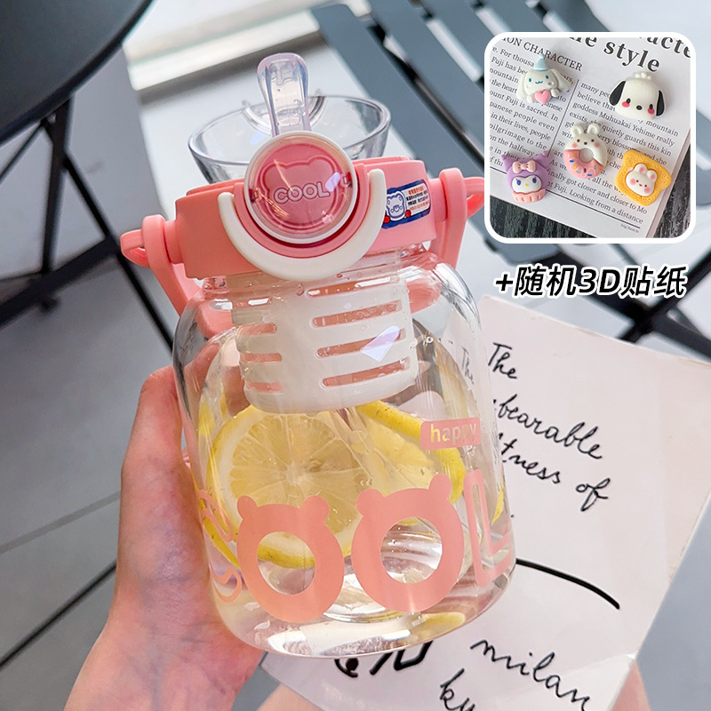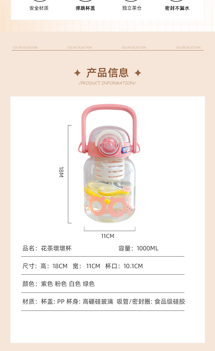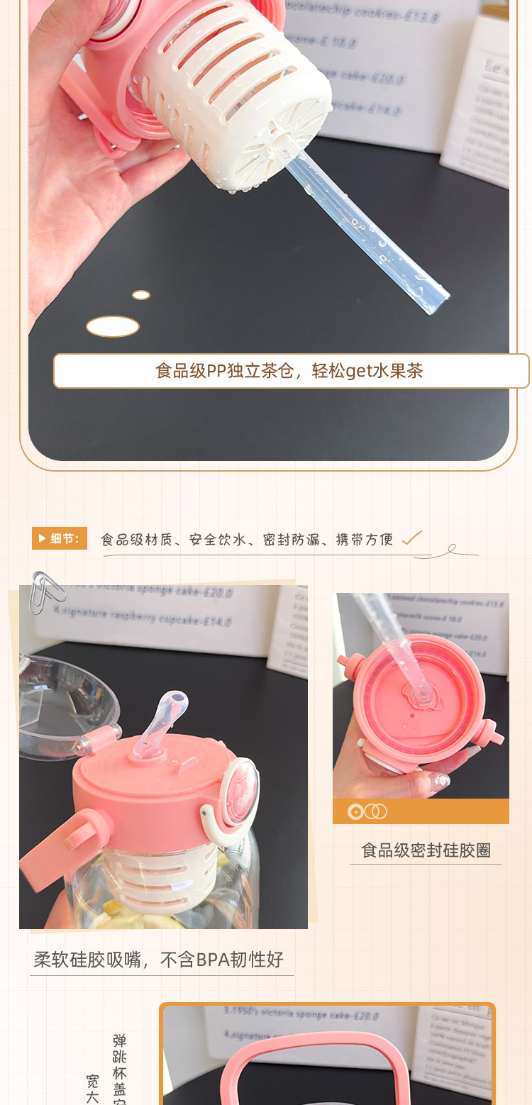 花茶玻璃杯夏季女生高颜值大肚吸管杯1000ml创意学生杯子茶水分离