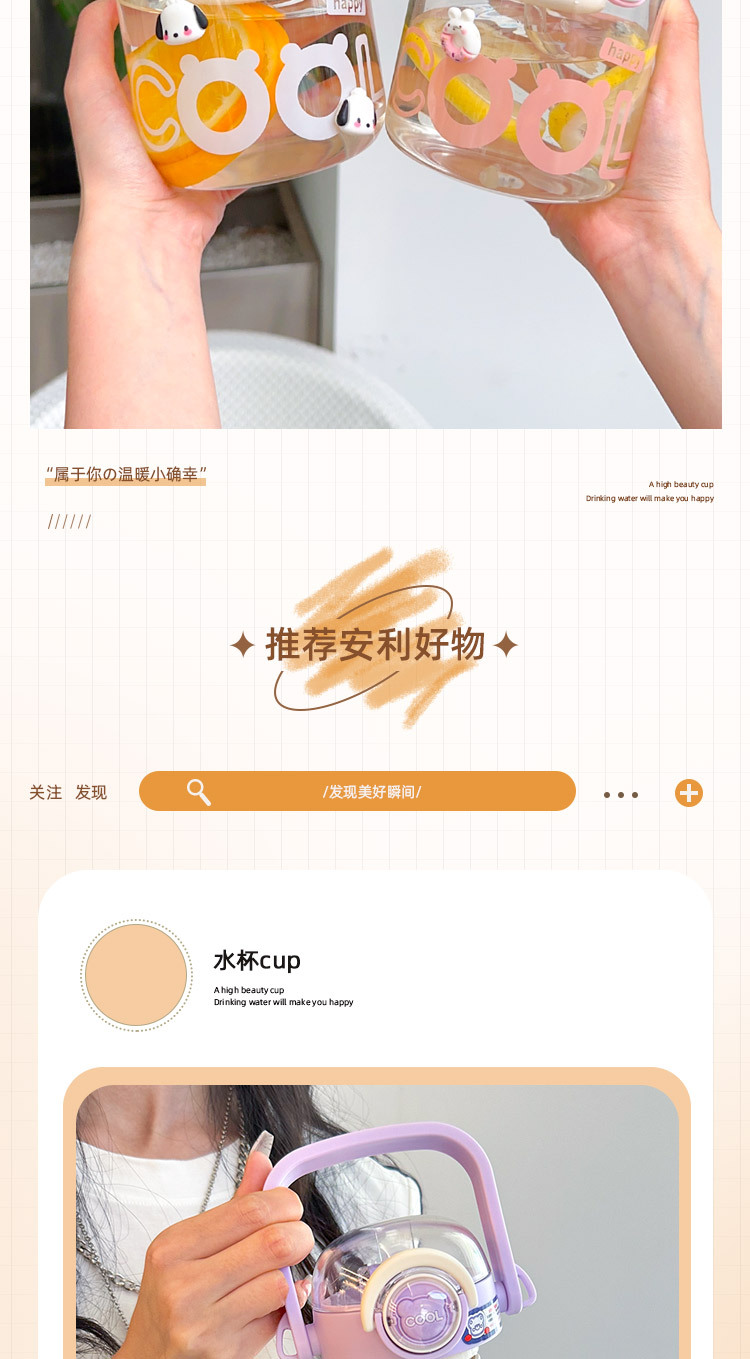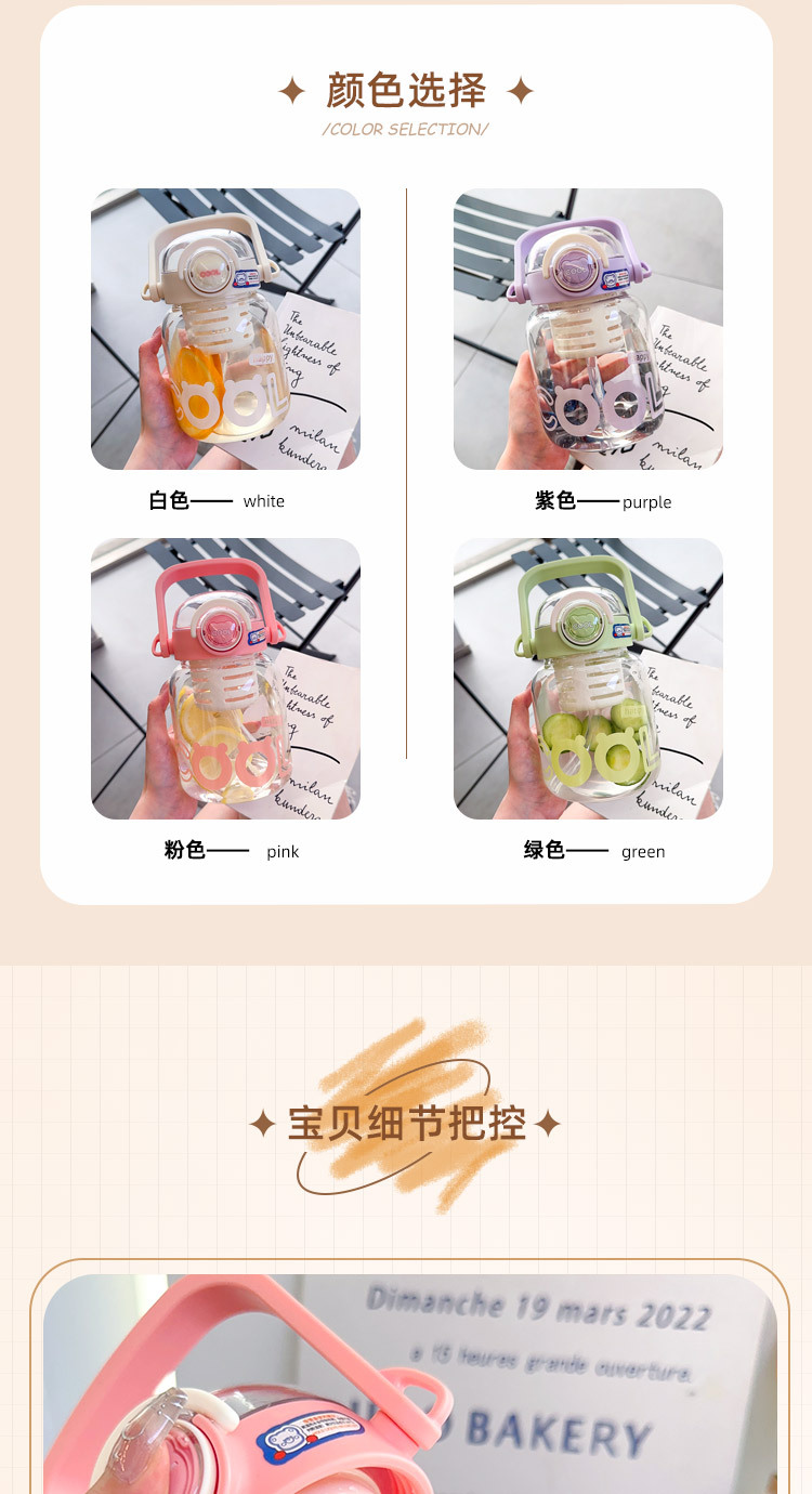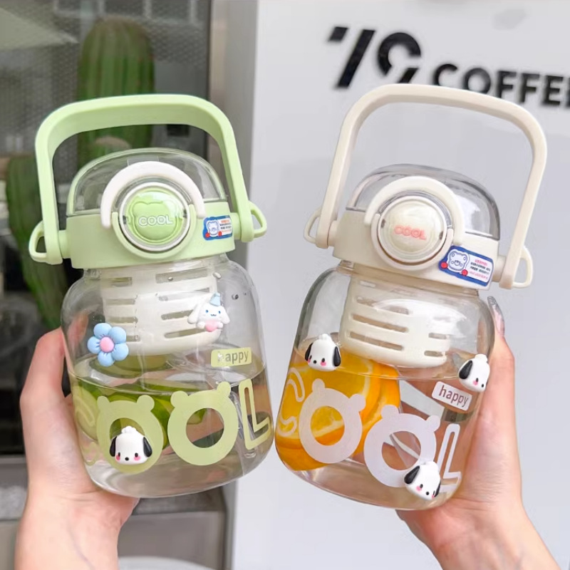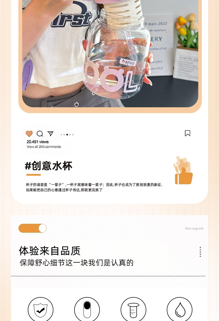 花茶玻璃杯夏季女生高颜值大肚吸管杯1000ml创意学生杯子茶水分离