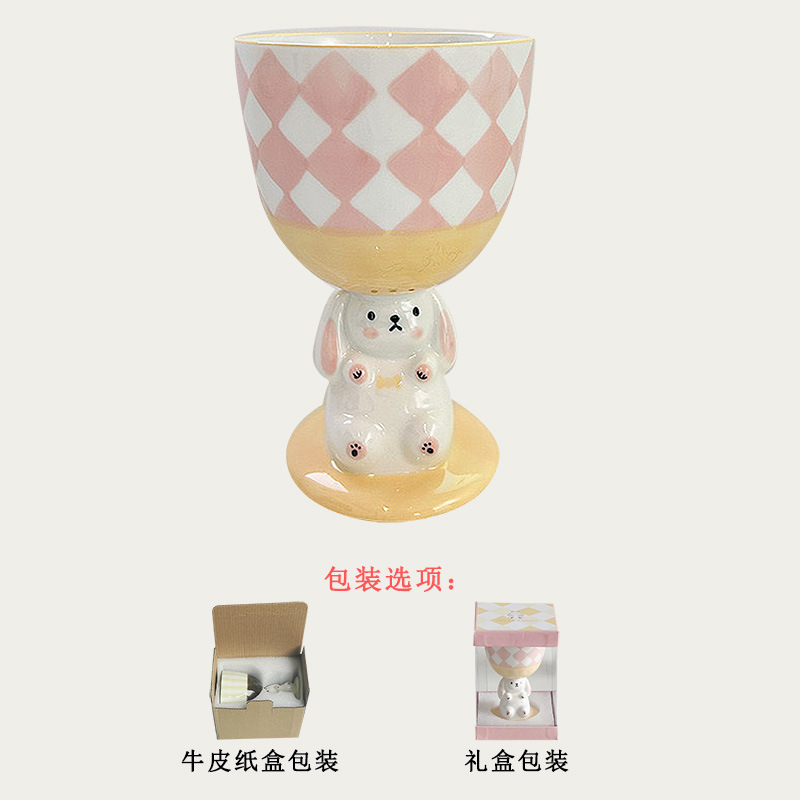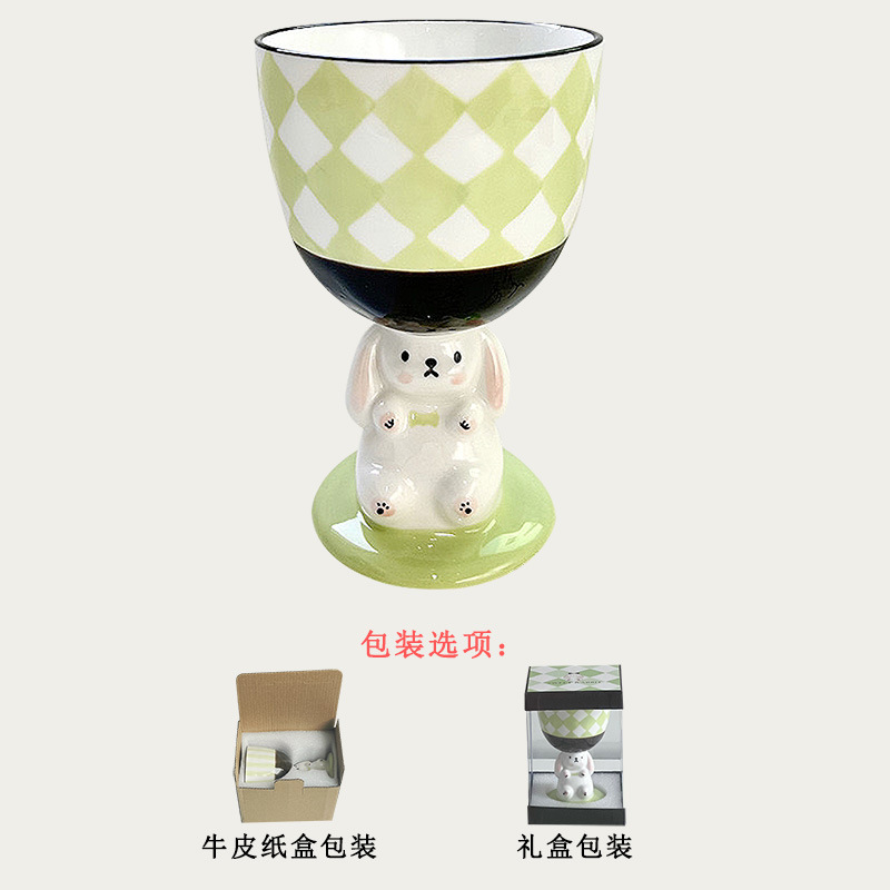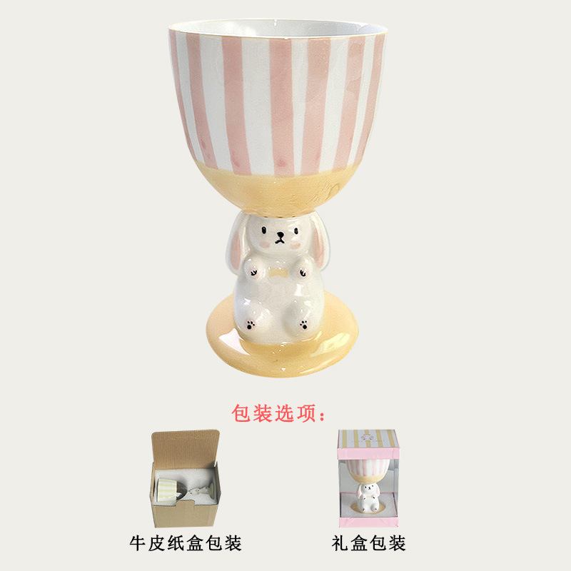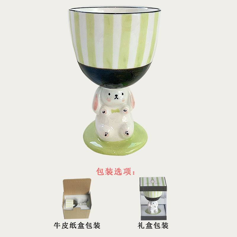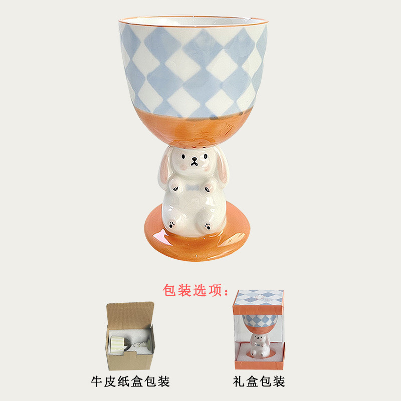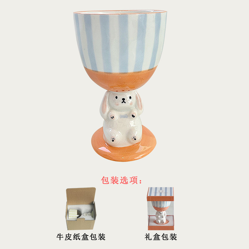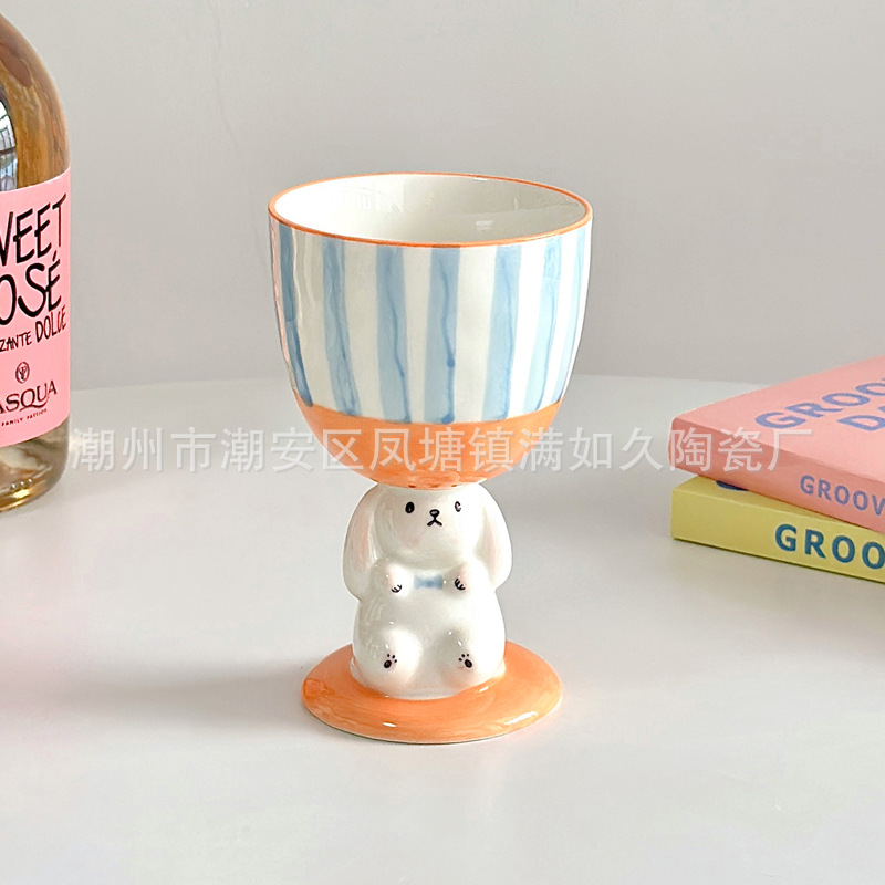 慢如旧-兔子高脚杯可爱手绘立体手捏马克杯不规则大容量咖啡杯子