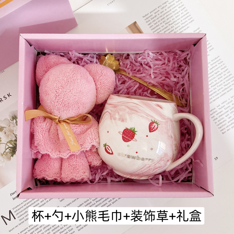 可爱陶瓷马克杯小清新草莓杯子女学生宿舍水杯家用早餐咖啡杯带勺