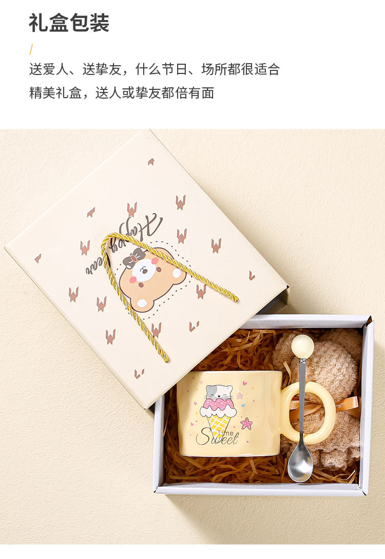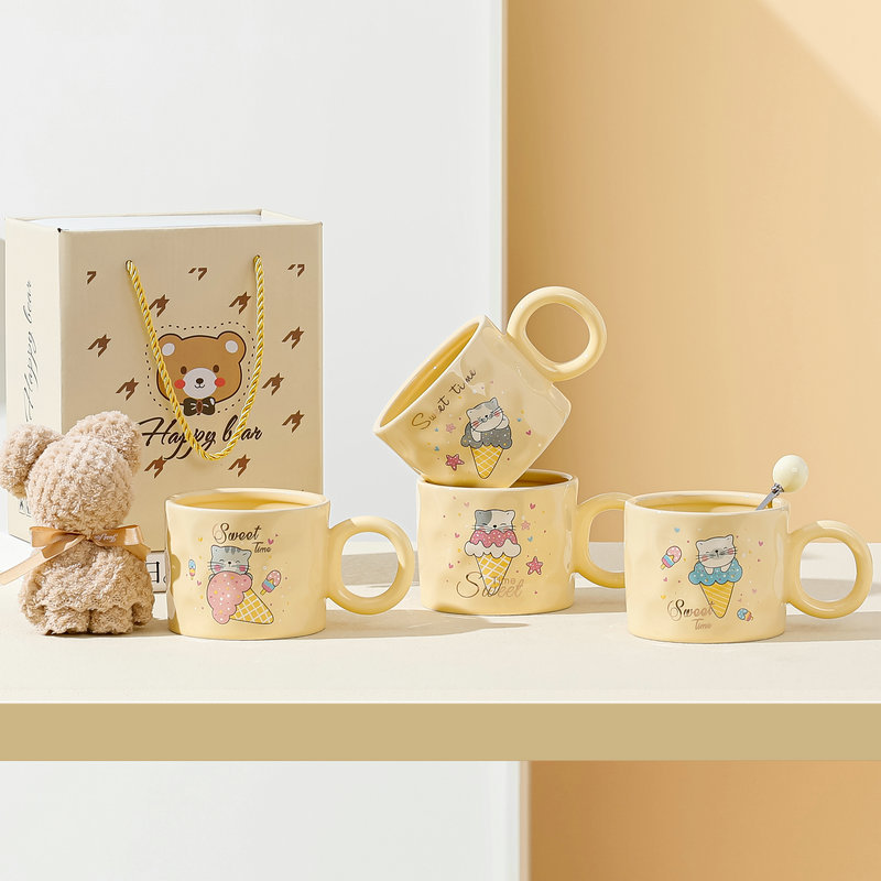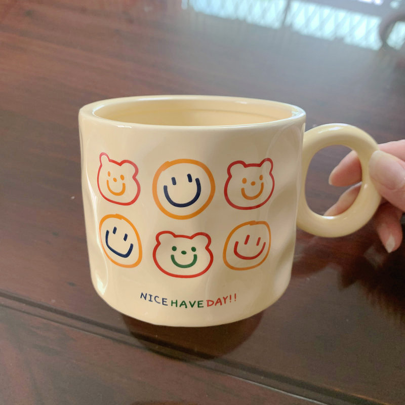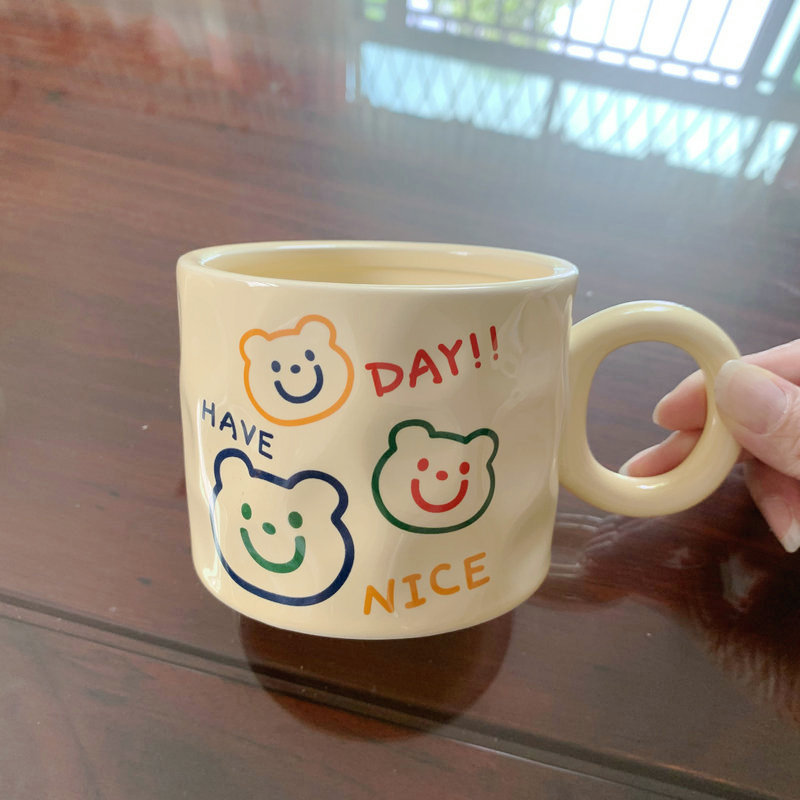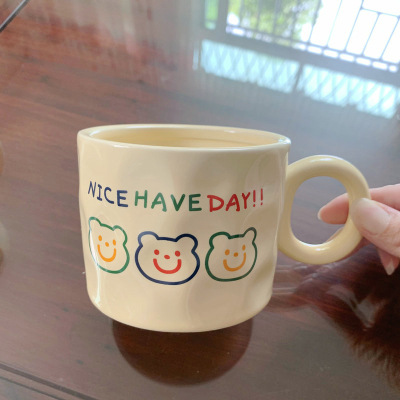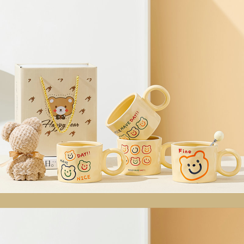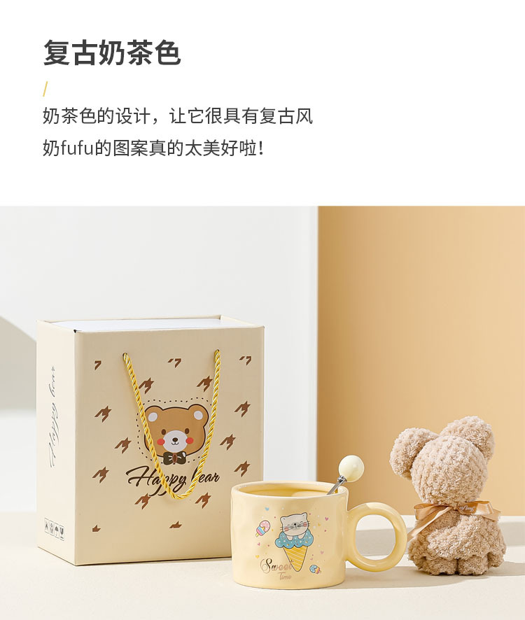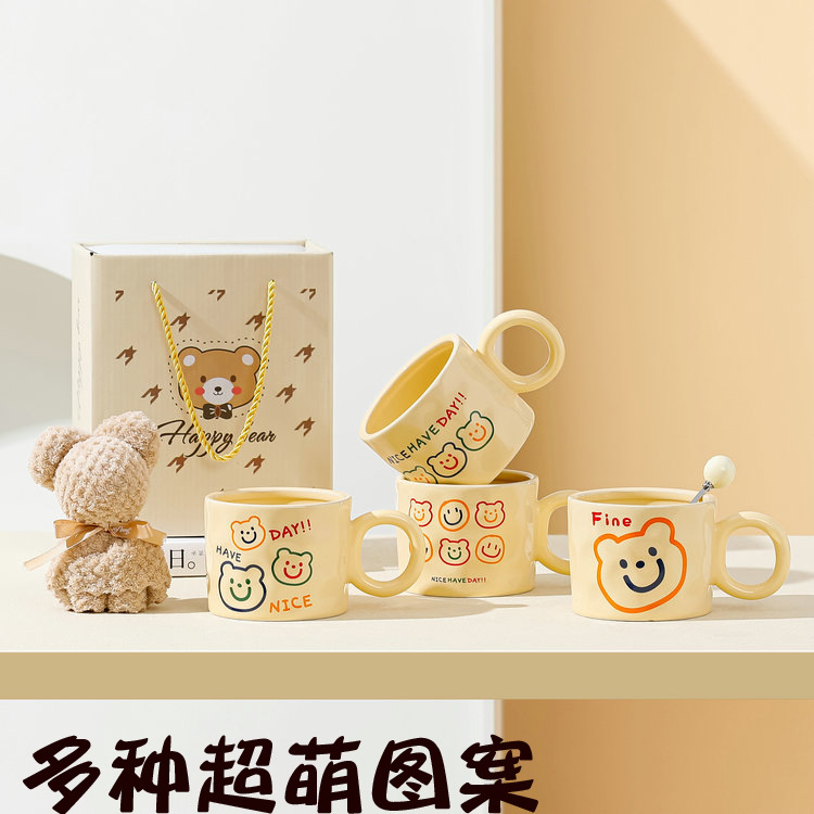 高颜值陶瓷马克杯可爱韩式小熊杯子奶油色家用水杯情侣女生伴手礼