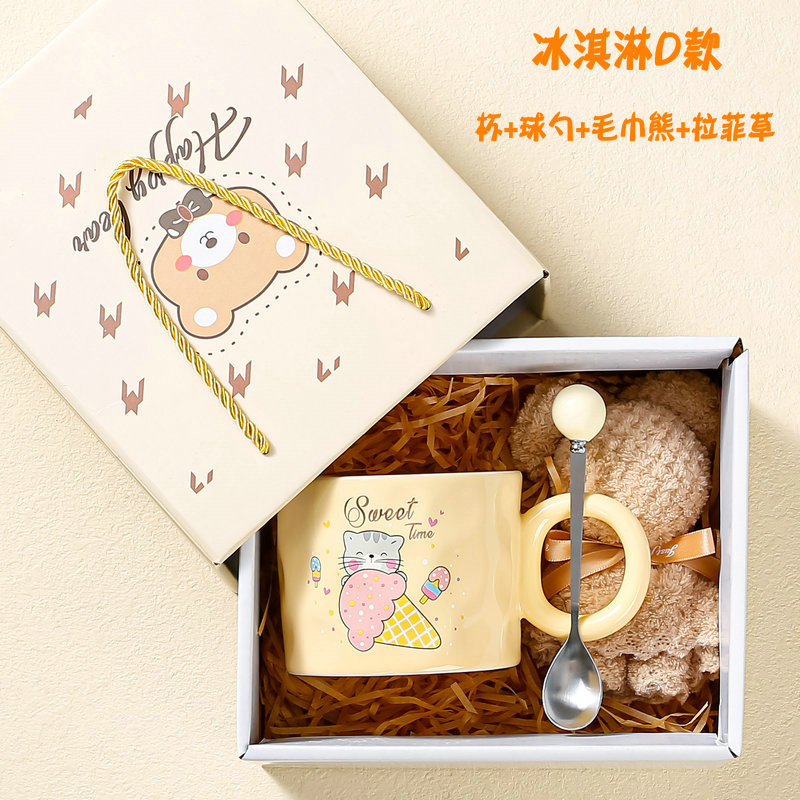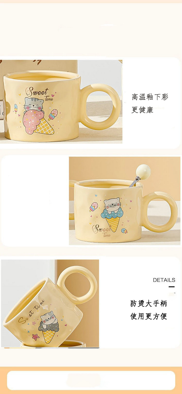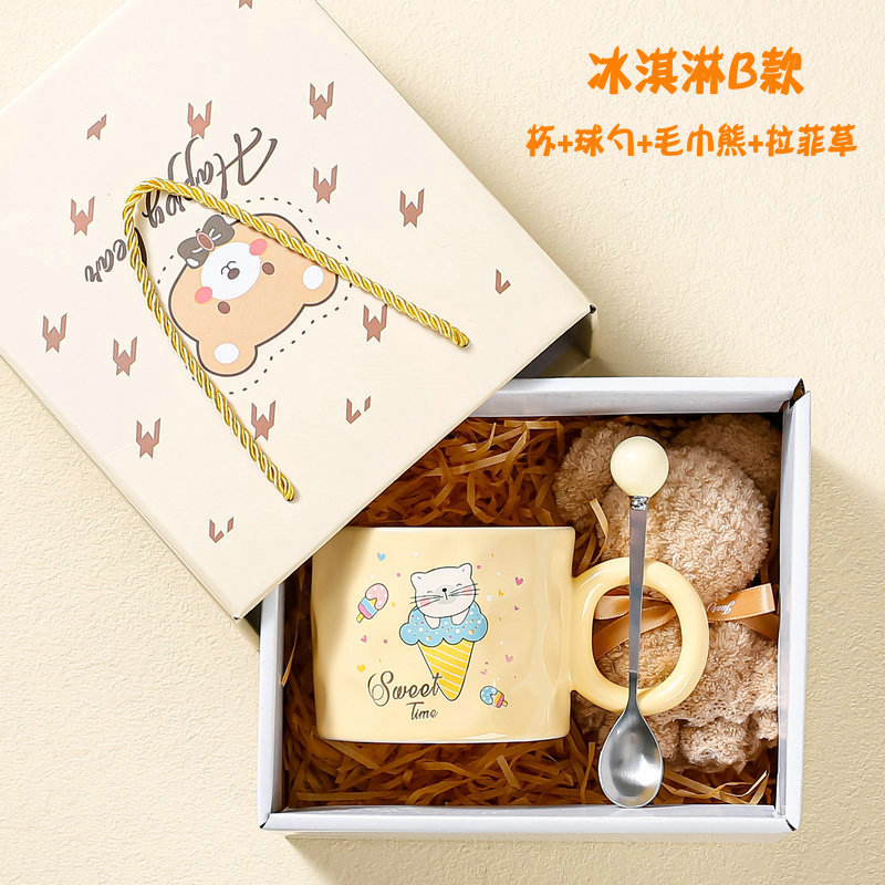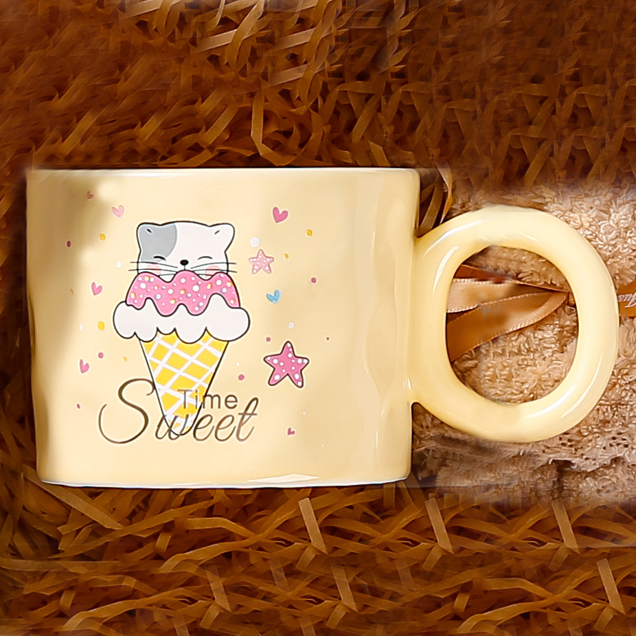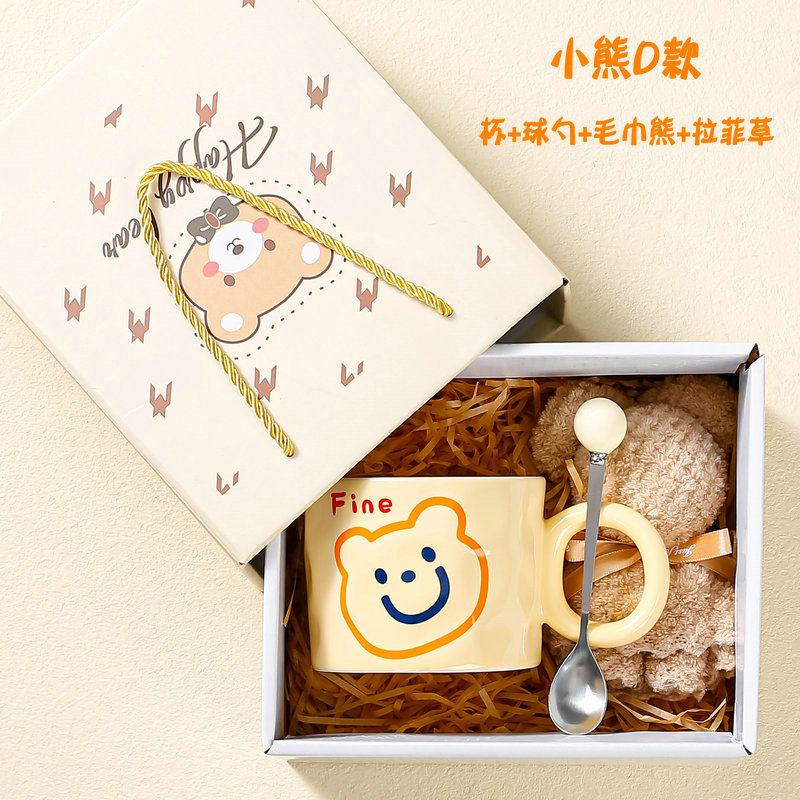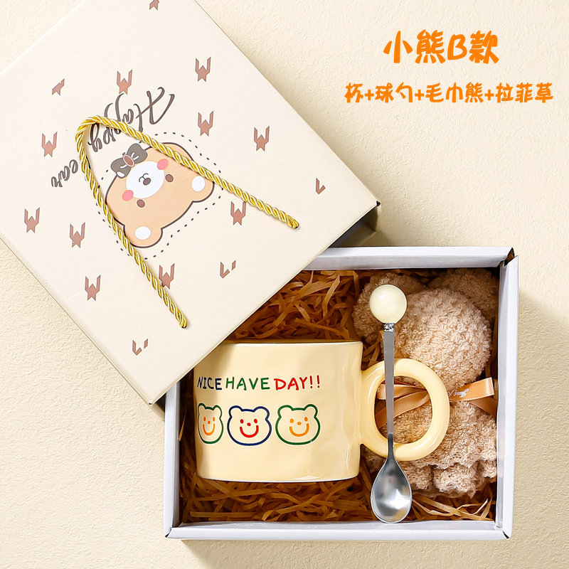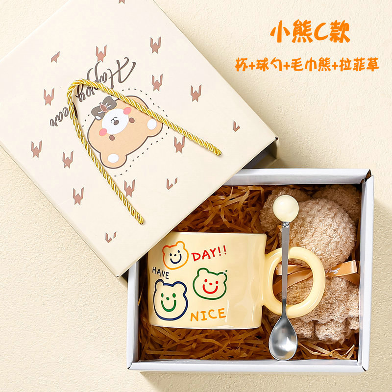 高颜值陶瓷马克杯可爱韩式小熊杯子奶油色家用水杯情侣女生伴手礼