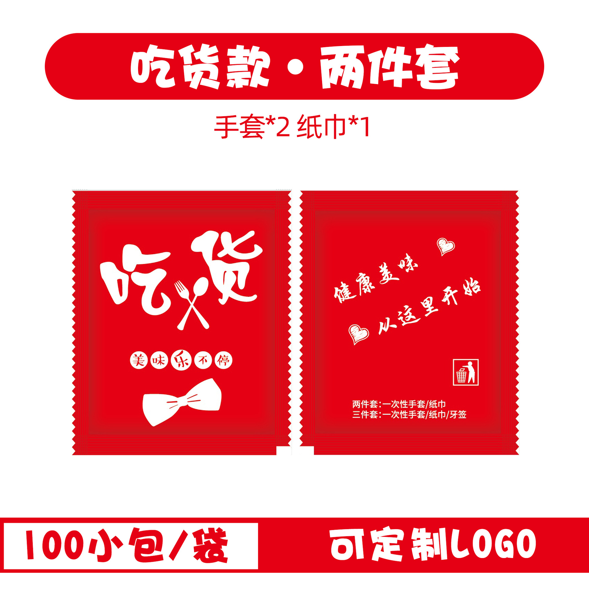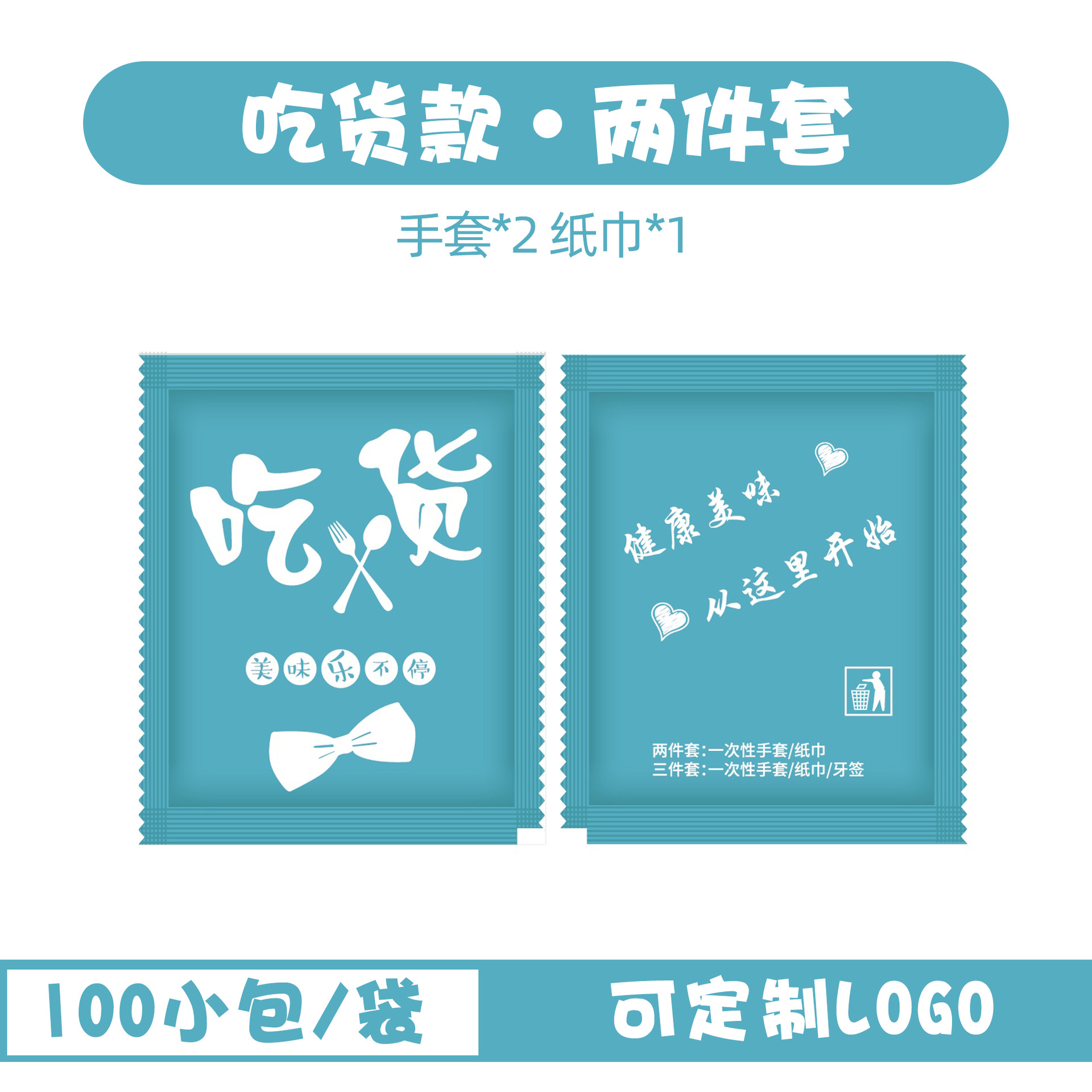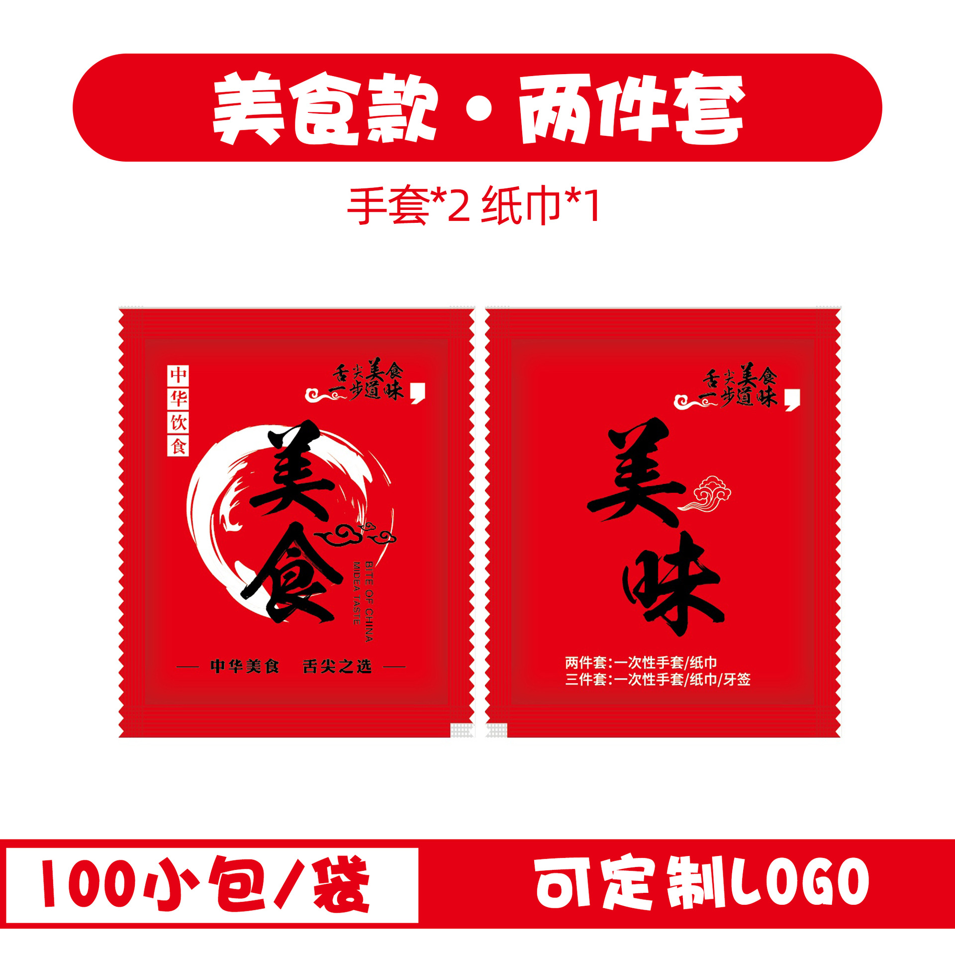 创意独立包装一次性手套纸巾两件套餐饮外卖食品用PE 厂家直供