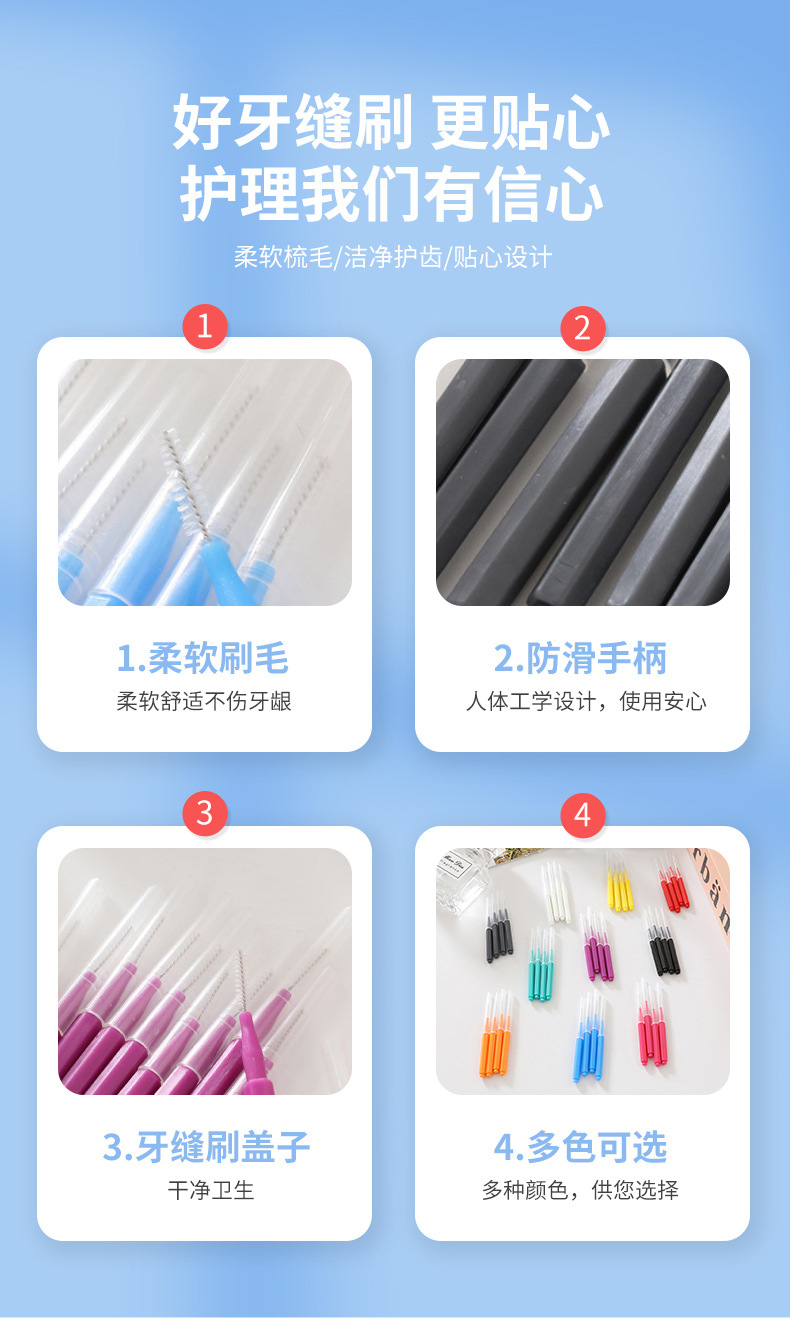 牙缝刷盒装牙间刷50支/盒清洁牙齿缝隙牙套缝隙直型正畸I型齿间刷
