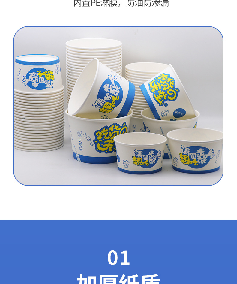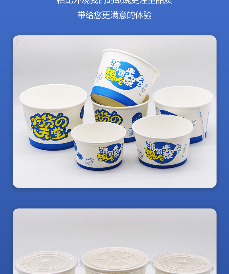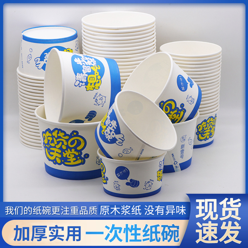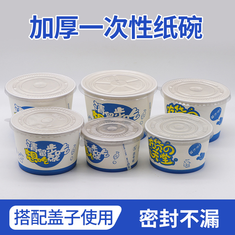 一次性纸碗商用加厚圆形外卖小吃打包碗外卖餐具饭盒带盖餐盒汤碗