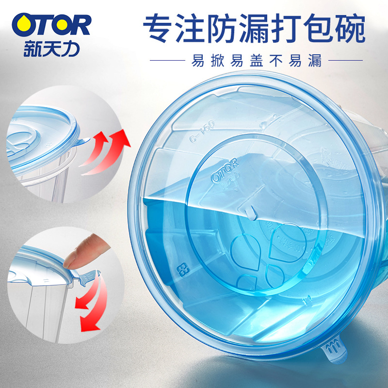 新天力一次性饭盒透明加厚圆形快餐盒打包碗外卖打包盒一次性餐盒