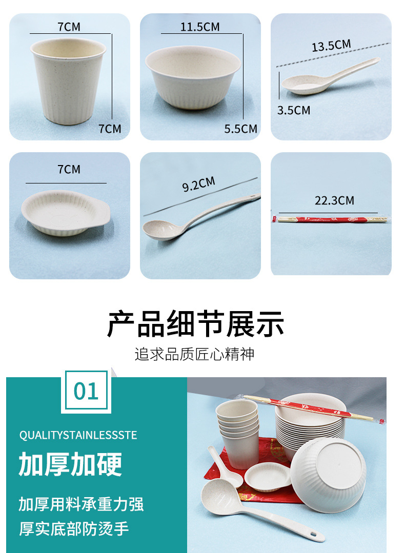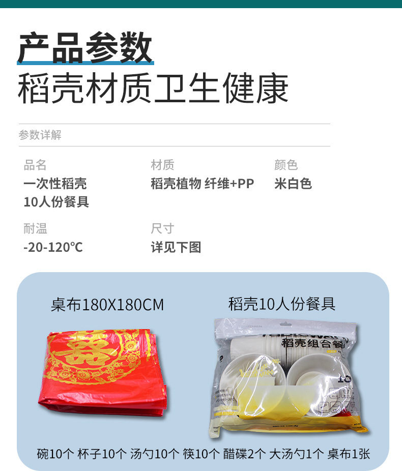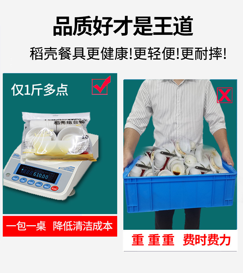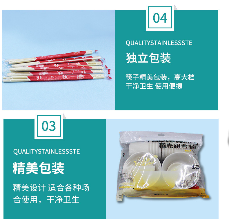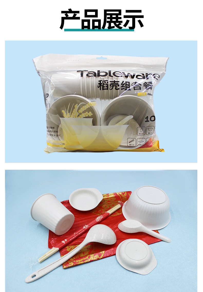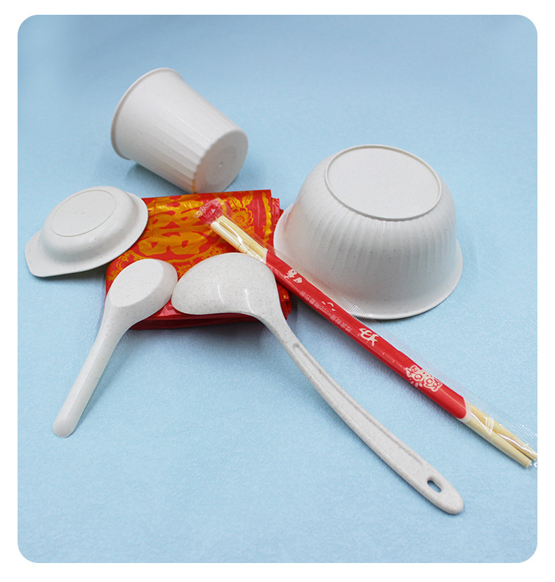 可降解结婚酒席稻壳餐具套装一次性碗筷套装稻壳餐具一次性十人份