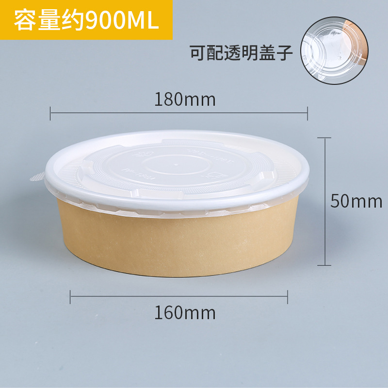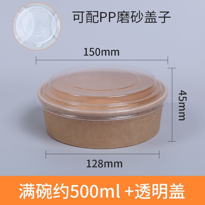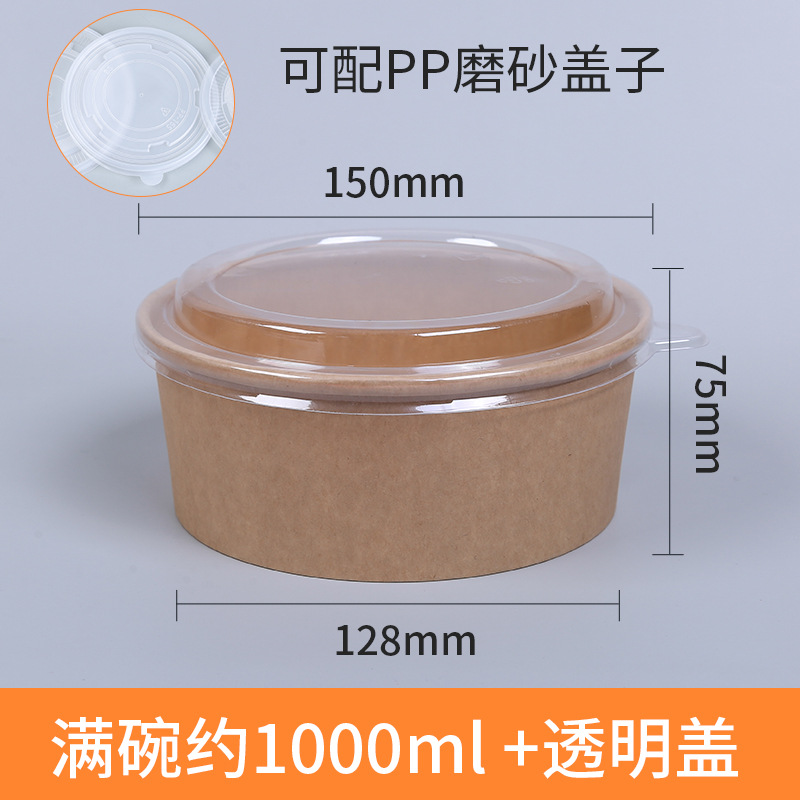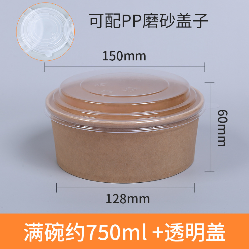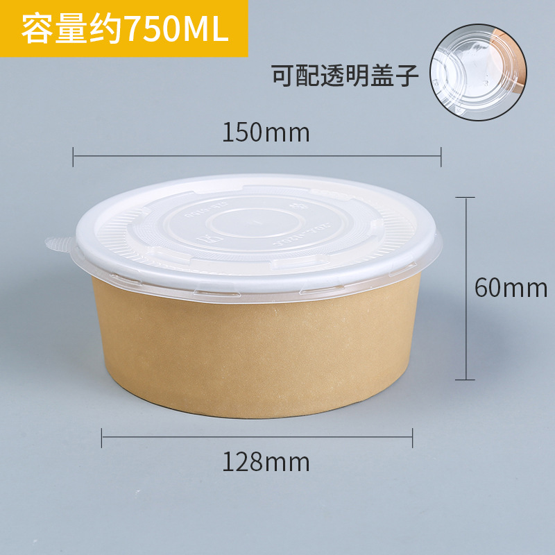 牛皮纸碗带盖加厚一次性圆形打包盒汤碗快餐盒外卖炒饭拌饭沙拉碗