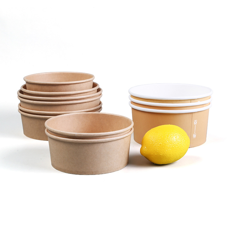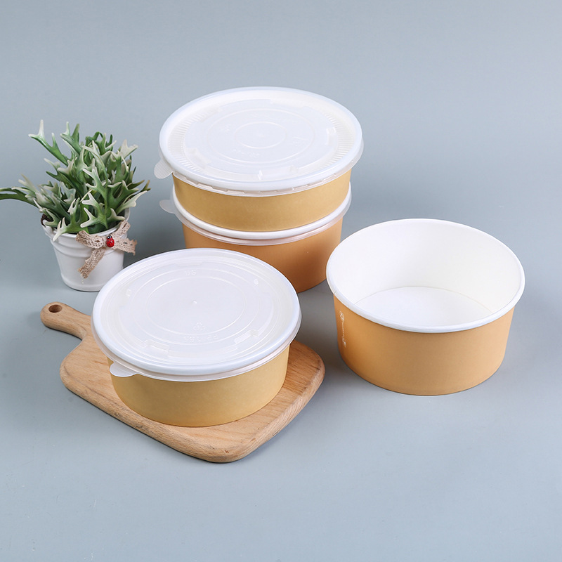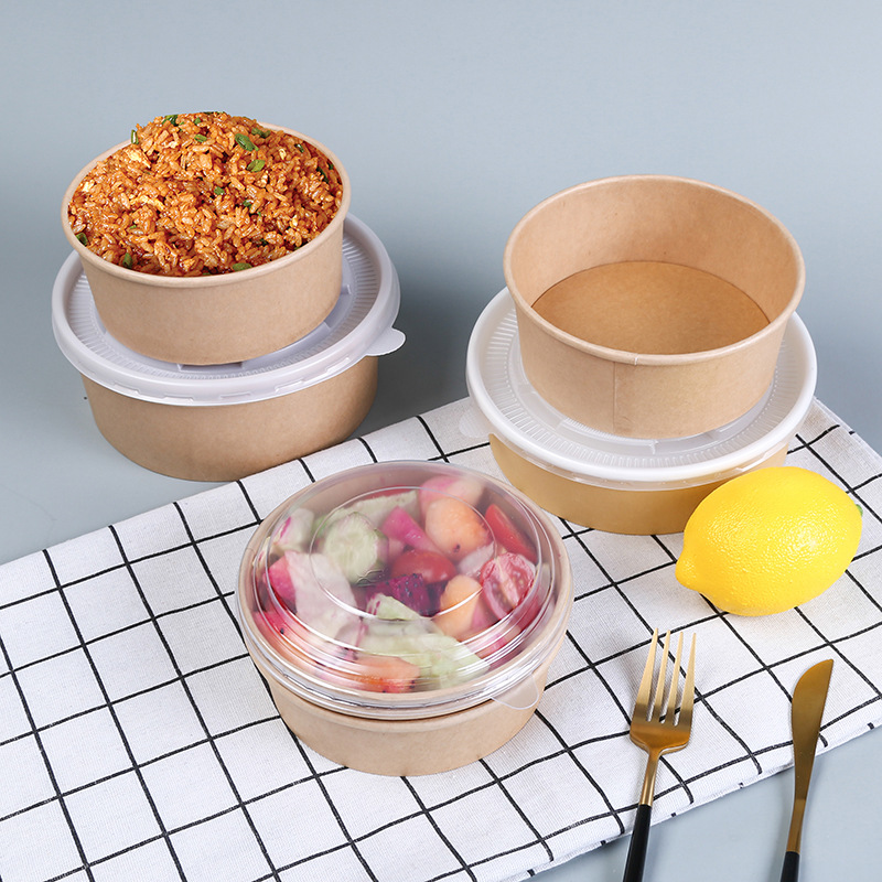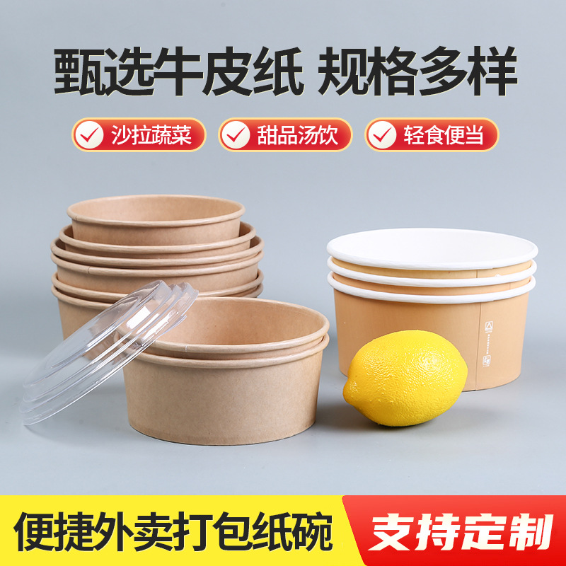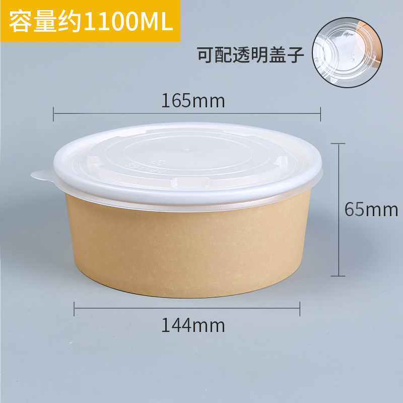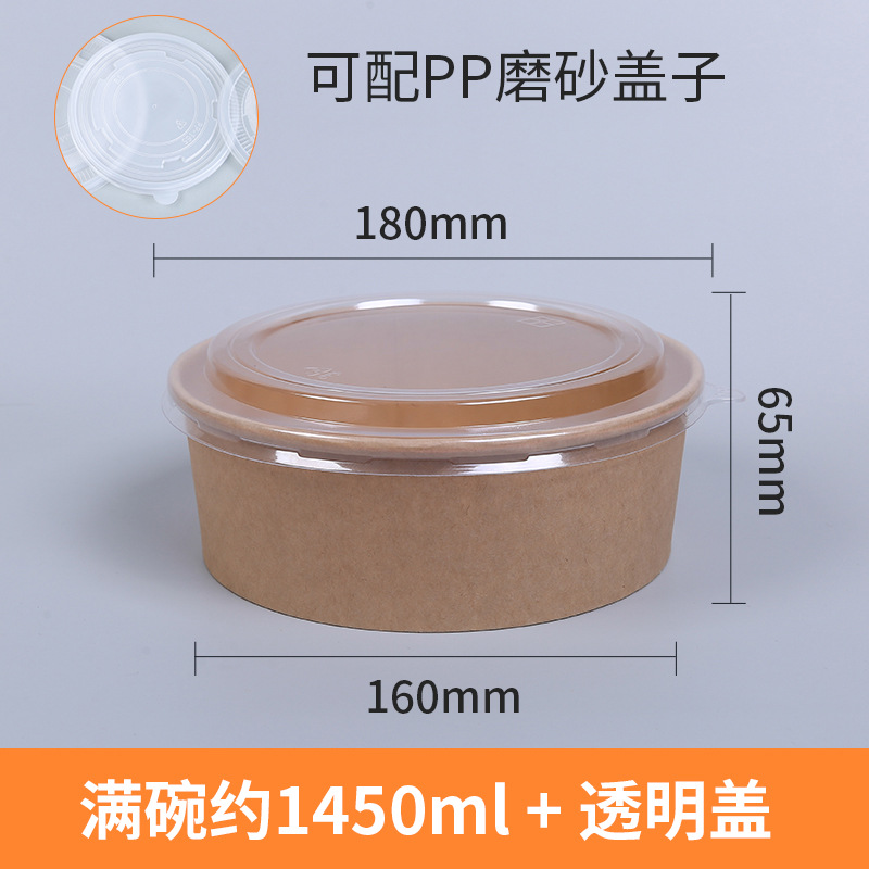 牛皮纸碗带盖加厚一次性圆形打包盒汤碗快餐盒外卖炒饭拌饭沙拉碗