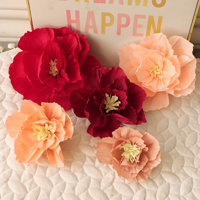 新款婚礼结婚婚房布置皱纹纸花立体仿真花节日装饰卷边纸花花朵