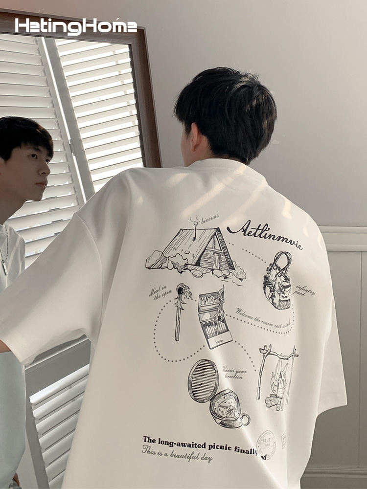 summer fashion brand couple short sleeve t-shirt loose summer couple loose high street short sleeve