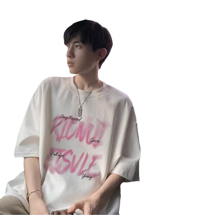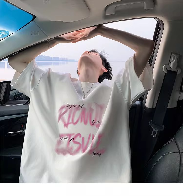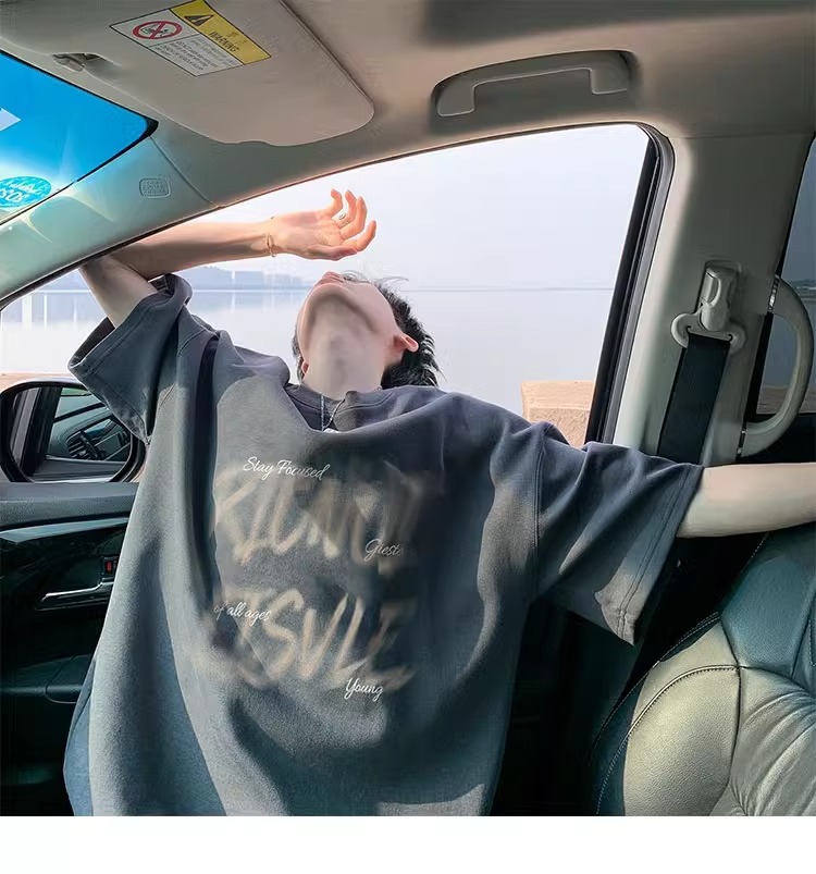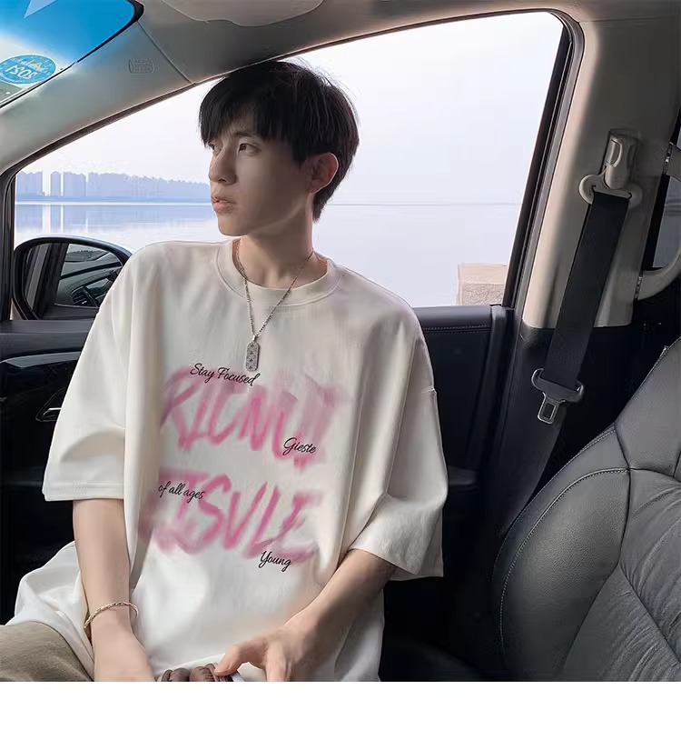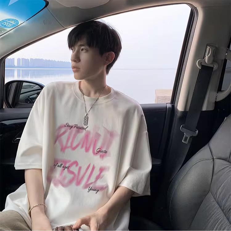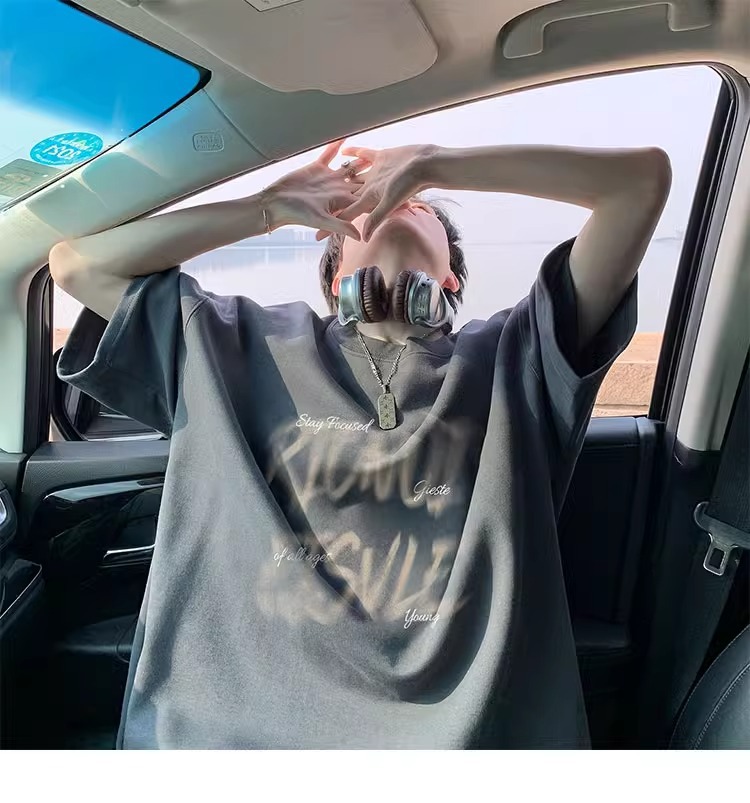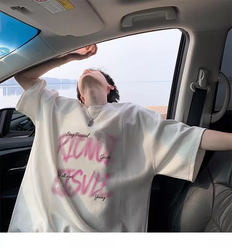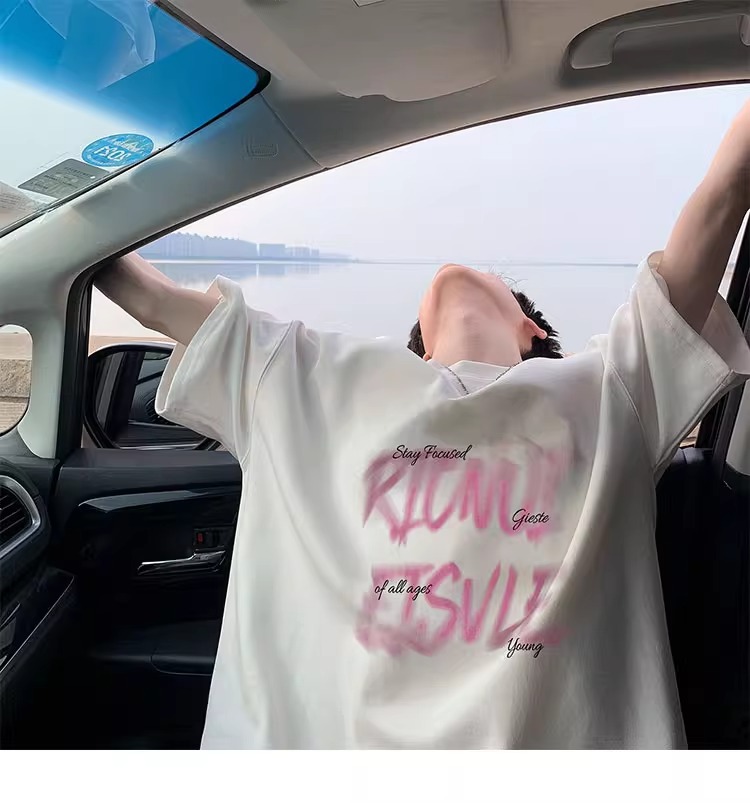 100%纯棉240g新款字母印花t恤男女同款百塔宽松休闲短袖t恤小落肩